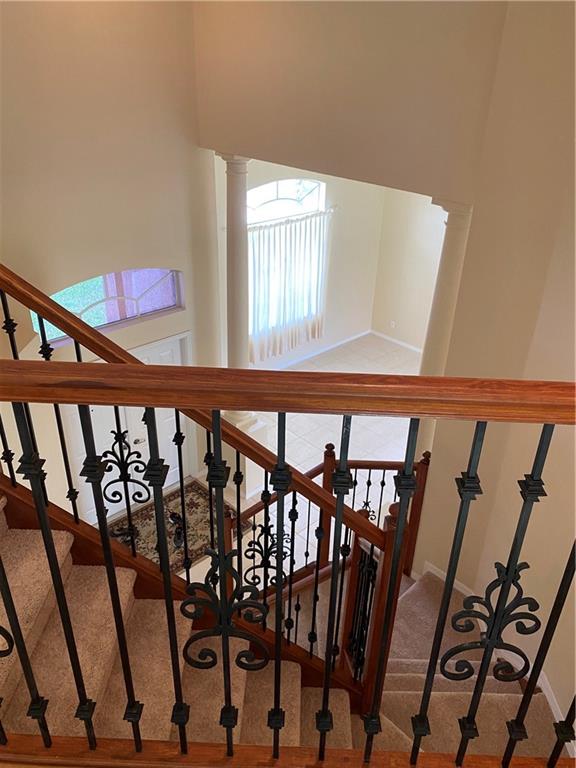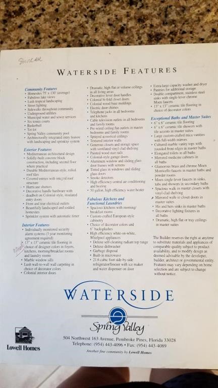 Move in ready home in impeccable condition with everything you need. Enormous Ocean House model in Waterside by Spring Valley is over 4000 squares with 6BR, 4BTH, A+ schools, open floor plan, volume ceilings, wrought iron staircase, wood moldings and a loft. Newly installed wood flooring across the entire upstairs; large 18x18 tiles downstairs. Vaulted ceilings allow for natural lighting across the open floor plan. Ceiling fans with lighting in every bedroom. Lovely granite countertops in the kitchen with upgraded stainless steel appliances, full size washer/dryer, and copious storage. Large master with spacious bathroom and his/her closets. Spacious back yard has ample room for a pool. Hurricane shutters and beautiful landscaping! Community of well maintained Mediterranean style homes.