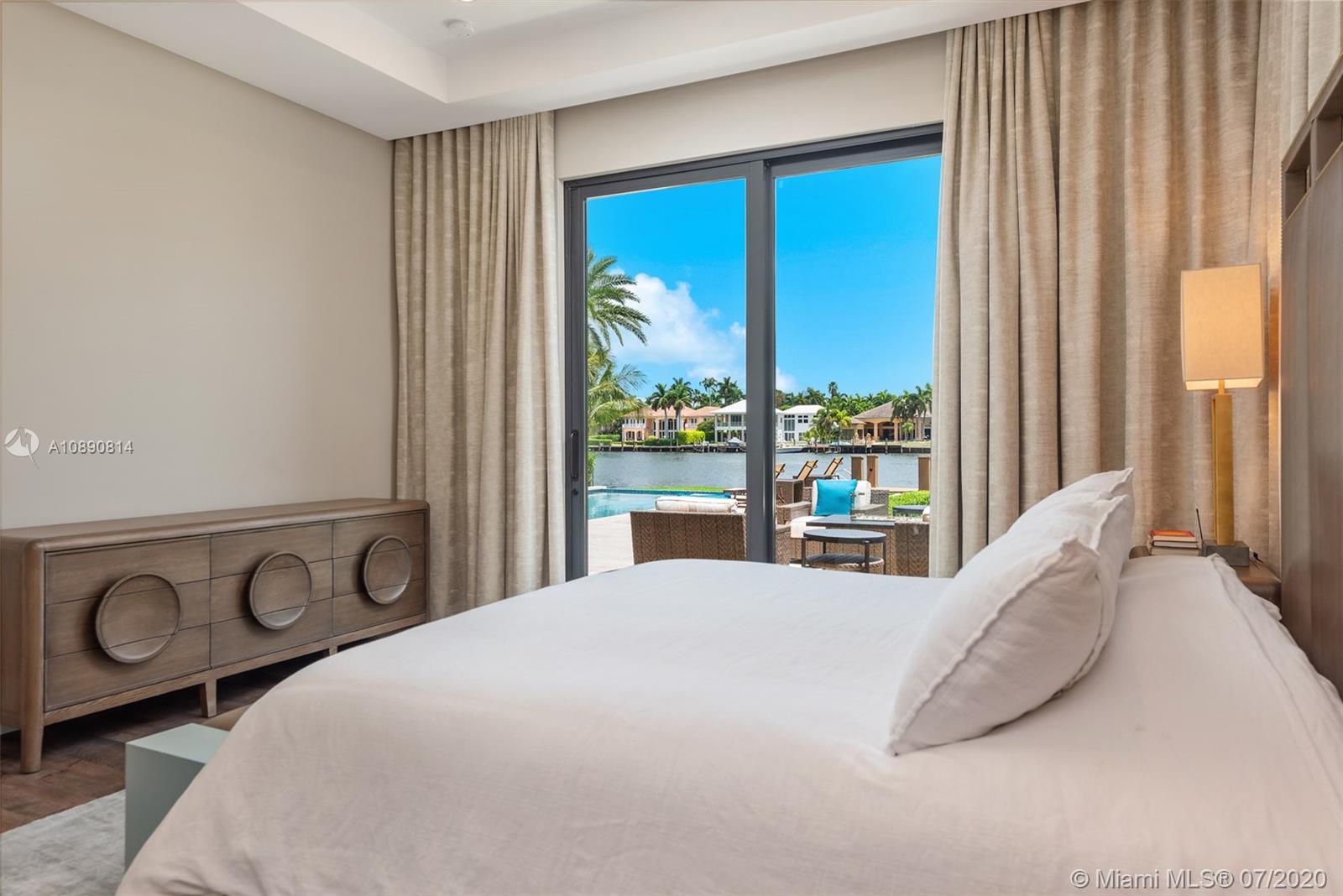 2018 one-story waterfront home, elegantly appointed with state-of-the-art finishes the residence captures the essence of South Florida’s waterfront lifestyle. Home offers large sunlit and inviting living spaces complemented by hardwood flooring and moveable walls of glass that seamlessly transition from interior to exterior living spaces. The impressive kitchen features a large center island, walk-in pantry and bar seating area. Meticulous attention to detail is evident throughout the home. Owner’s suite features a spa-inspired bath and dual custom walk-in closets. Outdoors, a remarkable pool, covered terrace, summer kitchen, yacht dockage and wide-open water views offer endless options for entertaining.