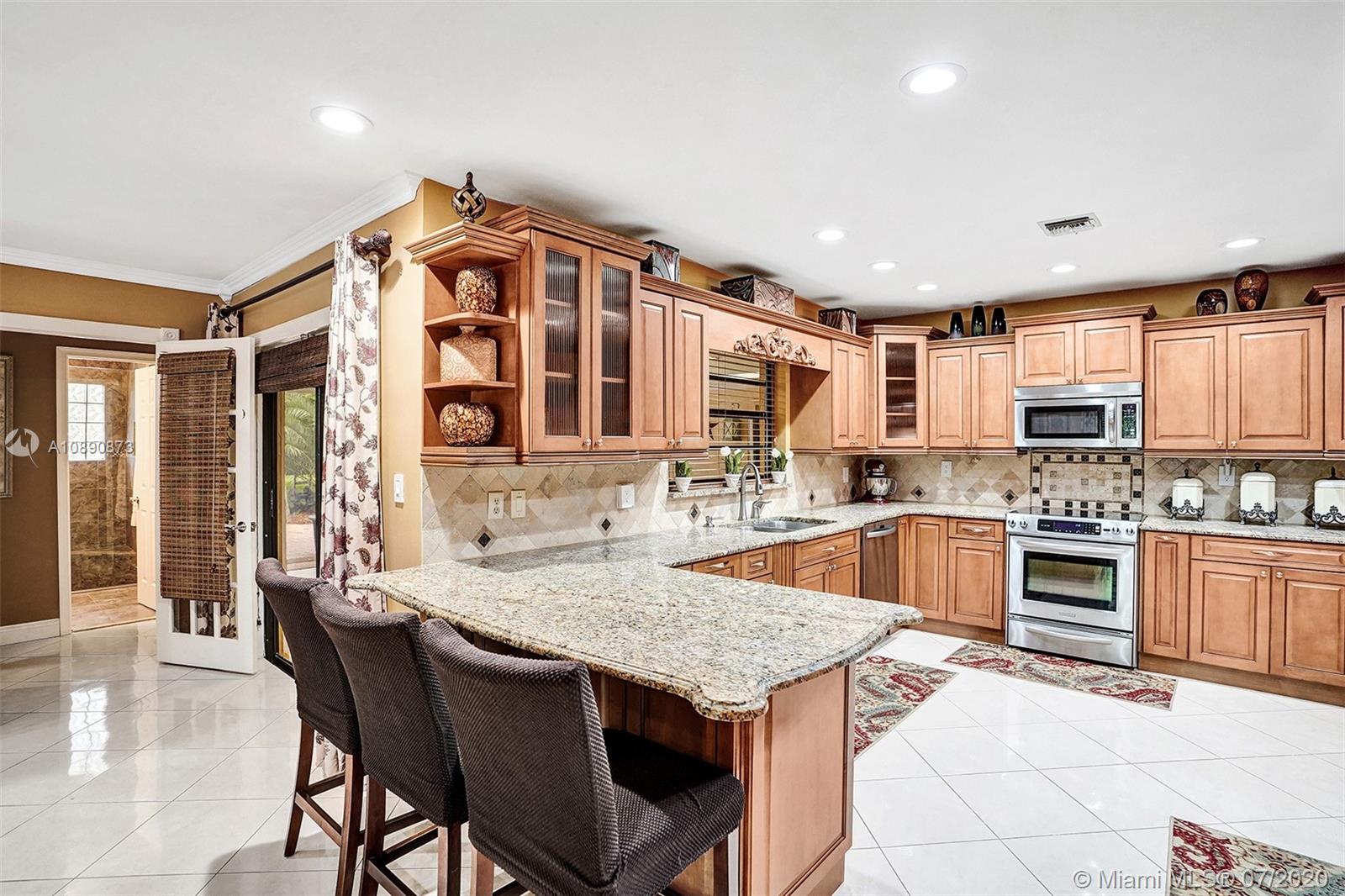 Spectacular 4 beds 3 baths estate home; nestled away on over an acre with secured gated entrance. Tastefully upgraded & meticulously maintained; the pride of ownership shows. Home features a triple-split bedroom floor plan. Boast gourmet kitchen with high-end stainless steel appliances & granite countertops. Fabulous over-sized master suite with 3 walk-in closets and attached exercise room. Beautifully upgraded bathrooms. Bonus sunroom (460 sq ft) Opens to a breathtaking tropical paradise perfect for entertaining with gazebo. The lush backyard is completed with mature oak & poinciana trees. Located in desirable Southwest Ranches. The community offers equestrian lifestyle, No HOA, great schools. Ask about $20K buyer's credit. Too many features to list, schedule an appointment to view today!
