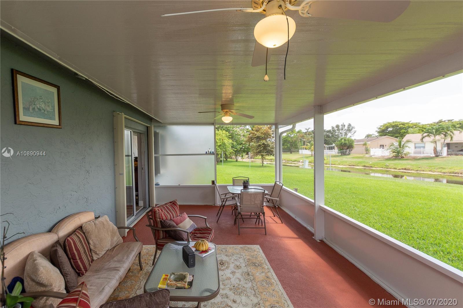 Spacious and Beautiful Home 3 Bedrooms, 2 Bathrooms is Situated on a Wonderful Lakefront Lot with Large Water Frontage! 1/2 of the garage was converted into the 4th bedroom. Gorgeous Landscape Updated Kitchen with Wood Cabinetry, Granite Counter Tops, and stainless steel Appliances. Updated Bathrooms, Accordion Hurricane Shutters, large screened patio, oversized back yard with room for a pool overlooking the lake. Great family neighborhood.Tile Flooring Throughout! A Huge Screened Porch, Large Backyard, and Serene Waterway Views Make this Home a Peaceful Oasis. Maintenance included garbage removal, security patrol, community pool, tennis court, playground. Close to the major highways, hospitals, shopping areas, and fine dining.