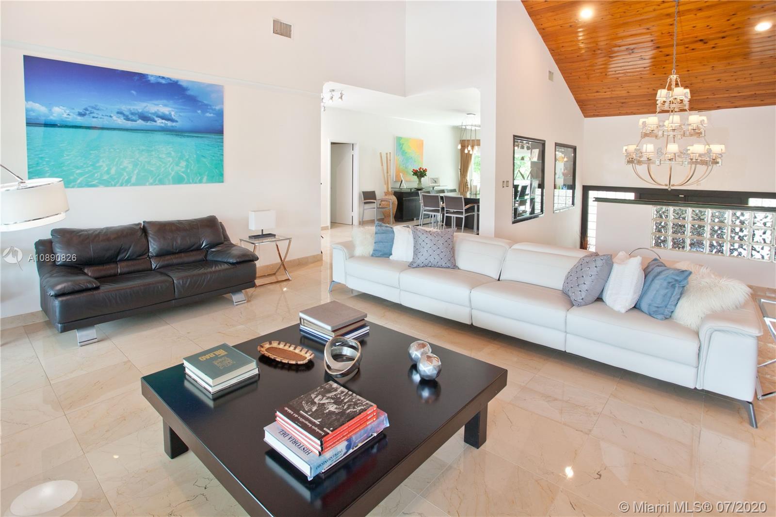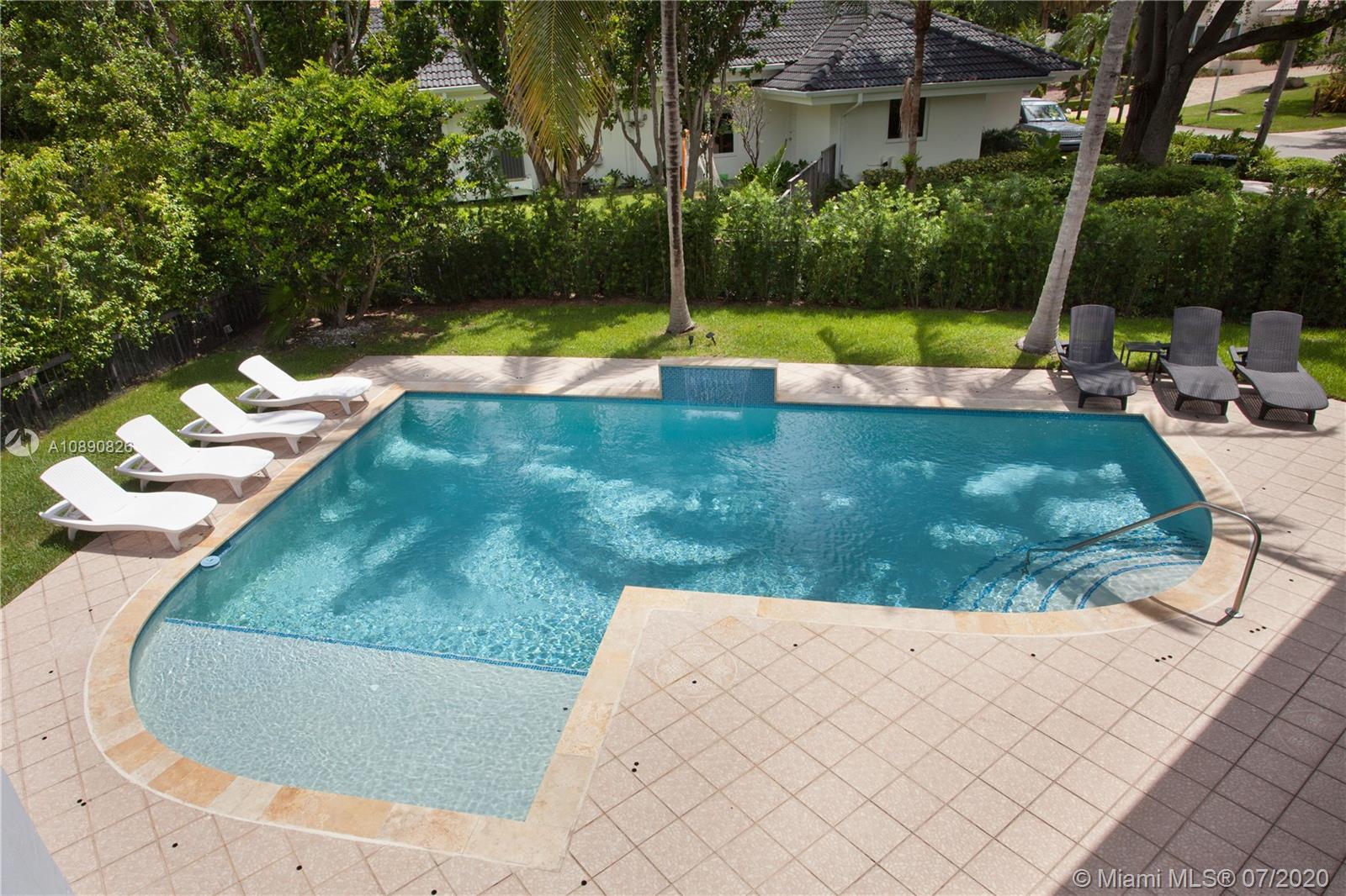 Spacious home in Islands of Cocoplum. From foyer landing, step up to large living rm w/high ceilings & glass doors overlooking pool/patio. Spacious formal dining rm. & guest suite off living rm. Kitchen w/granite counters, cooking island, opens to eating terrace & staircase leading to the pool & patio. Bedrm wing has a large main bedrm w/2 walk-in closets, large bathrm w/separate shower/tub & double sinks. There are also 2 very spacious suites. Large bonus area w/2 entertainment spaces w/wet bar, cabana bath, & additional spaces that can be used for playroom, recreation, gym, storage, etc. 2-car garage, covered terrace, pool w/cascade, fence & privacy hedge. The property also offers a small playground area. 2017 impact windows/doors, 2016 roof and 2018 A/C units