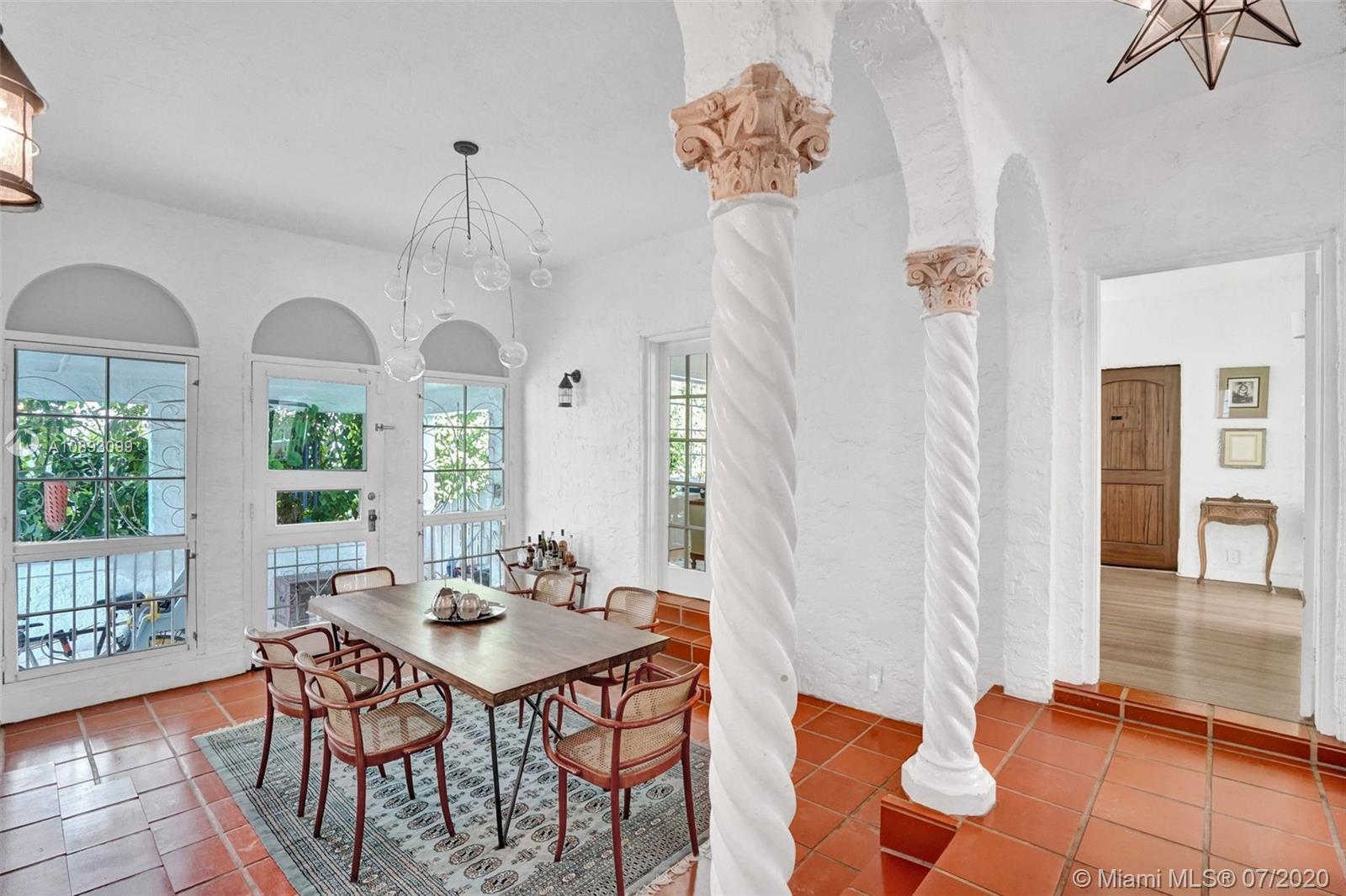 Raise una copa to this truly unique Old Spanish casita just outside of Downtown Coral Gables. Restored decorative elements highlight a modern, sun-drenched flow and layout that beautifully ties the lush garden views into every living space. Notable updates include PVC plumbing throughout, contemporary landscape, entrance steps with pavers and driveway, bleached and refinished original wood floors, new bathrooms with decorator tiles, and irrigation system. Home also features impact windows, wood kitchen cabinets, back and side yards with patio areas and detached garage. All in the heart of the City Beautiful. Make this little piece of the Gables’ rich history yours.