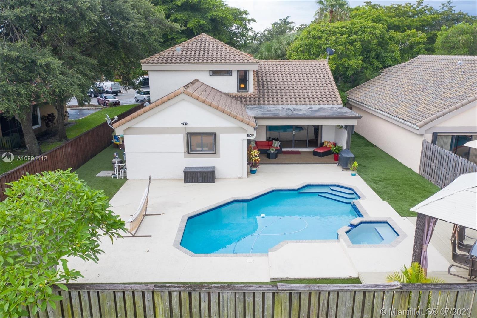 Beautiful spacious and contemporary modern 2 story home in Plantation, It features attractive kitchen with granite countertops, stainless steel appliances, huge pantry and plenty of kitchen cabinets; master bedroom with walk in closet and recently remodeled master bathroom on first floor; 2 car garage with hurricane barricade device for garage door and mini-split air conditioner; a loft upstairs can be used as an office; huge backyard fully fenced with pool and Jacuzzi, fence has an electronic access rear gate, backyard has a low maintenance artificial grass safe for pets; it has 3 attics for extra storage. House includes advanced touch screen security system, google nest HVAC controller. This property is one of the largest lots in the community with wide driveway in a cul-de-sac.