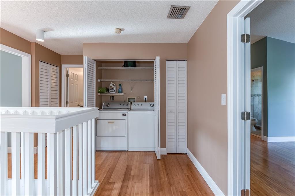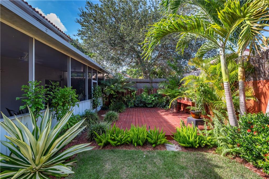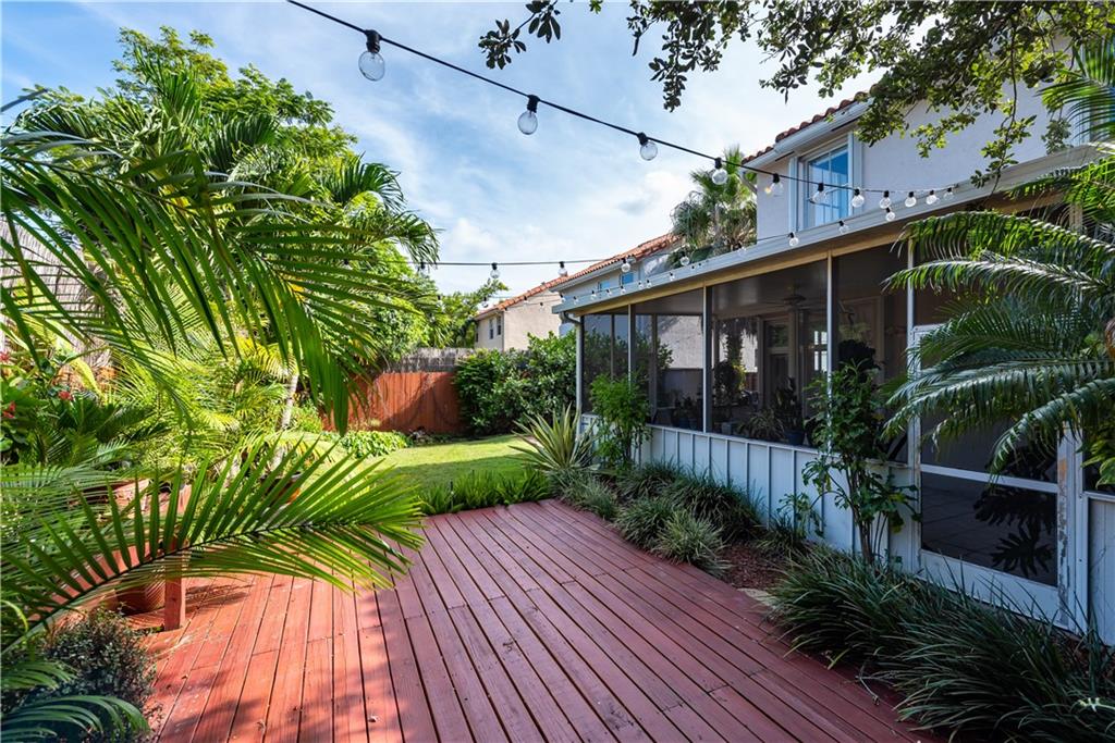 Remodeled home throughout and the perfect amount of space to enjoy and relax. One of the biggest lots in Community. Huge Screened in porch with overhang overlooking yard, garden, and custom deck. Updated kitchen with wood cabinets and granite tops. All Bathrooms remodeled. Just painted. Two car garage was professionally converted to 4th room for playroom, gym, home office. Accordion Shutters. Long driveway. Washer/dryer upstairs. Tons of light. Community dues include cable, gym, playground, and security guard patrol. Additional guest parking and pool are a two second walk. No neighbors to one side of you. This home is special and has great charm.