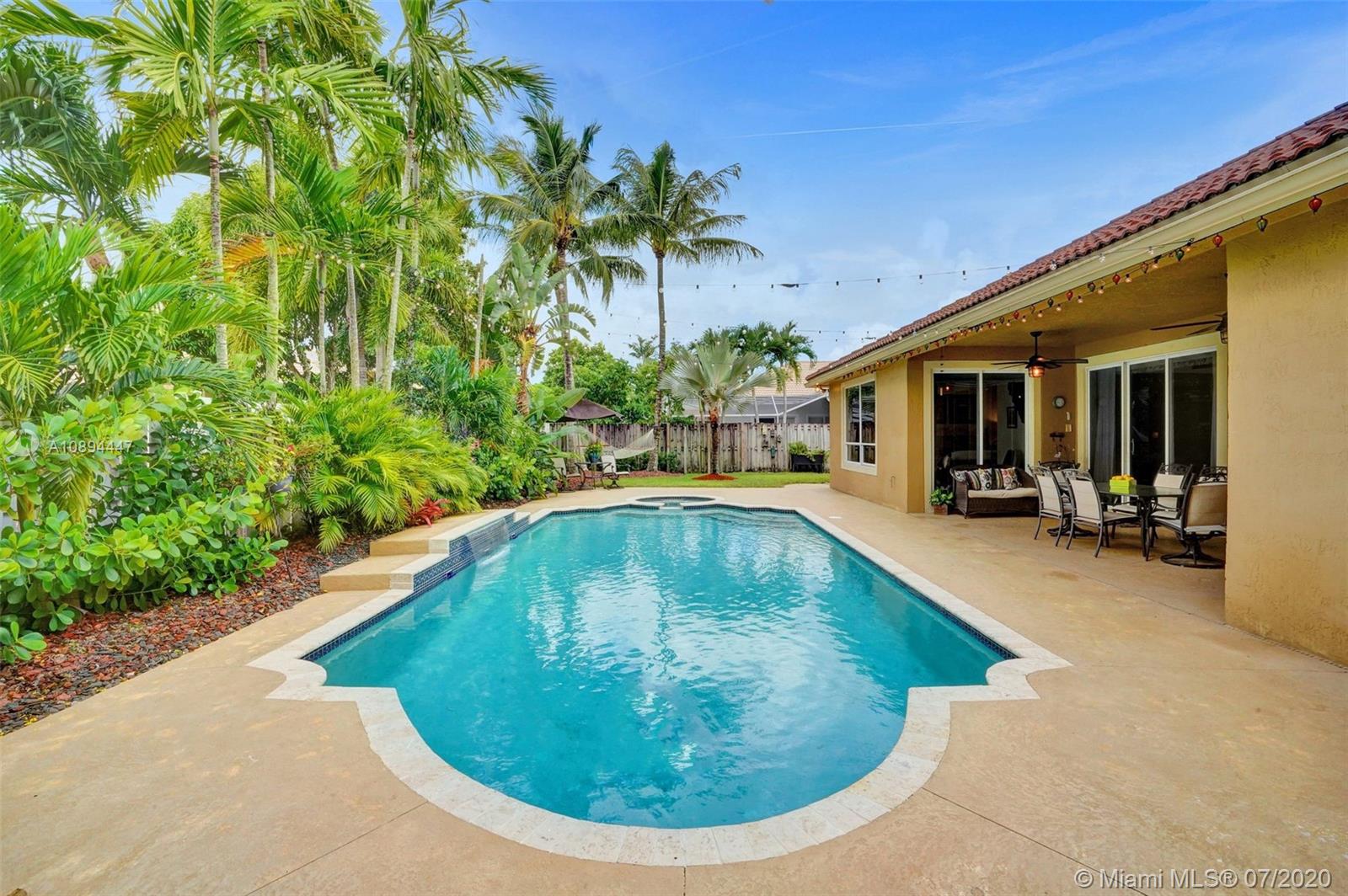 BRAND NEW ROOF! ** TEAR OFF DATE IS AUGUST 17TH! ** SPLIT FLOOR PLAN W/ 4 BEDROOMS & A HUGE OFFICE/DEN W/ FRENCH DOORS, PLUS ANOTHER BONUS ROOM/OFFICE JUST OFF OF THE KITCHEN, & 3 FULL BATHROOMS. SPACIOUS KITCHEN FEATURES BRAND NEW STAINLESS STEEL REFRIGERATOR, ALL SS APPLIANCES & A GAS STOVE/RANGE. LARGE MASTER SUITE WITH SITTING AREA OVERLOOKING THE POOL, SPA & PATIO. LUSH, TROPICAL LANDSCAPING & PLENTY OF YARD. RELAX IN THE HAMMOCK & YOU'LL THINK YOU'RE AT AN ISLAND RESORT! THIS HOME OFFERS CROWN MOLDING THROUGHOUT, LOTS OF FLEXIBLE SPACE, A 3 CAR GARAGE & SO MUCH MORE! PEMBROKE FALLS IS GATED WITH 24-HOUR SECURITY, A NEWLY REMODELED CLUBHOUSE W/ POOL, TENNIS COURTS, BASKETBALL COURTS, GYM & DESIGNATED DOG PARK. HOA INCLUDES CABLE, FIBER OPTIC INTERNET & 24-HR SECURITY.