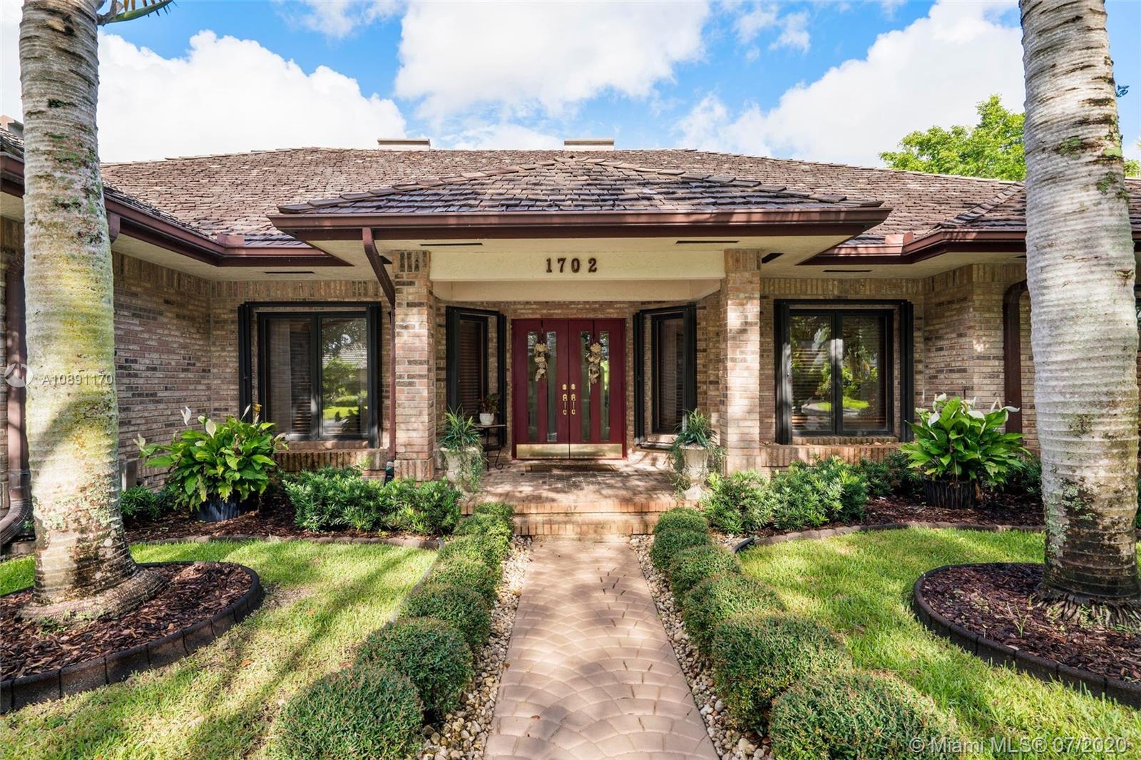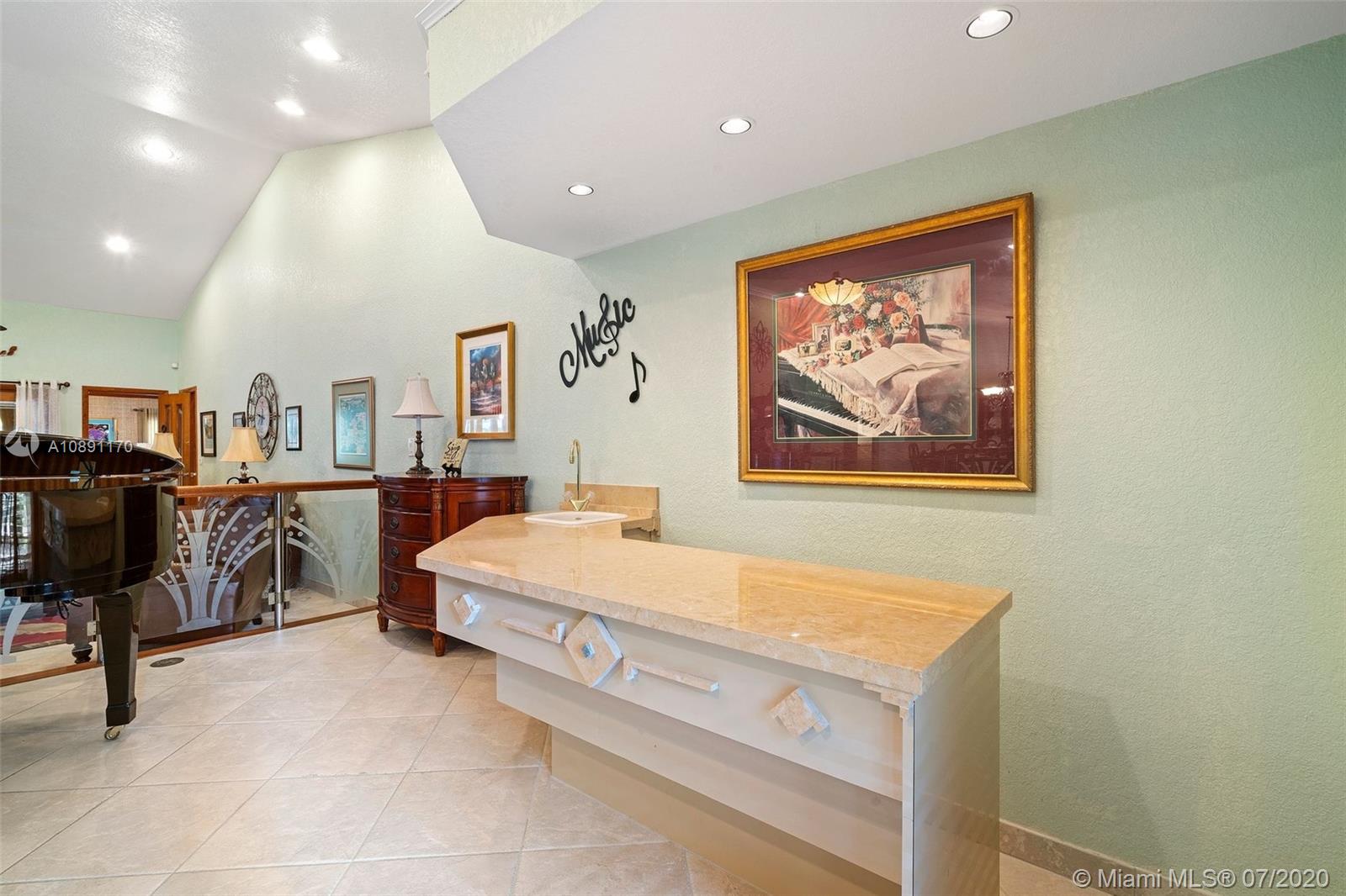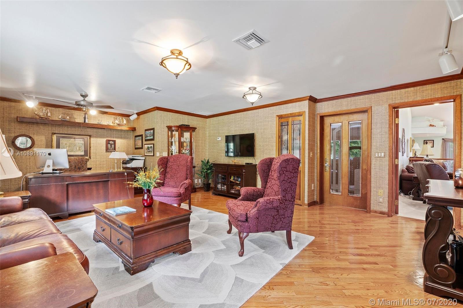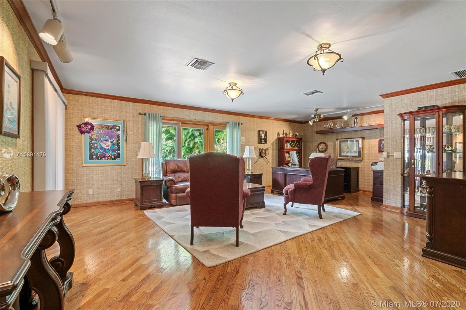 Charming and spacious one-story home in Maplewood Isle, a 24/7 manned gated community of only 105 custom-built homes, tree-lined streets and winner of 2016 Mayor's Rose Award for most beautiful neighborhood. 4 bedrooms/2.5 bathrooms plus a large office or entertainment room that overlooks the pool/spa and the recently updated patio area. Gorgeous landscaping and details around the home. Kitchen with island, granite counter tops, Bosch appliances, double oven self-cleaning, wine cooler, hot water dispenser, pantry, and abundant cabinets. Living room features a marble wet bar. Master bedroom with sitting area and whirlpool bath tub in master bathroom. Great waterview backyard includes Gazebo-style outdoor kitchen. Accordion shutters. Central vacuum system. Washer and Dryer do not convey.