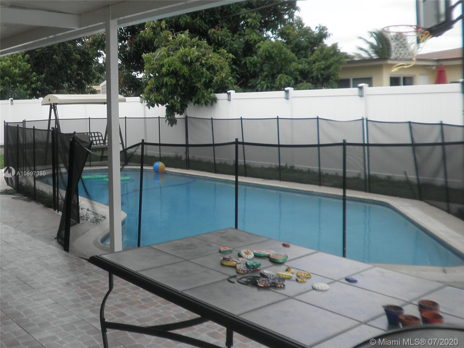 BEAUTIFUL home in a QUIET neighborhood with a LARGE front yard and a COVERED carport and EXTRA parking, POOL in a PATIO area with tile, NEW shed for storage, 4 beds, 2 updated baths, sitting area, kitchen with GRANITE countertops, laundry room and ceramic tile throughout, NEW fence all around, NEW tankless water heater, NEW A/C, Hurricane shutters and ALARM system with cameras. Great opportunity. SELLER MOTIVATED willing to help with BUYER closing costs.