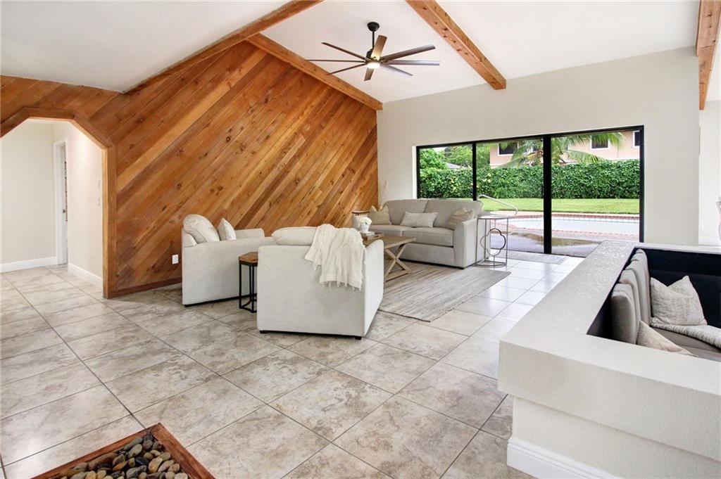 Welcome to Jacaranda Lakes!!! this is a desirable neighborhood in Plantation Fl. This home has a lot of character!! wood wall and wood bins on vaulted ceilings, 4/2 (double car garage can be used as a 5TH bdr or suite, great room, game room or gym) huge fenced patio with a waterfall/pool, an amazing fire place on a stone wall with sitting area, 2 sky lights, led lights, formal dinning, ceramic tile and home has being painted and remodeled, 2008 roof, 2015 A/C, tank-less water heater, laundry room. This home was under contrafct and we passed appraissal. Take advantage now, This beauty won't last, this home is vacant and ready for you to move in!!. Virtual video tour available.