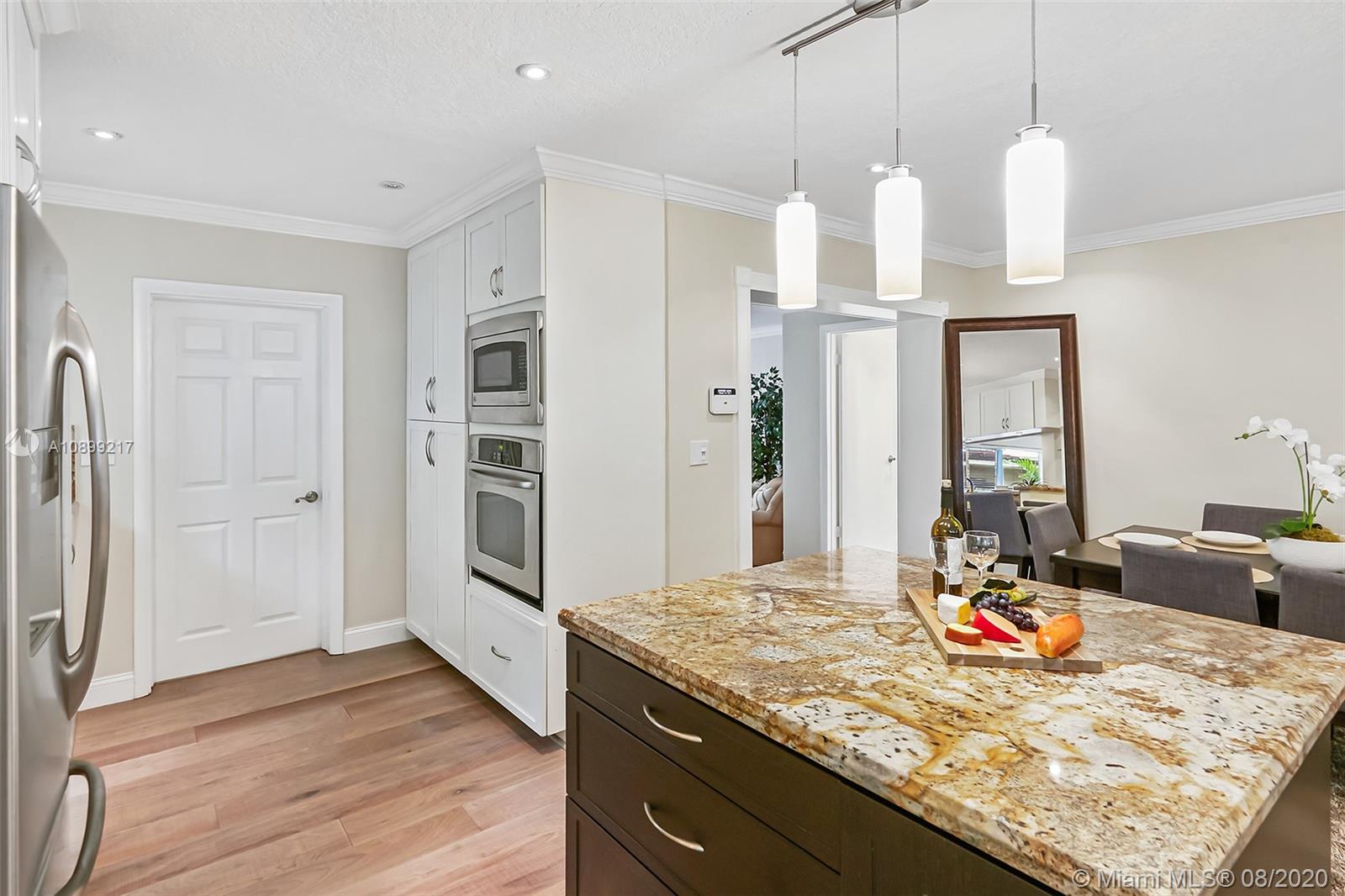 Tastefully updated, triple-split layout for ultimate privacy with 3 large bedrooms & show stopping master SPA bathroom with luxurious jetted shower and modern freestanding tub. Beautiful white kitchen, all built-in stainless-steel appliances and an oversized island is the heart of this open floor plan with stunning real wood floors. Ample closets, low maintenance backyard & located 2 MILES FROM BEACH in highly coveted South (Intercoastal)Lake neighborhood. Ready to move in with IMPACT DOORS & WINDOWS and tankless water heater. Close to downtown Hollywood (Young Circle), fabulous Gulfstream restaurants, shopping, entertainment and more.