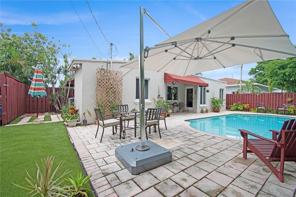 Outstanding Pool Home, a Gem in Sought-After Poinsettia Heights. Split Floor Plan features 3 Beds, 2 Baths, an Updated, Open Kitchen with Wood Cabinets, Stainless Steel Appliances, New Microwave & Disposal, Eat-in Area & Granite Counter-tops. Lushly Landscaping with a Secluded and Private Backyard complete with NEW Pool heater & Cleaner. Additional features Included: Updated Electrical & Mechanical / Indoor Laundry Area / Tile, Wood & Laminate Floors / Custom Window Shades / Wood Fireplace / Thermo-Guard Roof (25 yr Guarantee). Freshly painted interior / 2 New Water Heaters (1 tankless), NEW A/C, Electrical Panel & 50 AMP for a Hot Tub, Wired for Full Generator, Updated PVC pipes to the street, Awnings, ALL Impact Windows and Doors. You don't want to miss this one it will sell fast!