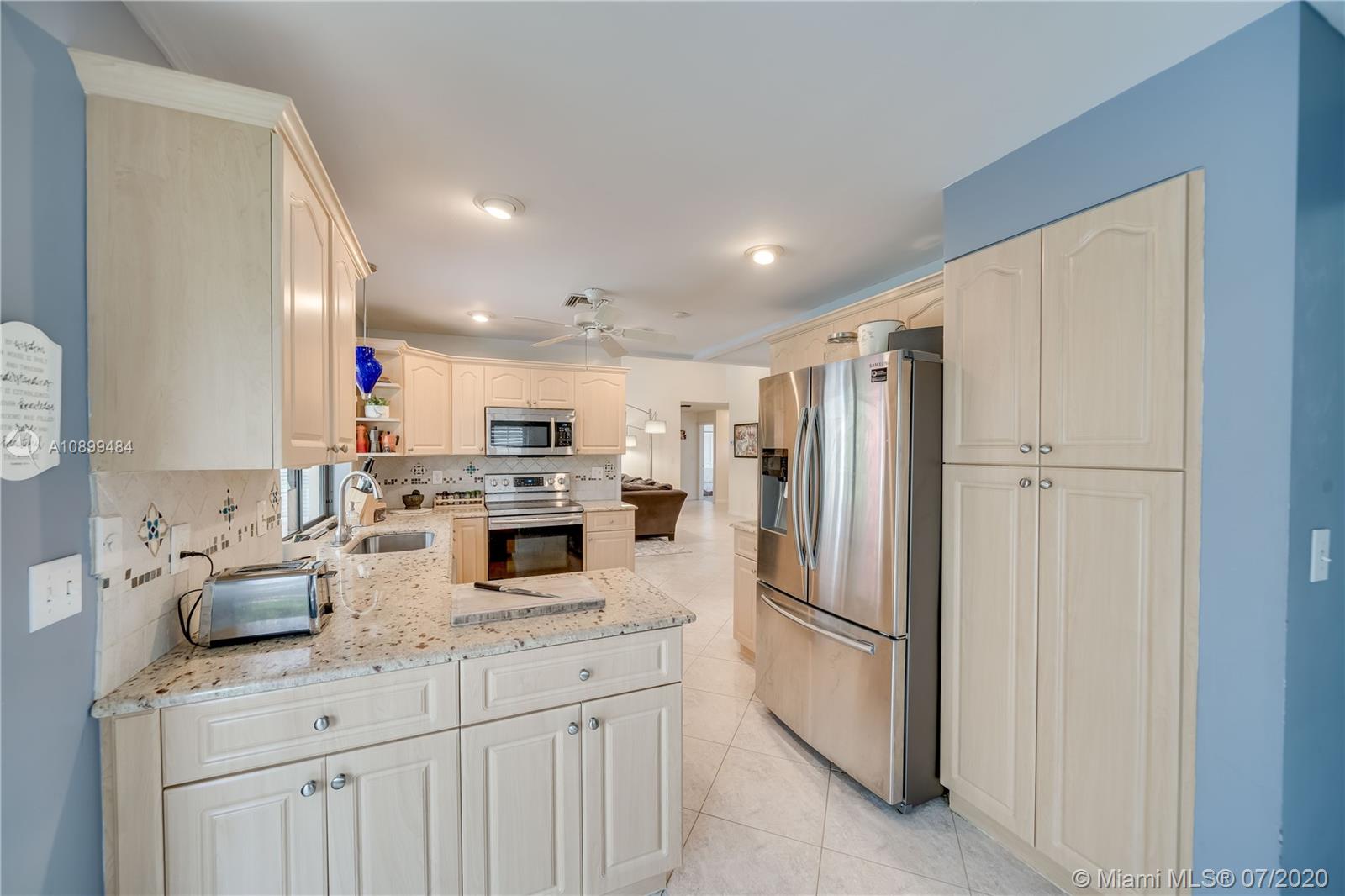 Amazing 4/2 in the Fabulous neighborhood of Jacaranda Lakes. Open floor plan with vaulted ceilings in the main living areas which are perfect for entertaining. Eat-in kitchen with granite countertops, wood cabinets, and S/S appliances. Stacked bedroom plan with neutral tile in all living areas & vinyl, and carpet in the secondary bedrooms.. Large master suite w/wood floors, walk-in closets, & updated master bath. Second bathroom has also been updated. Extended patio w/spectacular views of the pool and backyard. The roof was replaced in 2006, and one newer AC. Home has hurricane protection including 90% accordion and a few panel shutters. Low HOA and the list goes on.
