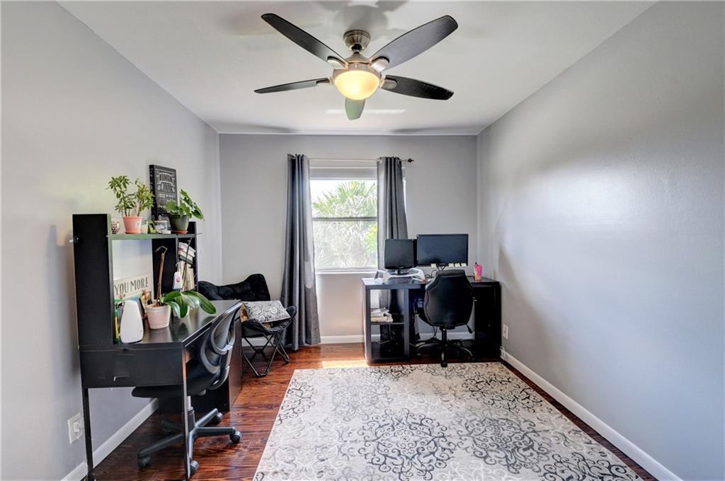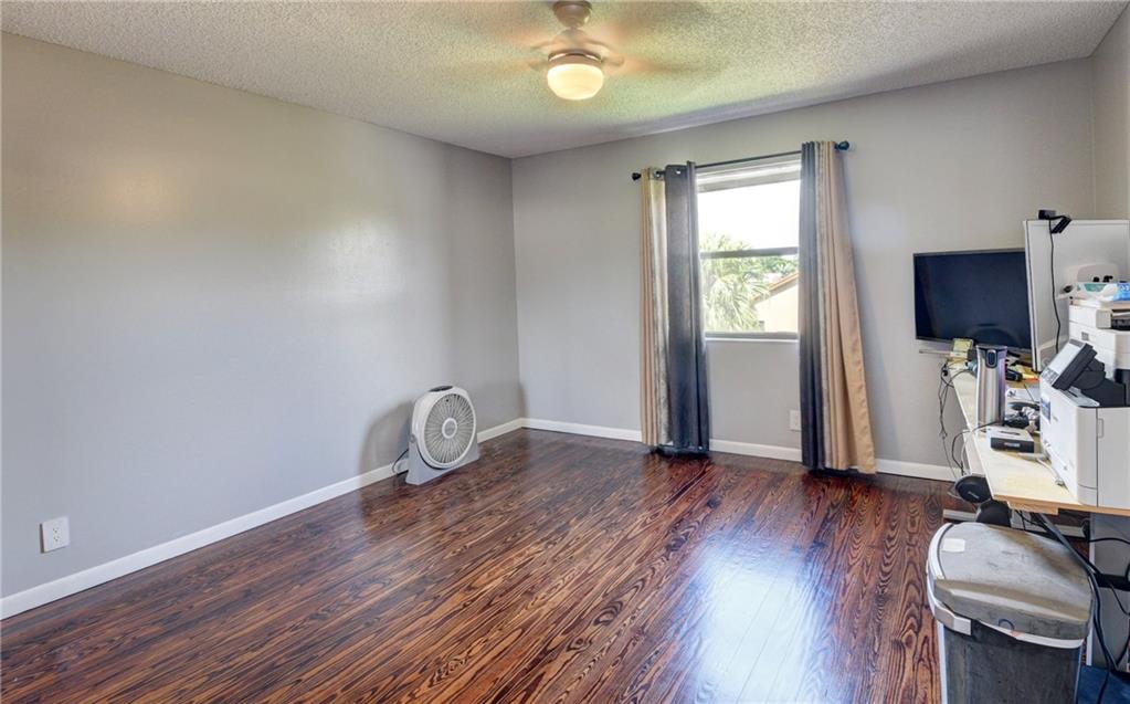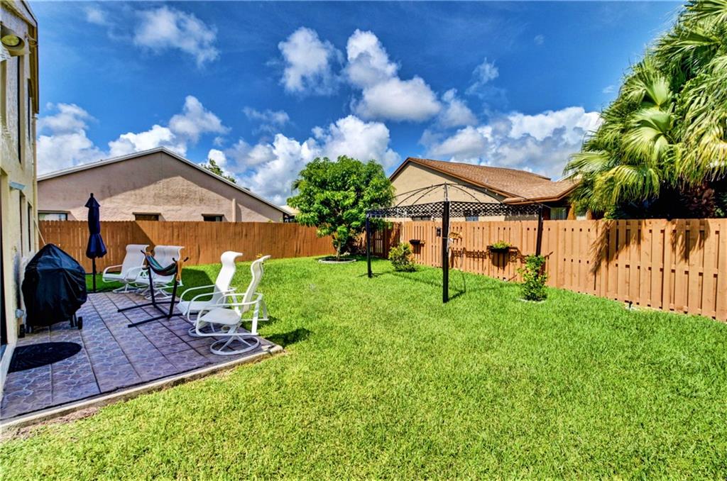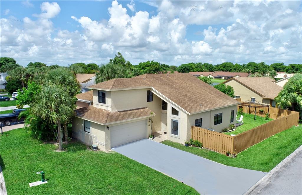 Beautiful Corner lot 4 bedroom 3 full bath home directly across the street from the community pool. Remodeled kitchen with high end french door refrigerator, 2yr old stainless appliances, granite counter tops & eat-in area. NEW waterproof flooring downstairs & wood floors upstairs. High Vaulted ceilings with extra windows bring amazing natural light. Master bedroom is conveniently on the ground floor with 2 closets. Master bathroom includes roman tub & separate walk in shower. Large closets in all bedrooms. New exterior paint & hurricane shutters. Huge fenced backyard with double side gate opening towards community pool. Alexa smart home technology throughout including Nest thermostat w 2yr old A/C. Close to shopping, restaurants, parks & A rated schools. Low HOA dues & pet friendly