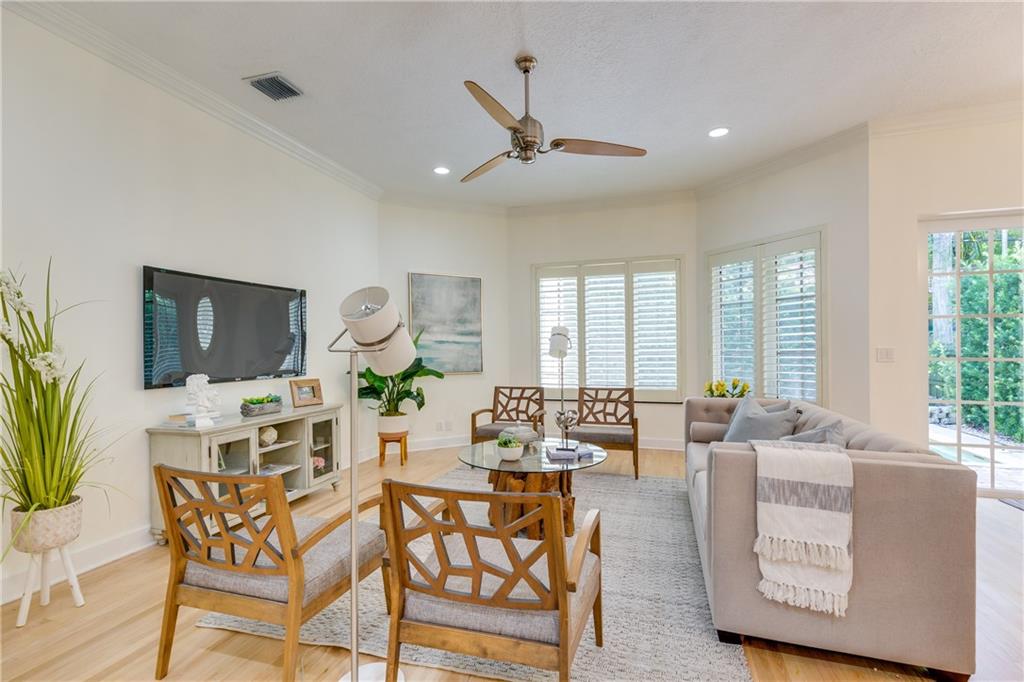 • Интерьер:WetBar, BreakfastBar, BuiltinFeatures, BreakfastArea, FrenchDoorsAtriumDoors, GardenTubRomanTub, HighCeilings, LivingDiningRoom, MainLevelMaster, SplitBedrooms