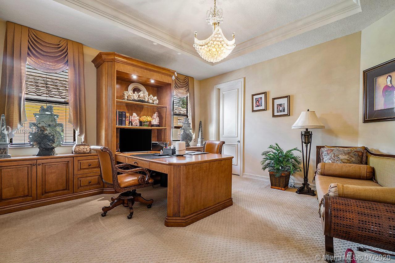Spectacular estate home in the highly sought after gated Boca Raton community - The Oaks. Featuring 6B/6Ba/2HB + home office/library and a spacious loft designed as an entertainment space. This property was a developer’s model home and it had every kind of upgrade you could imagine. Marble floors throughout the first floor, beautiful spiral staircase leading up to the expansive second level, gourmet kitchen, water filtration system throughout the house, full impact windows and front door, 2 fire places and much more. Immense master bedroom is upstairs and features marble floors in the hallway, 2 master bathrooms (his and hers), custom-built walk-in closet and balcony overlooking the lake. All four A/C units have been replaced in the last 2 years. Furniture is negotiable.