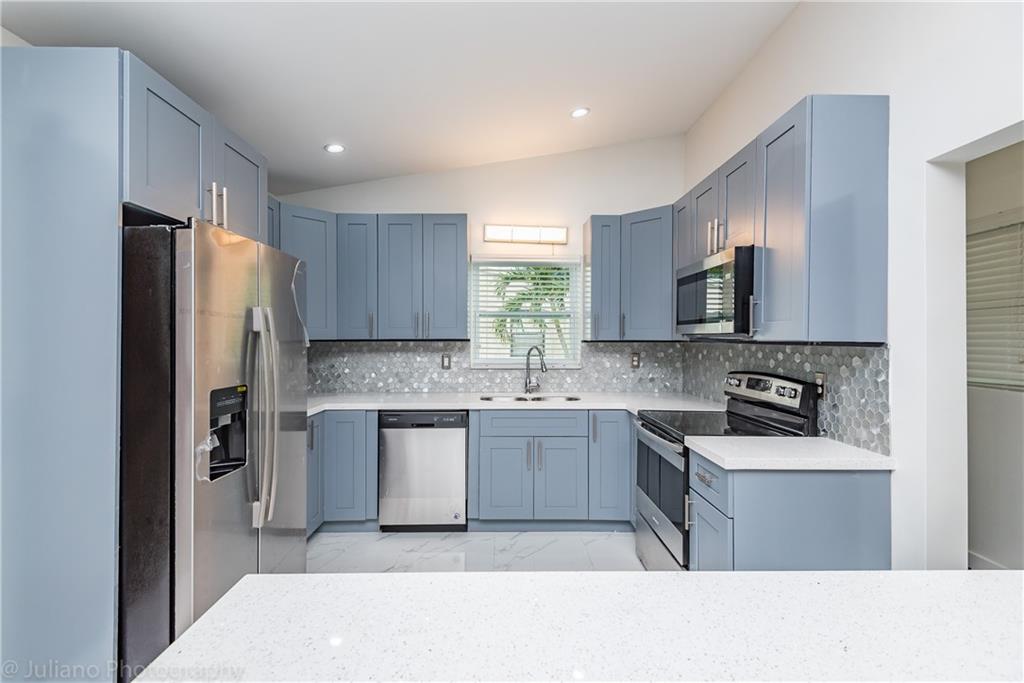 GORGEOUSLY RENOVATED 3BR/1BA HOME WITH A MODERN TOUCH. NEW ROOF, NEW WINDOWS, NEW KITCHEN WITH QUARTZ COUNTERTOPS, STYLISH GLASS BACKSPLASH AND TALL 42" CABINETS. FROM THE MOMENT YOU WALK IN TO THIS SPACIOUS OPEN FLOOR PLAN WITH VAULTED CEILINGS AND RECESSED LIGHTS TO THE LARGE BACKYARD WITH ROOM FOR A POOL AND FRUIT TREES YOU WILL KNOW YOU HAVE FOUND YOUR NEXT HOME. THIS HOME IS BRIGHT, FRESH AND INVITING! ALL NEW TILE FLOORS IN LIVING AREAS AND WOOD LOOK TILE IN BEDROOMS. ALL OF THE BEDROOMS ARE OF AMPLE SIZE. THE BATHROOM IS BEAUTIFUL WITH PANEL SHOWER AND GLASS DOORS. NEW STAINLESS STEEL APPLIANCES INCL WASHER & DRYER, AND TANKLESS WATER HEATER. NEW DOORS, NEW BASEBOARDS, NEW AC DUCTWORK AND INSULATION, NEW INGROUND SPRINKLER SYSTEM, MORE! THIS IS LIKE BUYING A BRAND NEW HOME!