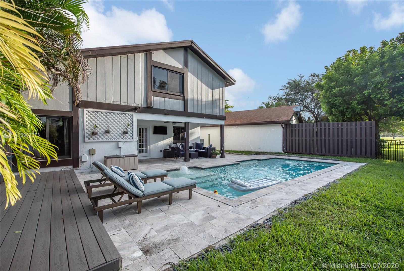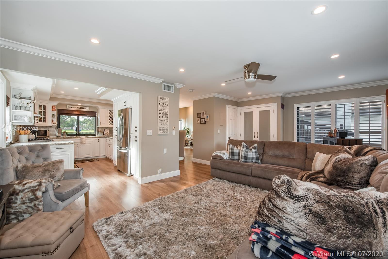 This fully remodeled, move-in ready home has it all, plus a breath-taking view of the golf course. Soaring ceilings, beautifully remodeled kitchen with granite counters, wood cabinets, marble backsplash, new SS appliances, and a gas range. All 3 bathrooms have been remodeled. Impact windows. Gorgeous laminate floors throughout. Custom front door and french doors. New pavers in front. Stunning pool, travertine patio, roof equipped with solar panels that can provide free pool heating. Large backyard great for entertaining, TV outside, custom deck and outdoor shower. Newer roof. AC installed 2014. Google Nest system equipped (including smoke and CO detector), keypad front door entry. Located in desirable Arbor Green community, conveniently located near shops & restaurants.