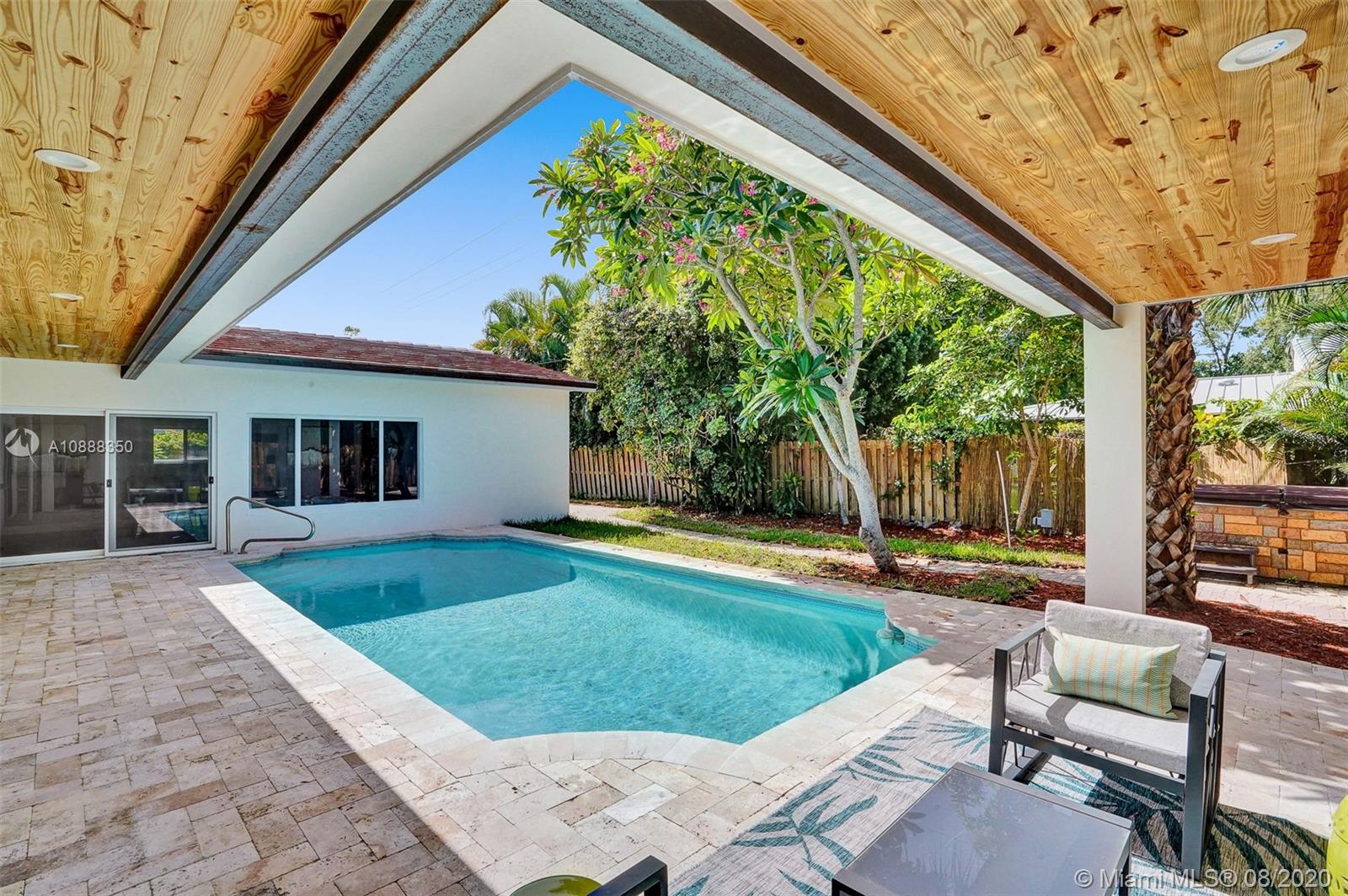 Welcome to this stunning home on an oversize lot on a coveted Coral Ridge Country Club street. This unique home was recently expanded to 3183 ft² under air. Built with Dade pine known for its superior qualities, impact windows & a brand new roof, it offers peace of mind amidst the elements. Featuring two over-sized luxurious main bedrooms, a triple split floor plan with one room having secured exterior access & a bonus room that can function as an office/study/playroom/studio! The stunning hardwood custom-built kitchen features top-of-the-line appliances & a cooking peninsula. An entertainer’s dream home! Enjoy meals in your dining room with stunning pool views, featuring new travertine pool deck, new recessed lighting, new irrigation & an amazing wall perfect on which to project TV!