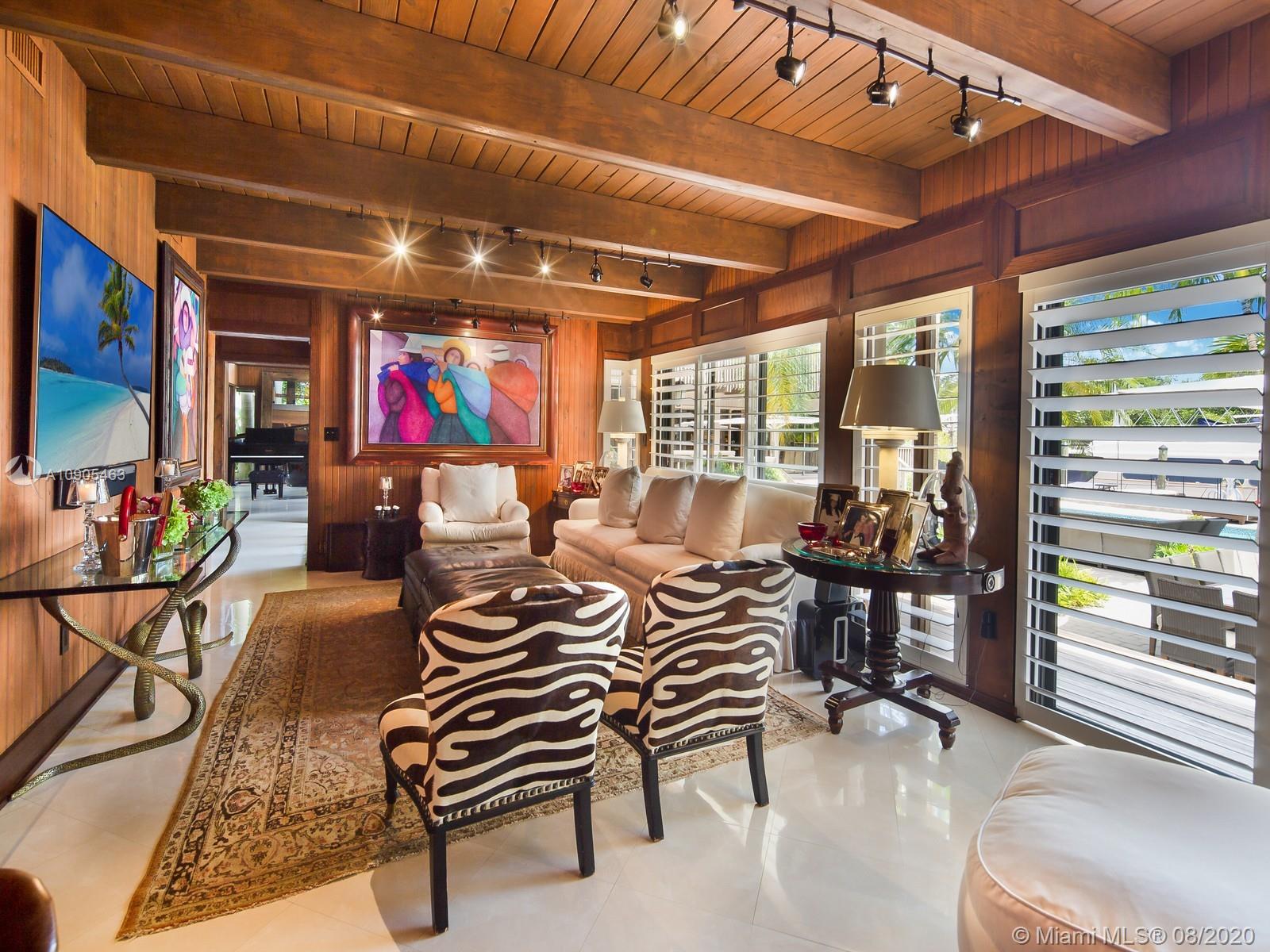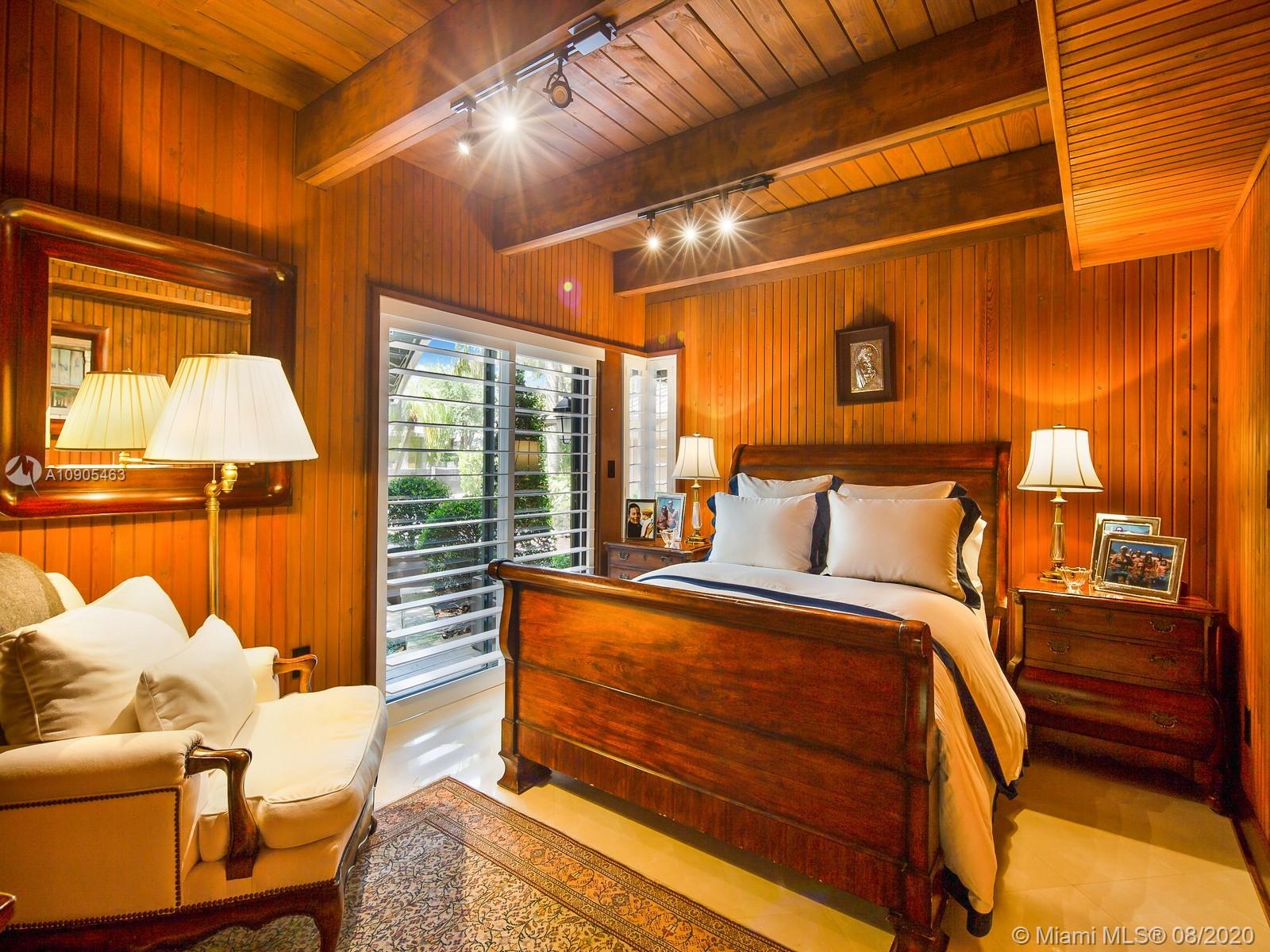 Key Biscayne waterfront in Cape Florida on Pines Canals. Refreshingly scaled for gracious living. This unique custom home designed by architect John Albert Weller features vaulted ceilings throughout, 5 bedrooms 5 full baths 1 powder bath. The understated interiors; all with water views, Gourmet kitchen with Wolfe gas stove, Miele dishwasher, Subzero refrigerator freezer, subzero wine cooler and a subzero ice maker & pantry. The exterior features lush landscaping for privacy with an open layout patio area great for entertaining with a gazebo, pool. The new recently built dock in IPE, can moor a large vessel, has a sun deck, new piles, fortified seawall, no bridges to bay the waterfrontage is 100 ft the lot is over 17,000 sq feet. This rustic home is one of a kind.