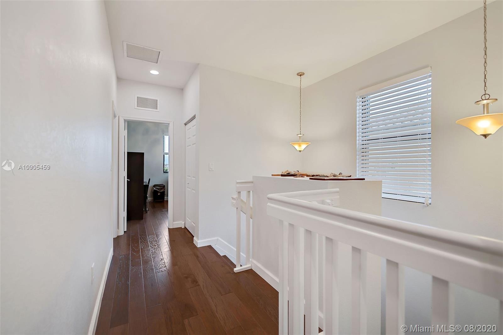 Gorgeous 4 Bedroom, 2.5 bath Bonterra corner townhome with stunning water views! Relax on your patio and enjoy the serenity that lakeside living brings. This unique unit has beautiful wood flooring on both the first and second floors. Freshly painted, open kitchen and family room overlooking the lake. The kitchen offers Modern style cabinetry, granite countertops and stainless appliances. All bedrooms are located on the second floor, along with the laundry area. Generous size master suite with a huge master bath. Accordion shutters throughout, attached single car garage plus additional driveway parking for 2 vehicles. Bonterra is a gated community with 24/7 security and luxury style amenities. Easy access to the surrounding communities of Doral, Miramar and Miami Lakes.