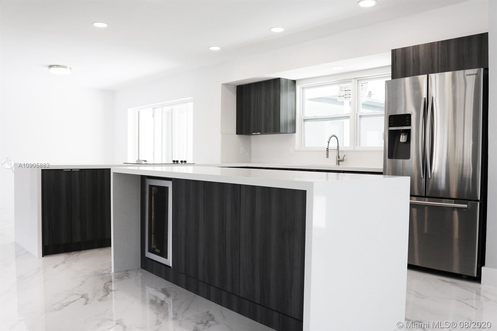 Amazing high quality complete new 4bed/3bath with double car garage. Open-style kitchen with real Spanish high quality wood custom Cabinetry and center Island on Quartz counter top with falls Stand and brand new stainless steel appliances. Gorgeous. Modern 24¨x 24¨ Porcelain Carrara Style combined with wood. Stunning master Bathroom with 24¨x 12¨ porcelain walls and double shower. Modern wood cabinet with quartz and Italian faucets, complete new walking closets in master bedroom. Large backyard and pool. Totally hurricane proof, driveway and laundry bonus.Private fourth room with bathroom and kitchen to use as a play room, guest room or rent income. All new electricity withLed Everything has been done with all permit that city of Hollywood required (electrical, structural, plumbing).
