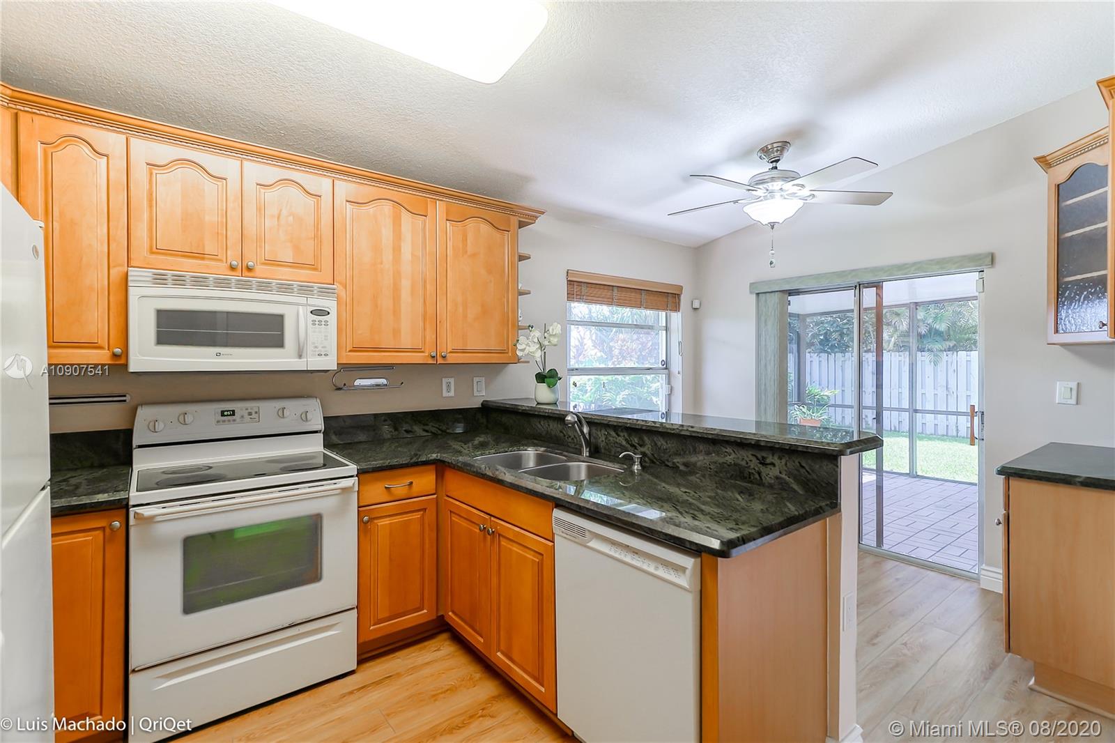 Come and see this great 3 bedroom 2 bath home. Nice newer wood laminate flooring throughout the house, master bathroom has been tastefully remodeled. Kitchen features oak wood cabinets and unique granite counter tops. Cover patio opens up to the nice a great size fully fenced yard were you can entertain and have the kids play securely. Roof was redone after Wilma. House located across from community pool.