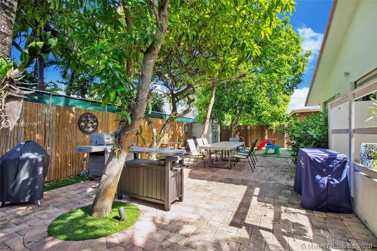 There is nothing else like this on the market in Surfside! Built in 1992, this modern, custom-renovated home is significantly elevated and has wide open living areas and soaring ceilings. There are 3 bedrooms, 3 renovated bathrooms, and a garage that's currently used as an office and could be converted into a 4th bedroom. The large kitchen has a huge bar, plenty of cabinets, and high quality appliances. There is beautiful polished concrete flooring throughout the living areas & wood laminate in the bedrooms. The spacious master suite has a walk-in closet & double sinks. The backyard is perfect for outdoor entertaining & has room for a pool. Walk to the beach, Surfside community center/pool, Bal Harbour Shops, Four Seasons Surf Club, shopping & dining. Zoned for A-rated Bay Harbor schools.