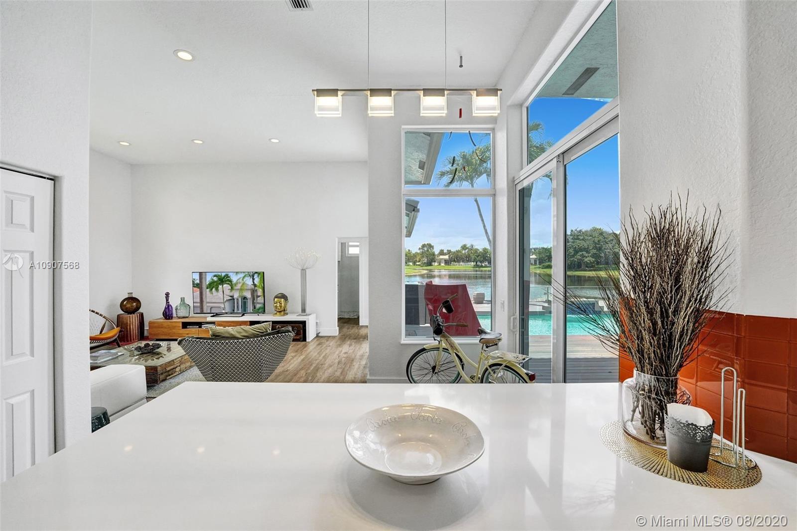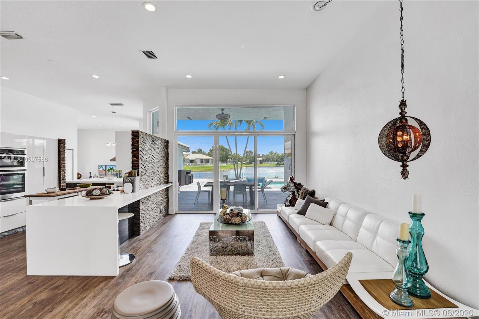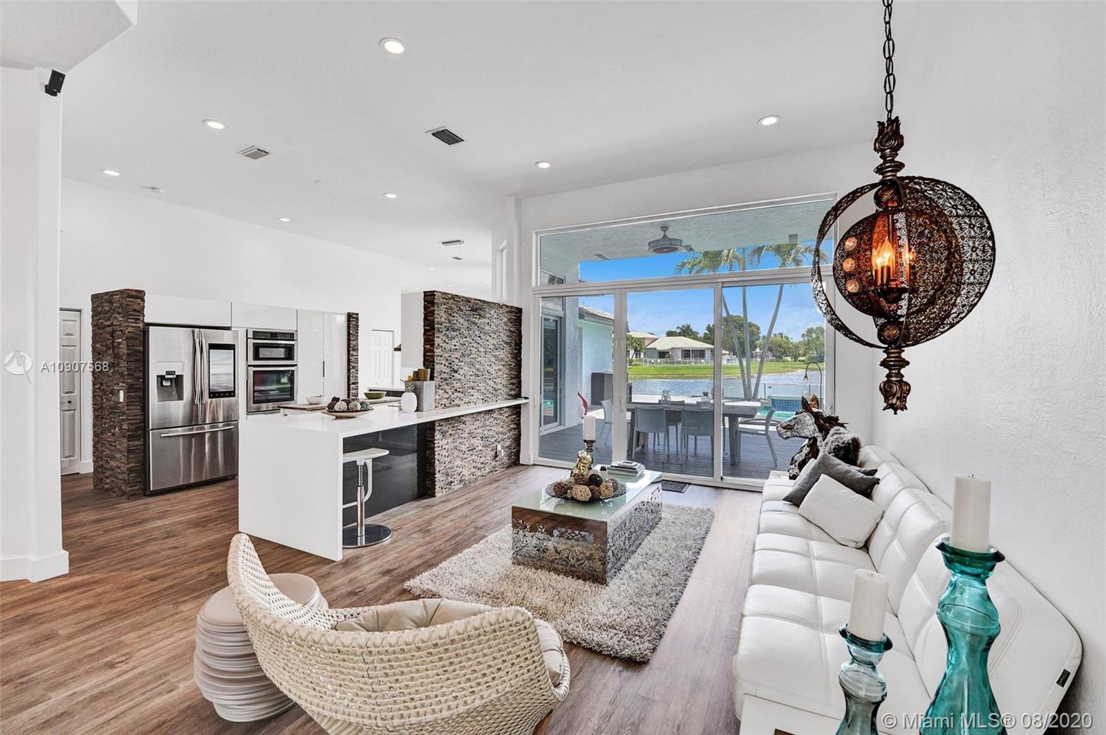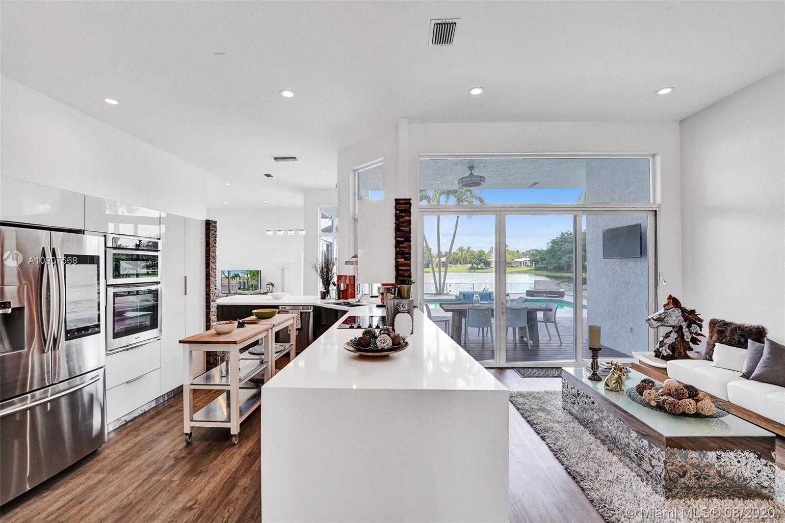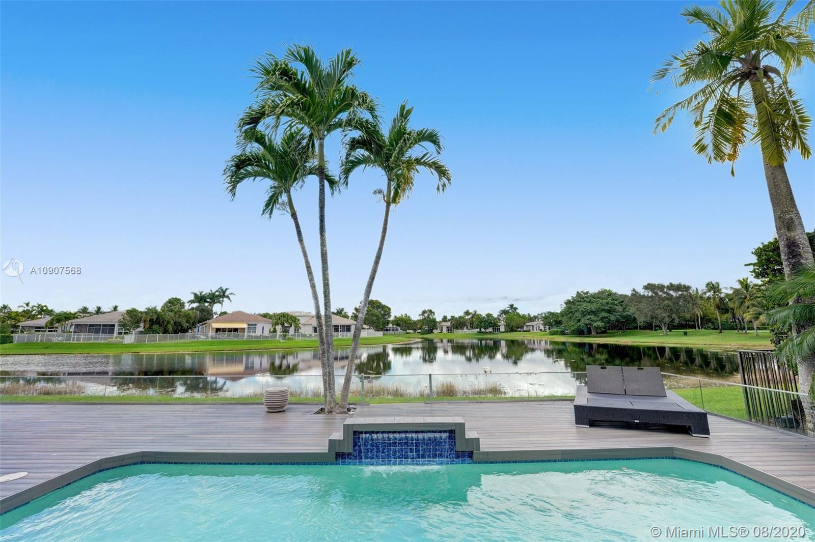 YOU FOUND IT! Weston Hills priced to sale one story home on a waterfront premium lot. Originally used as a developer's model home and as a vacation home since it was remodeled from top to bottom in 2018. 5 bed/4 bath on a triple split floor plan with amazing water views and 3 car garage. The gorgeous open concept kitchen features a huge custom made white quartz double counter top and modern white/grey dual tone cabinets complemented by a glass orange back splash. New waterproof flooring in the entire house and the bathrooms featuring no step down walk-in showers, main bath with double ceiling shower heads and barn glass shower door. Prepare to be amazed with a unique style pool deck made with maintenance free engineered wood and resort style glass perimeter fence. Impact windows and doors