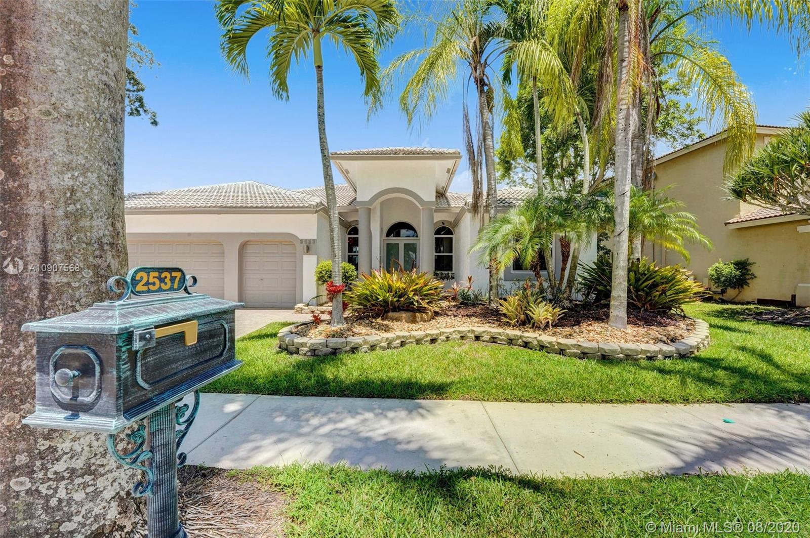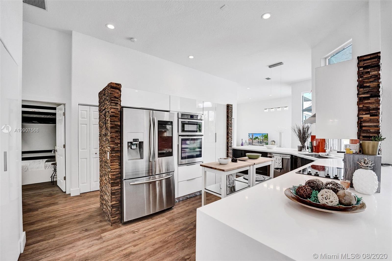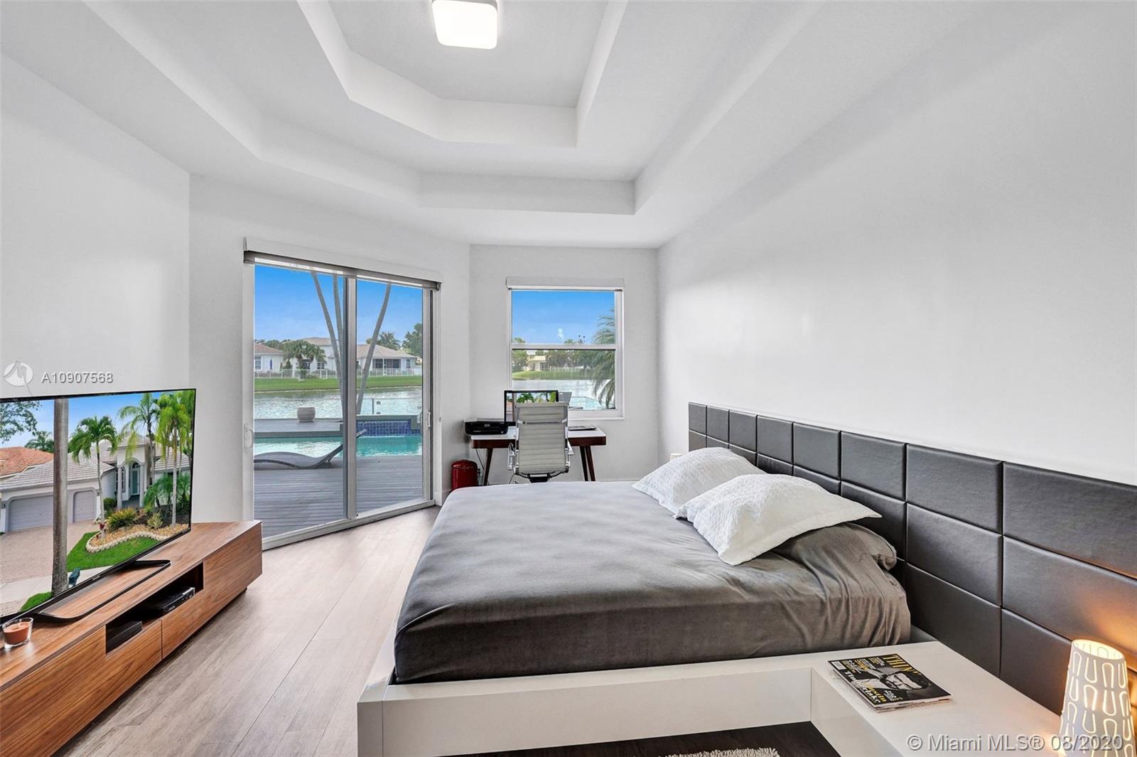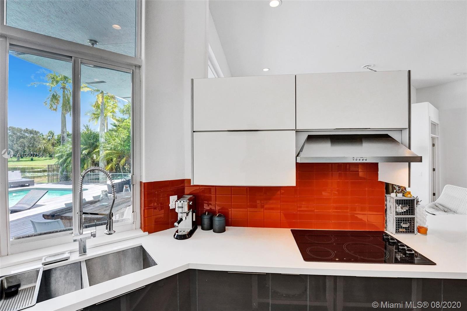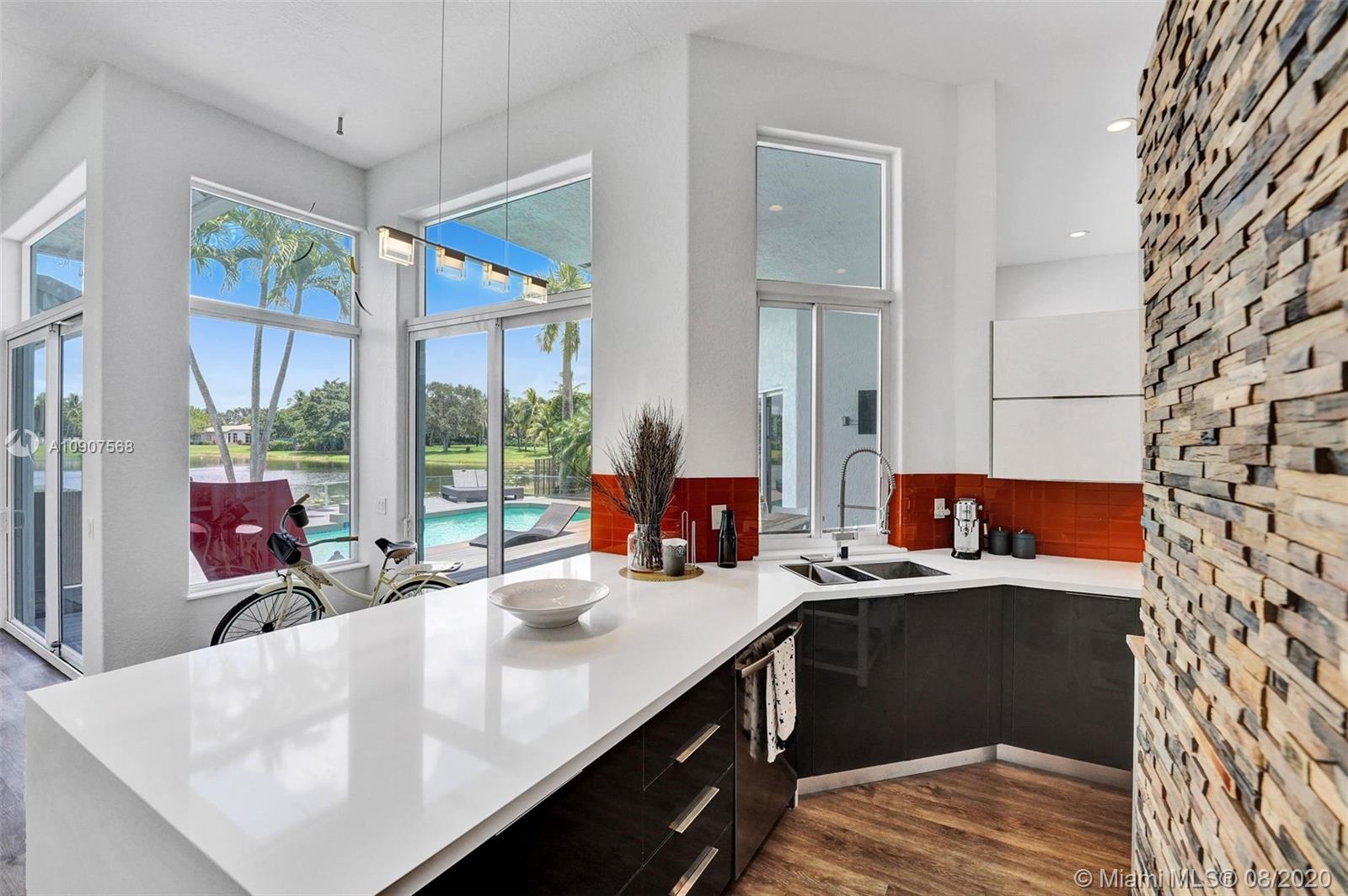 YOU FOUND IT! Weston Hills priced to sale one story home on a waterfront premium lot. Originally used as a developer's model home and as a vacation home since it was remodeled from top to bottom in 2018. 5 bed/4 bath on a triple split floor plan with amazing water views and 3 car garage. The gorgeous open concept kitchen features a huge custom made white quartz double counter top and modern white/grey dual tone cabinets complemented by a glass orange back splash. New waterproof flooring in the entire house and the bathrooms featuring no step down walk-in showers, main bath with double ceiling shower heads and barn glass shower door. Prepare to be amazed with a unique style pool deck made with maintenance free engineered wood and resort style glass perimeter fence. Impact windows and doors