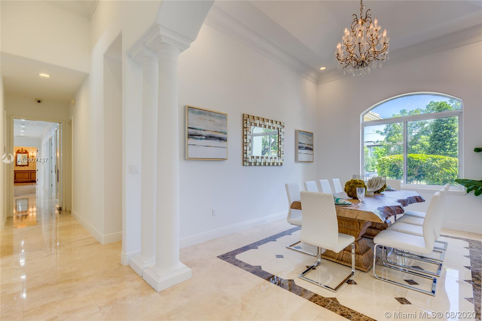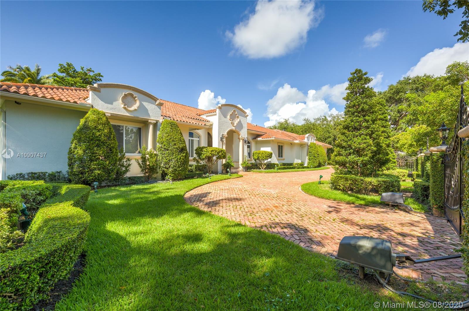 With 10-13' ceilings, light colored travertine floors and prime North Pinecrest location, this single story residence offers style that endures. From the elegant foyer you’re met with natural light at every turn taking you through an idyllic floor plan. Whether you enjoy entertaining loved ones or need a functional multi-generational floor plan, this home has it all. Two wings with a master suite at each; formal living, dining and fireplace family room, plus a grand oak paneled entertainment lounge complete with full bar, 700+ bottle wine room and powder room. The pergola covered patio with full counter summer kitchen extends from the entertainment lounge with views of the private manicured landscaping and heated pool and jacuzzi. Pinecrest Elementary district.