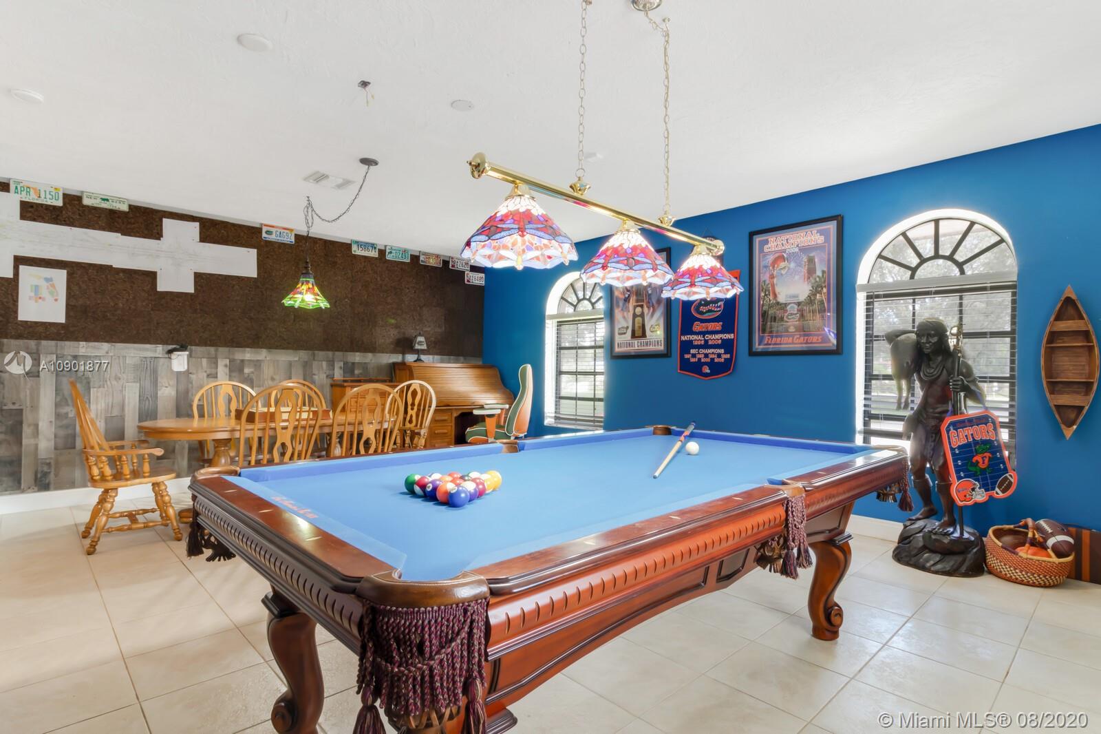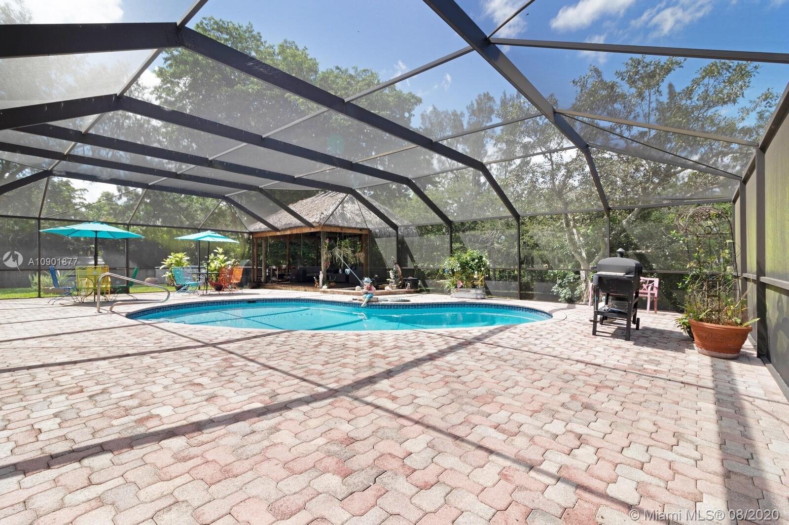 MOTIVATED SELLERS! Remarkable opportunity to own a beautiful, large home set on two acres of gorgeous, mature Oak trees and 450 ft of waterfront!! Homes rarely go on sale in Davie West, so grab this gem now! All bedrooms are over sized, with a beautiful kitchen overlooking the large patio, & family room with bar and fireplace. HUGE game room that could be a 5th bedroom, split floor plan and plentiful storage. Enjoy entertaining outdoors in the huge screened patio, relaxing gazebo, newly resurfaced pool, overlooking water views. Two new A/C units, new tank less water heaters, whole house water filtration, solar & electric pool heater, detached garage with workshop, RV charging outlet, and plenty of parking for vehicles, boats & RV. 3 horses allowed in this wonderful, friendly neighborhood.