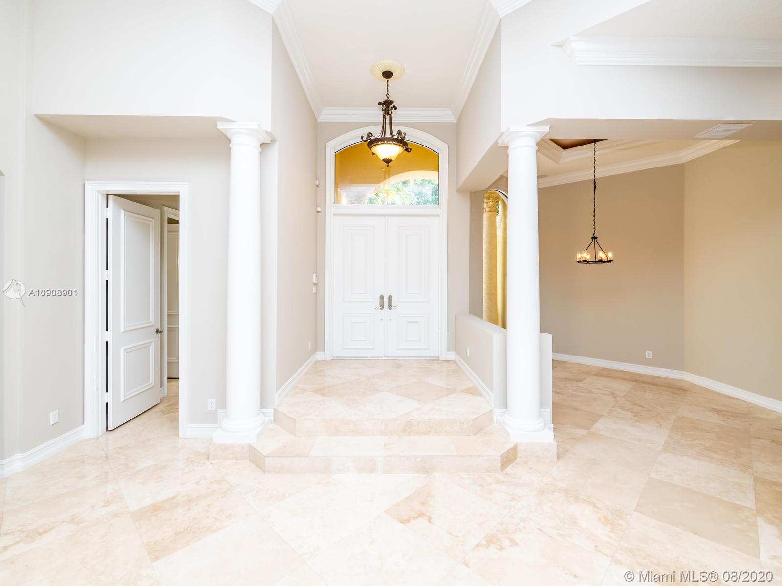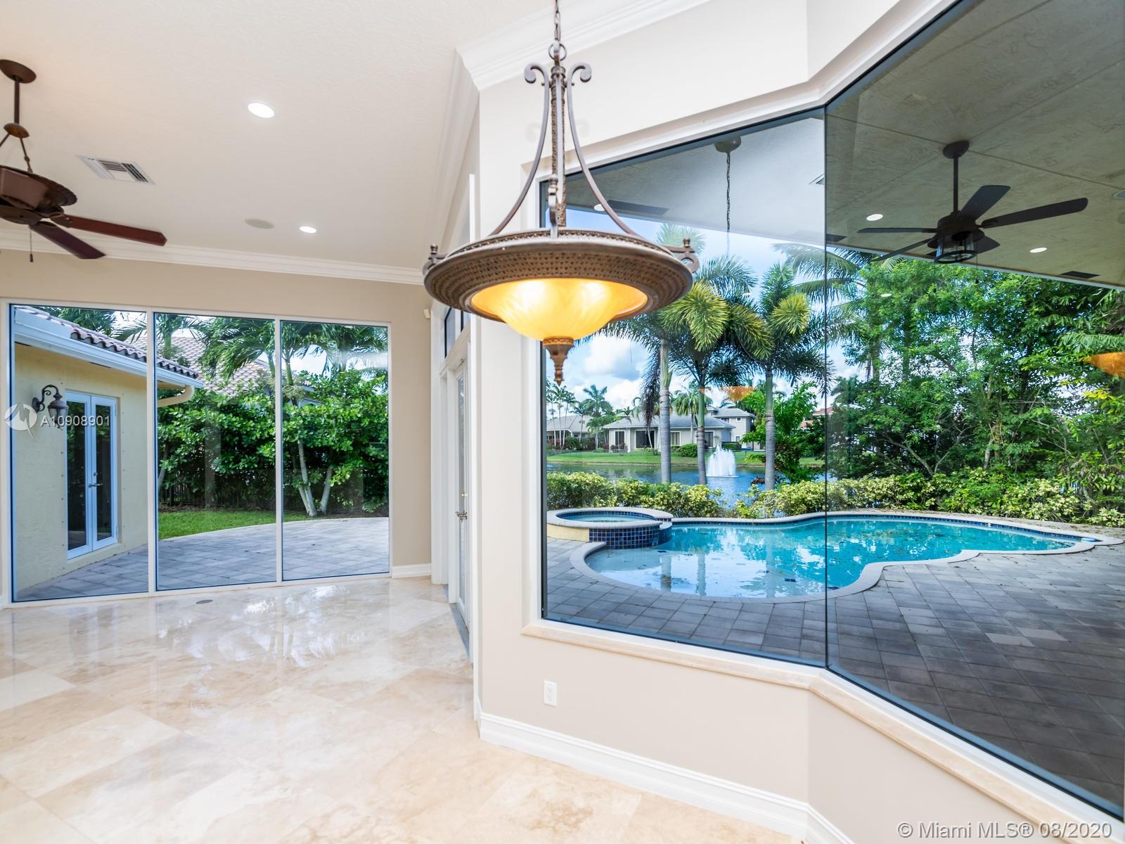 Hawks Landing luxury home for sale. With marble floors throughout the living area and carpet in bedrooms, this 5 bedrooms 4 bathroom plus an office awaits for you. Chef's kitchen with cherry wood cabinets, granite countertops, and center island. Stainless steel appliances, triple split floor plan with serene lake views, central vacuum, large master's suite with sitting area and two walk-in closets, recessed lighting, and surround sound speakers. Two showers in the master bathroom and jacuzzi soaking tub, freshly painted, volume ceiling, crown molding, wall niches, tray ceiling, circular driveway and the list goes on!! Enjoy the resorts style amenities in this 24/7 security guard community.