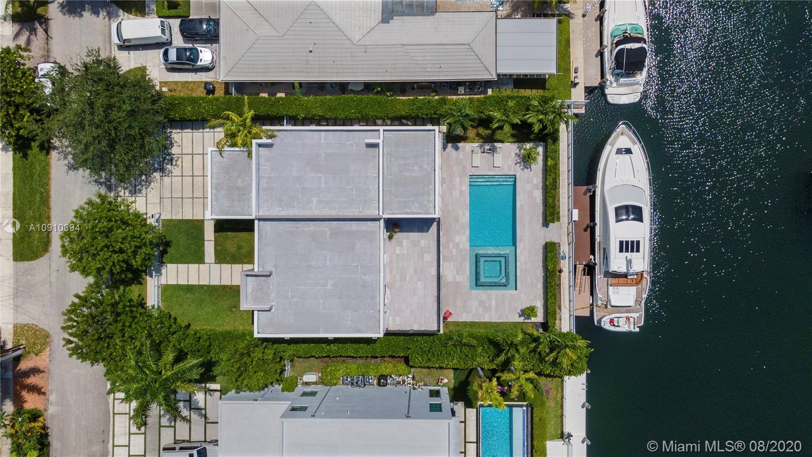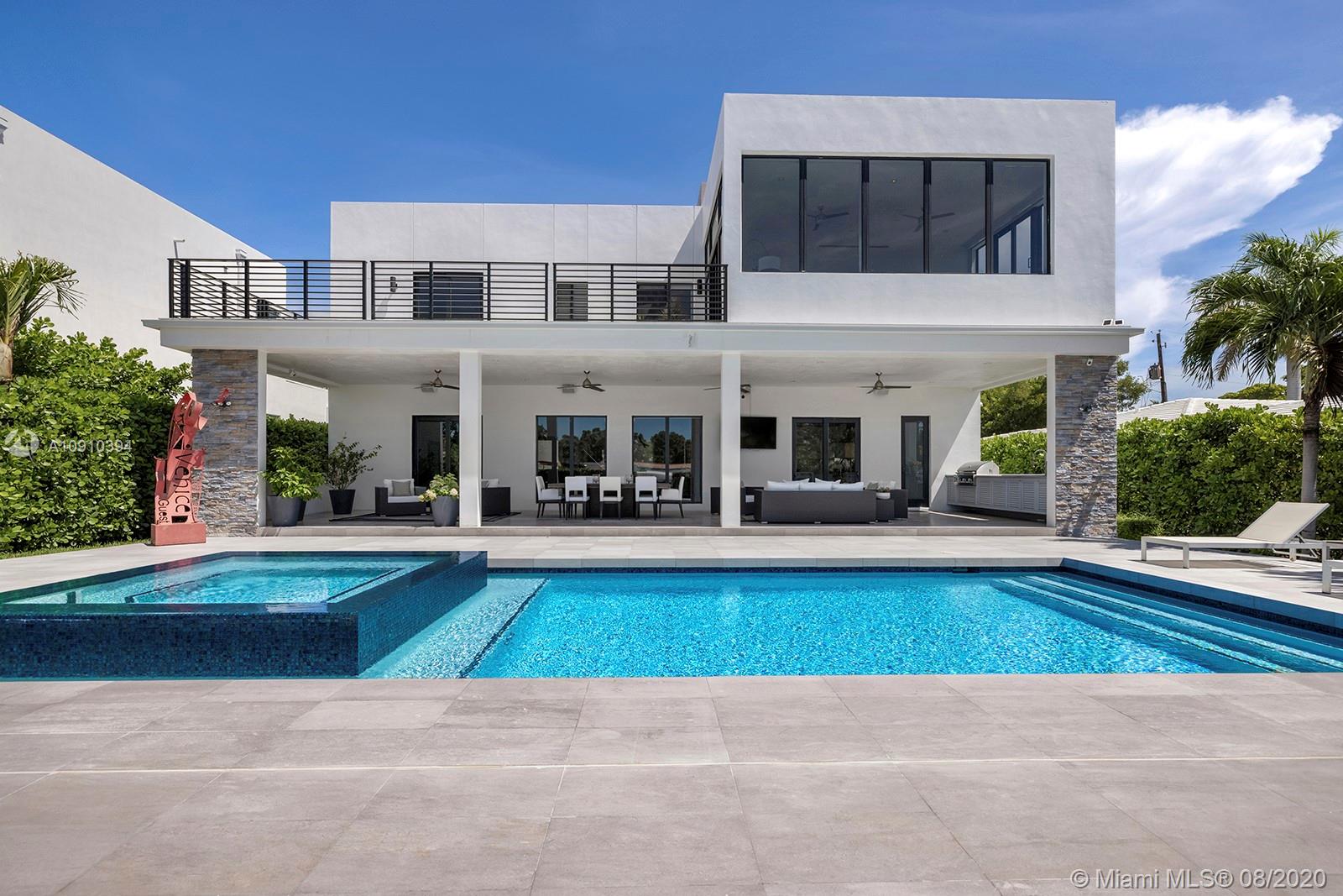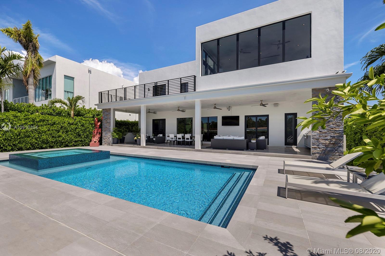 Luxurious modern waterfront residence in private Keystone Community: This gorgeous smart home w/ dramatic 25' ceiling entry, incls 3 en-suite guest bedrooms & an upgraded 1,200SF master suite w/private living room & direct access to a 400SF 2nd floor terrace.The master suite boasts 2 custom walk-in closets & bath finished by Axor incl. dual floating vanities, smart toilets, large soaking tub & walk-in shower. Thoughtfully designed living areas & open kitchen feat. Viking appliances including a professional grade gas range are perfect for family living. This paired w/ the home's heated pool, waterfall spa, 800SF covered summer kitchen & living, makes it prime for entertaining. Situated on 75' of water w/new dock & no bridges to Bay, this property is a boater's delight. 24hr Gated Community