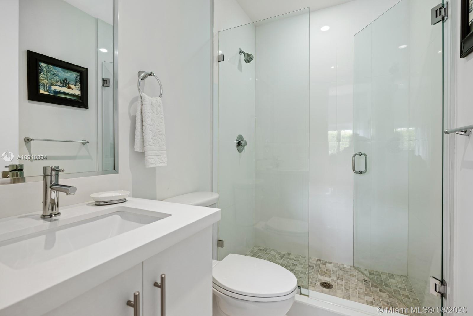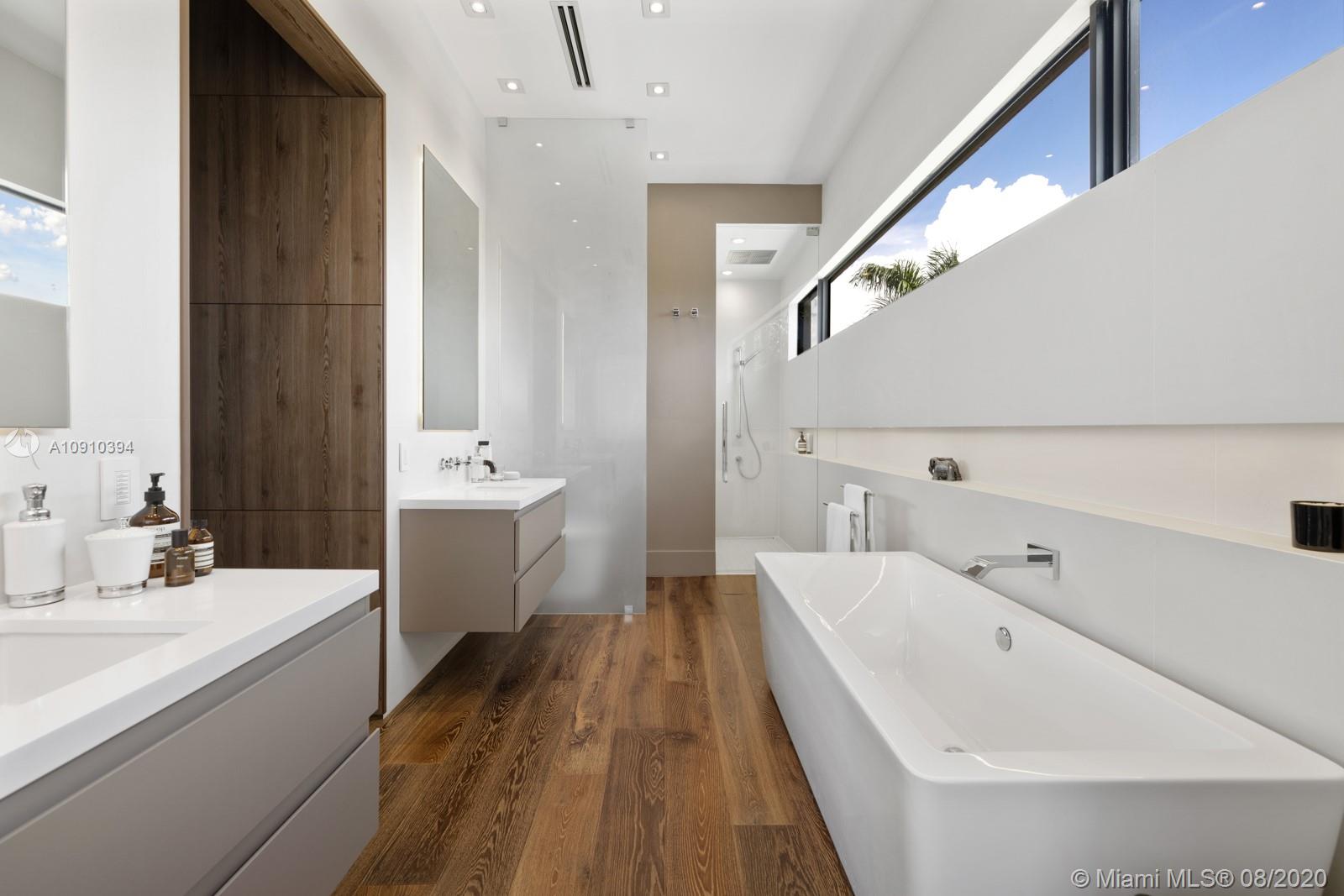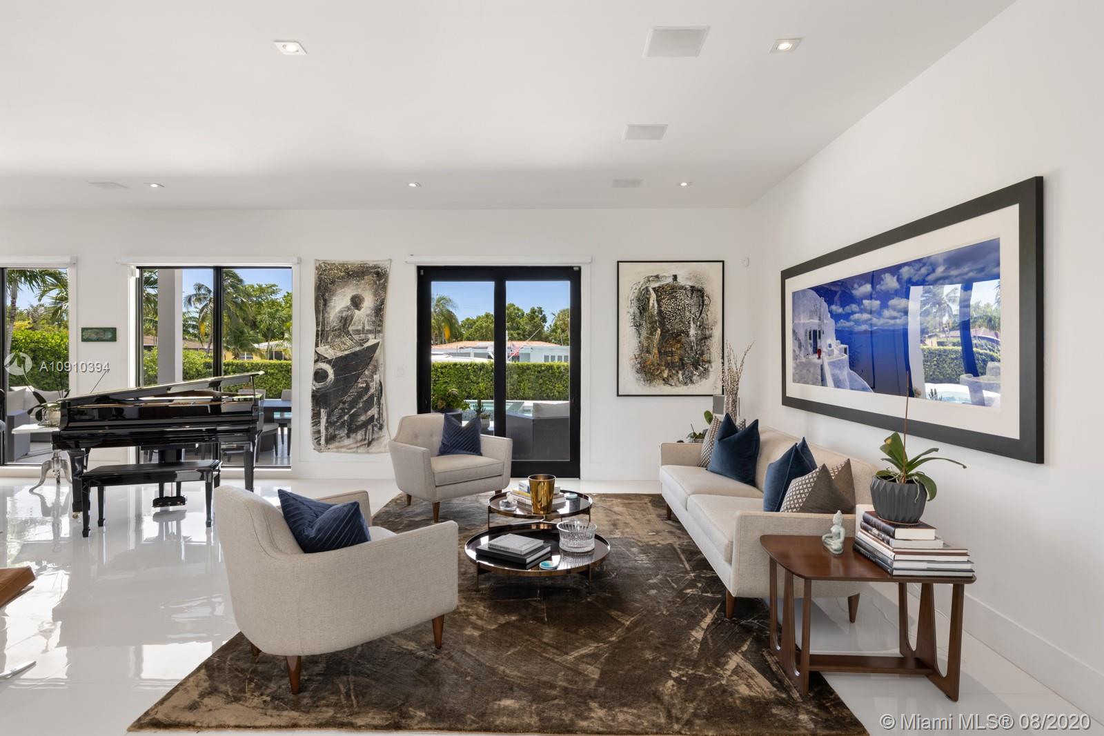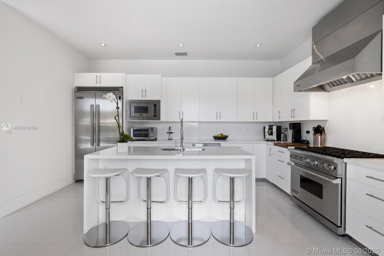 Luxurious modern waterfront residence in private Keystone Community: This gorgeous smart home w/ dramatic 25' ceiling entry, incls 3 en-suite guest bedrooms & an upgraded 1,200SF master suite w/private living room & direct access to a 400SF 2nd floor terrace.The master suite boasts 2 custom walk-in closets & bath finished by Axor incl. dual floating vanities, smart toilets, large soaking tub & walk-in shower. Thoughtfully designed living areas & open kitchen feat. Viking appliances including a professional grade gas range are perfect for family living. This paired w/ the home's heated pool, waterfall spa, 800SF covered summer kitchen & living, makes it prime for entertaining. Situated on 75' of water w/new dock & no bridges to Bay, this property is a boater's delight. 24hr Gated Community