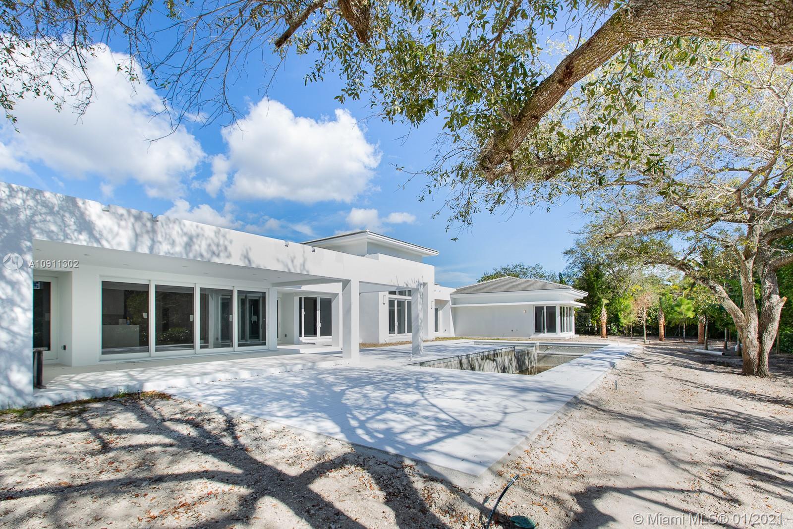 Brand new in Pinecrest. This 6 bedrooms 6 1/2 bathrooms home on an over 35,000 SF corner lot. Walk into 22' high ceilings overlooking the pool. Italian kitchen with Thermador appliances, gas cooktop, water heaters and washer. Italian porcelain tile in all common areas. Wood floors in bedrooms. All en suite bedrooms with walk-in-closets. Master bedrooms has sitting area. His and Hers Closets with large shower and freestanding tub. Glass-encased wine cellar, walk-in kitchen pantry, laundry room, full cabana bath, Trane AC Units. Home has been pre wired for home automation.