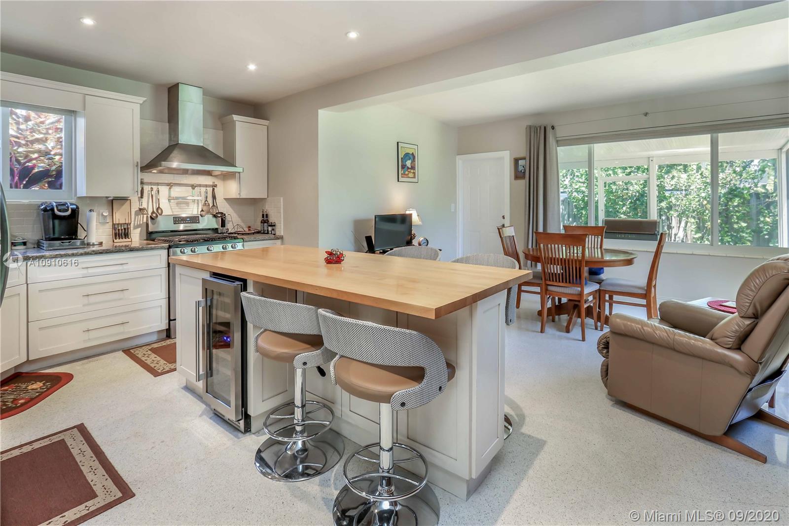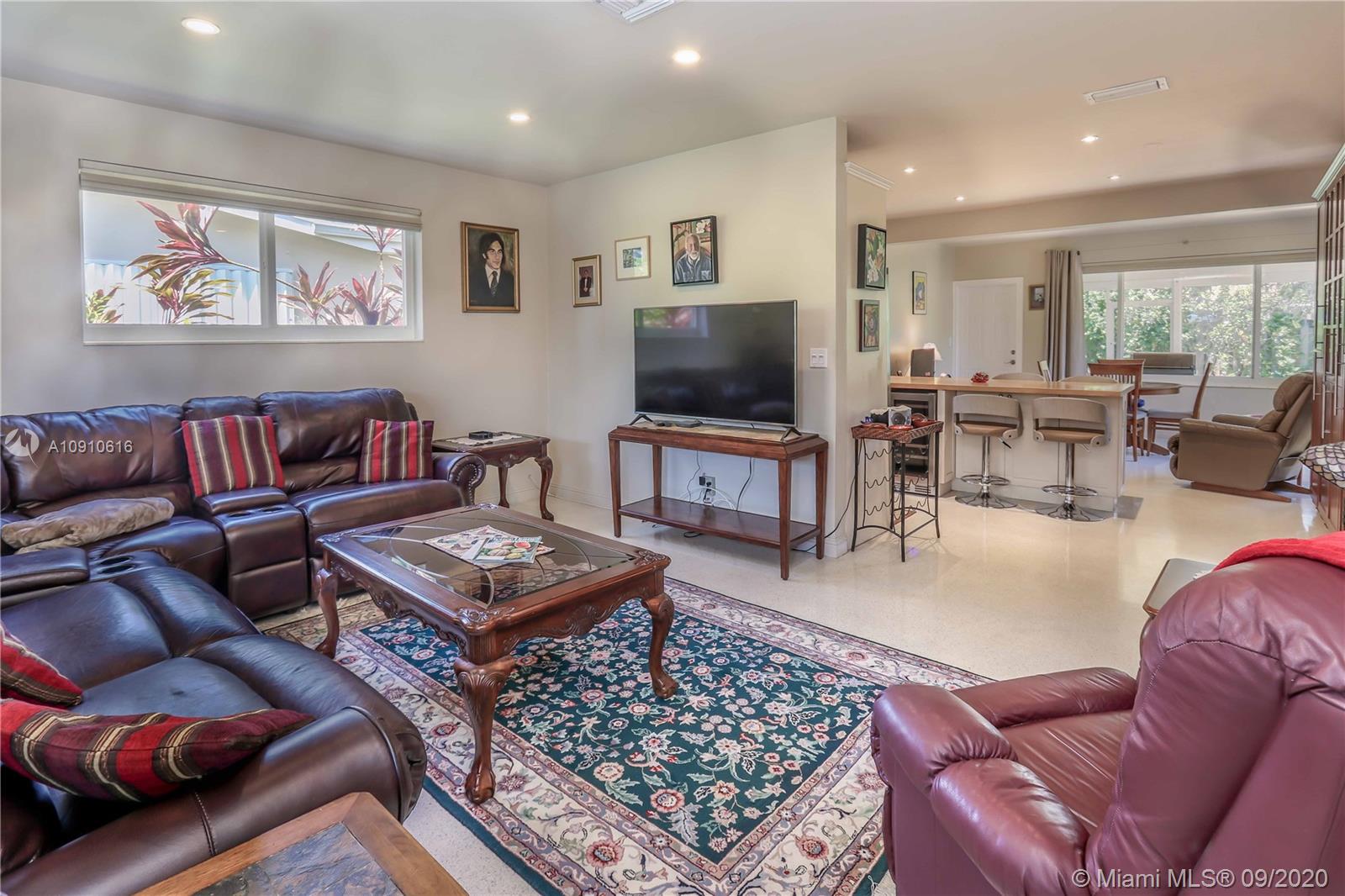 Location Location, Bike or Walk to the Beach! Cozy 3/2 Charmer tucked away, your private little Oasis. This Home comes with a wonderful open layout, nice Terrazzo floors through out. Great open Chefs Kitchen w/over-sized power island, granite counter tops, newer gas stove, refrigerator a wine cooler. Vaulted ceilings, LED recessed lights in living, kitchen & Florida rm. Beautiful screened in Patio where you can listen to the Birds. New Hurricane Impact Windows & Doors, New custom Shades, electronic in living. Utility Room with newer washer/dryer, water heater. Car Port. Fenced in backyard, comes with a solid Shed. Close to Golf, Shopping/Aventura Mall, Casino. Easy access to major Highways and to Airport.