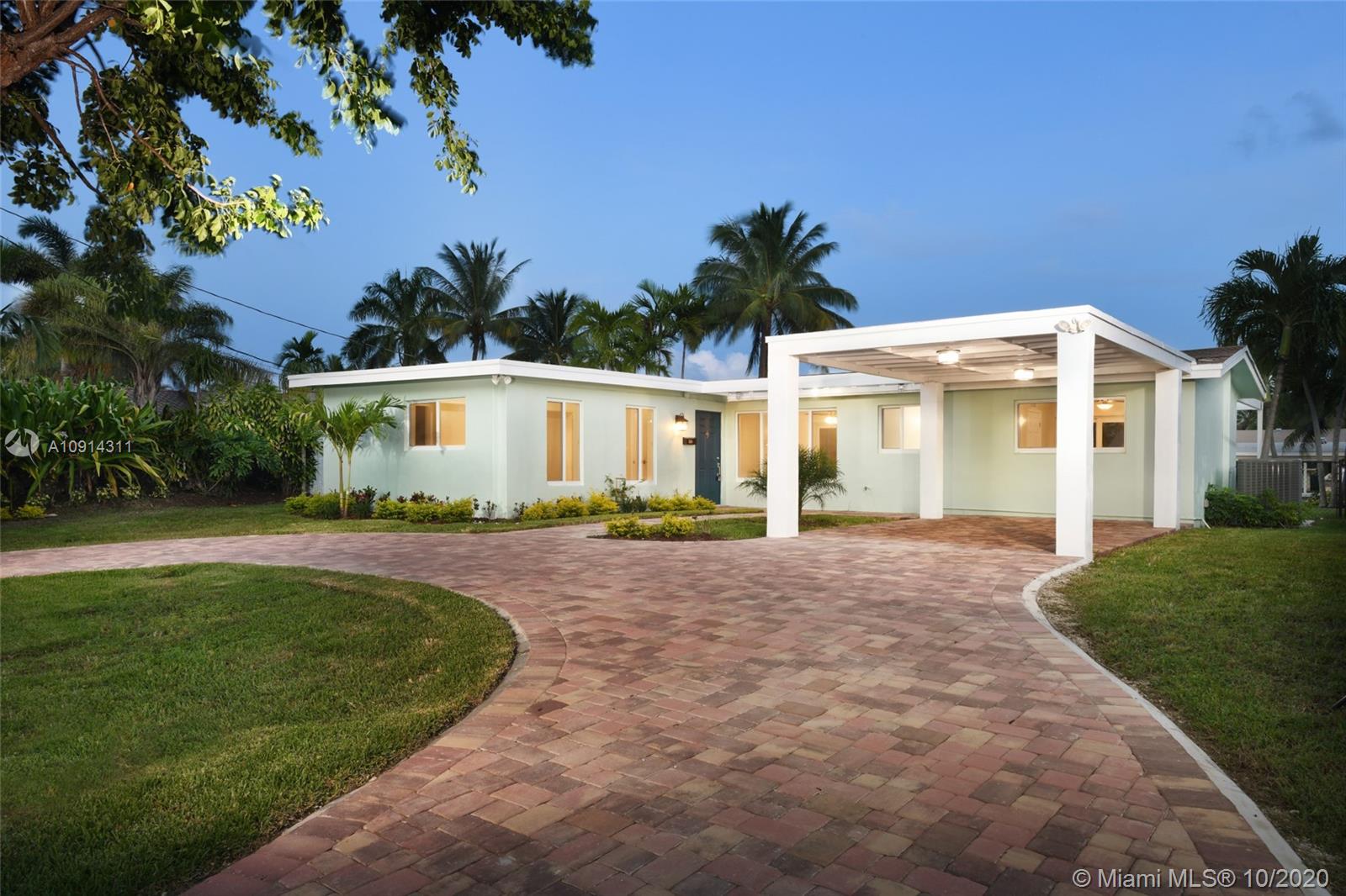 Live on an island! 3/3 completely remodelled split floor plan. New kitchen with stainless steel appliances, quartz counter tops. New baths, new A/C, new electrical, brand new pavers in the driveway and back deck area, new dock with custom lighting throughout. Spacious master bedroom and bath. Impact windows and doors. Lots of natural light. Freshly painted. Unrestricted ocean access. Federal highway bridge only minutes away. Survey available.