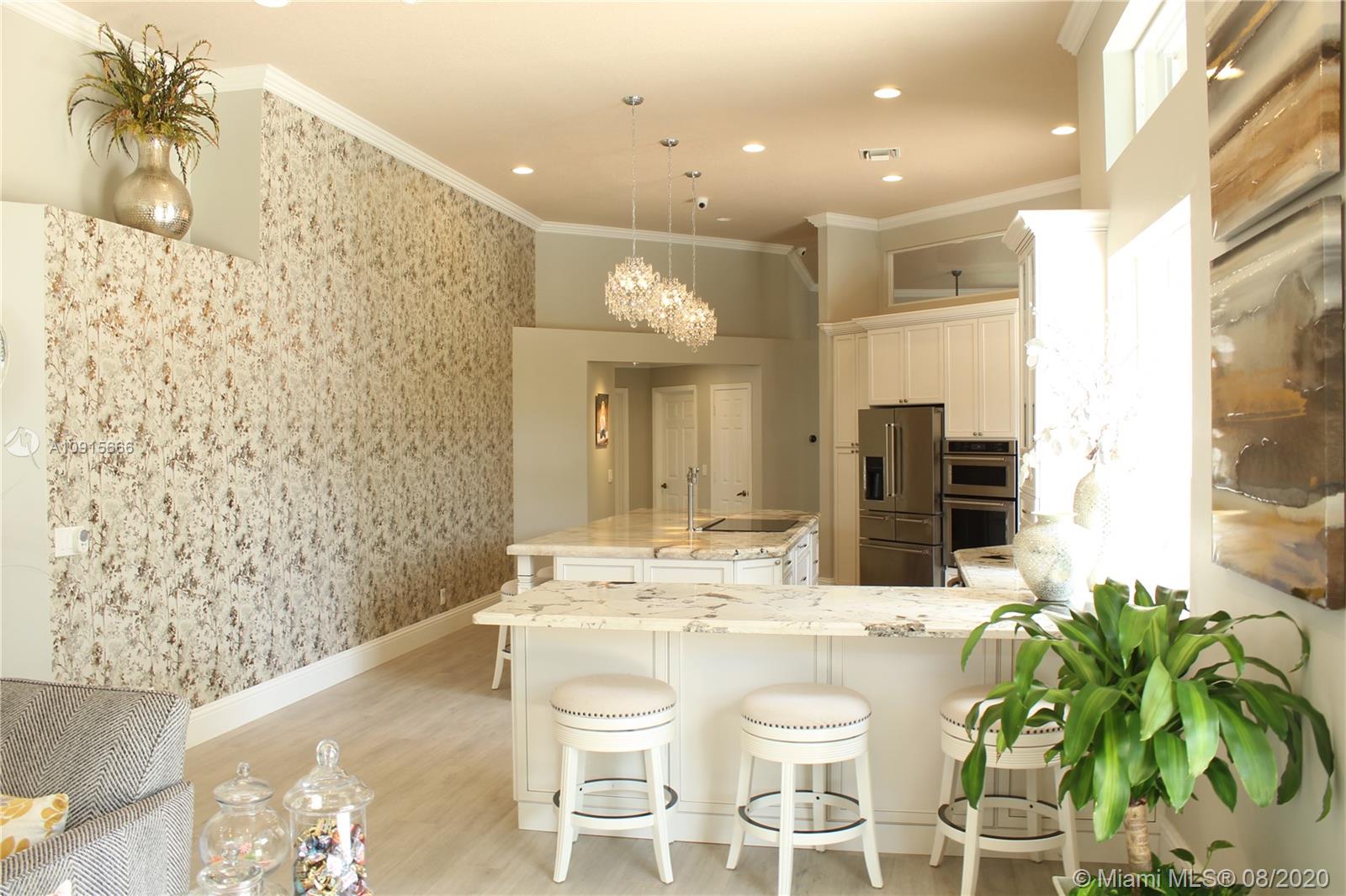 Beautiful home in sought after Fox Run! Spacious 5 bedroom/3 bath three-split floor plan with tons of natural light and over $150K in upgrades made within the last 2 years. Dream gourmet kitchen with top of the line appliances including state of the art induction stove, top designer see-through natural stone counters, oversized island and beautiful pendant chandeliers. Designer Italian tile floors throughout. Newly installed antibacterial air purifying system in HVAC. Twelve camera security system. Large lot with mature fruit trees (guava, sweetsop, orange, lime, banana, plantain, Hass and Catalina avocado). Renovated swimming pool with lighted water features and french pattern travertine deck. Lush privacy hedges along side fence and back garden wall. Accordion shutters.