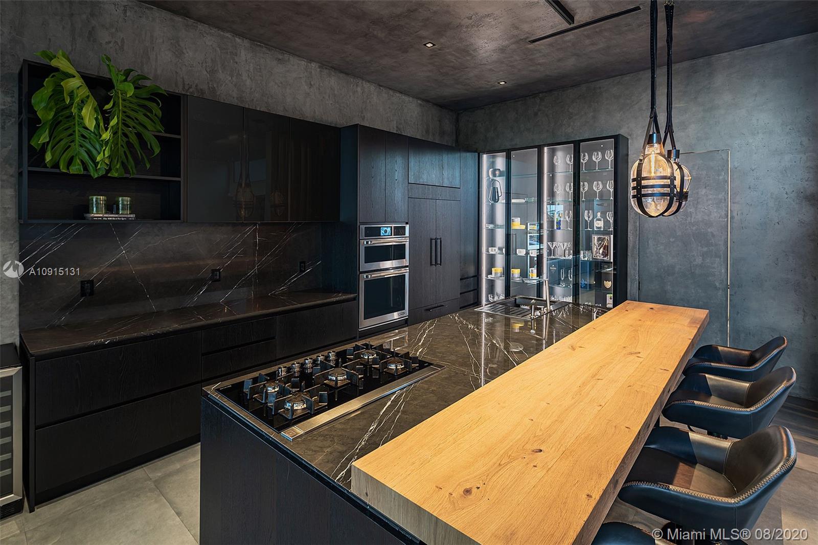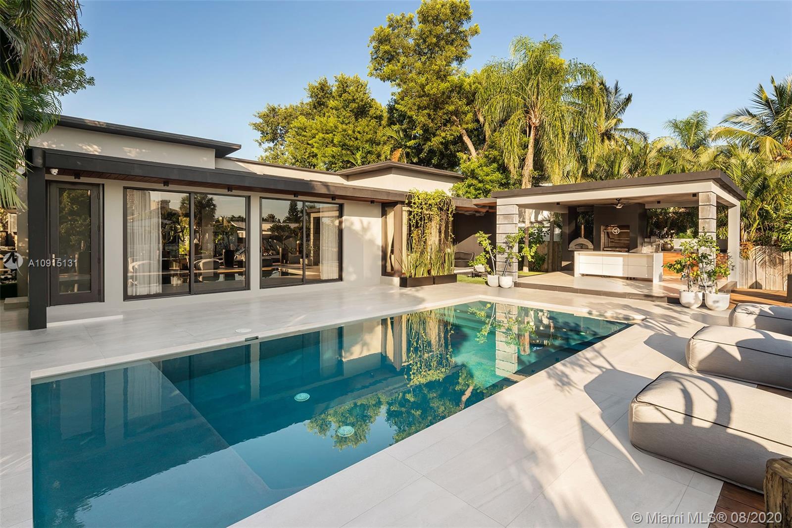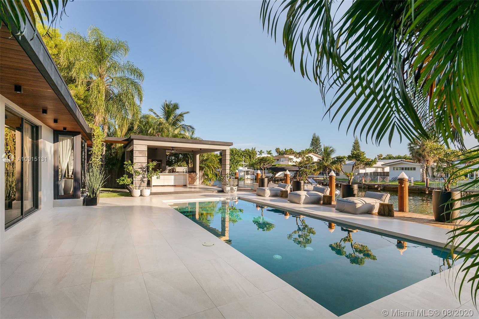 Black is always the new black! Above average, impeccable finishes, powerful vibes! Find yourself in the private community of San Souci Estates, couple of minutes away from Bal Harbour. Delightful split floor plan for this waterfront one-story home with 12 ft. ceilings. Completely renovated in 2018, this home offers new Italian custom-made kitchen with gas appliances, costume made closets, salt water pool, new roof, pluming, electrical, mosquito system, and unique use of stone and microcement throughout. Backyard easily enjoyable and ready to entertain with pizza oven, Chinese wok, commercial BBQ grill, and outside kitchen. Enjoy the best sunsets Miami has to offer. 75 ft on the water with brand new dock. Words are not enough to describe this STATEMENT! NO HOA!