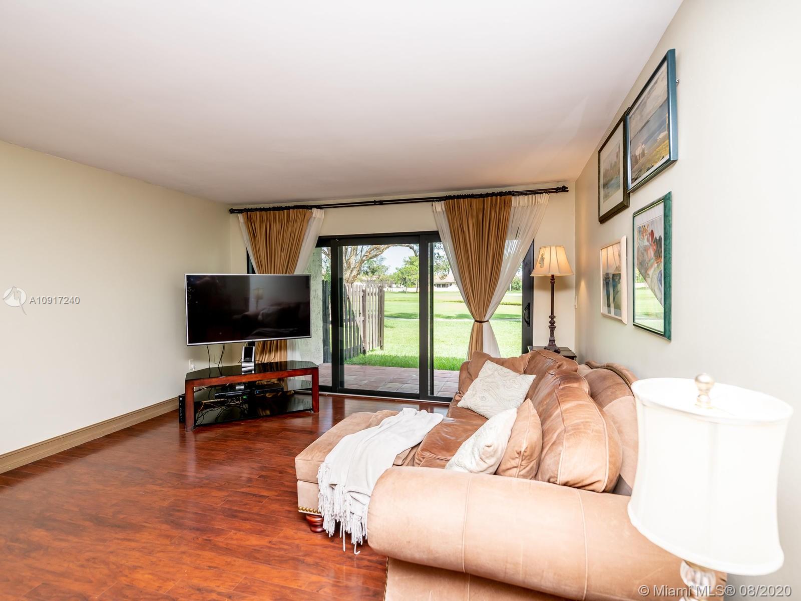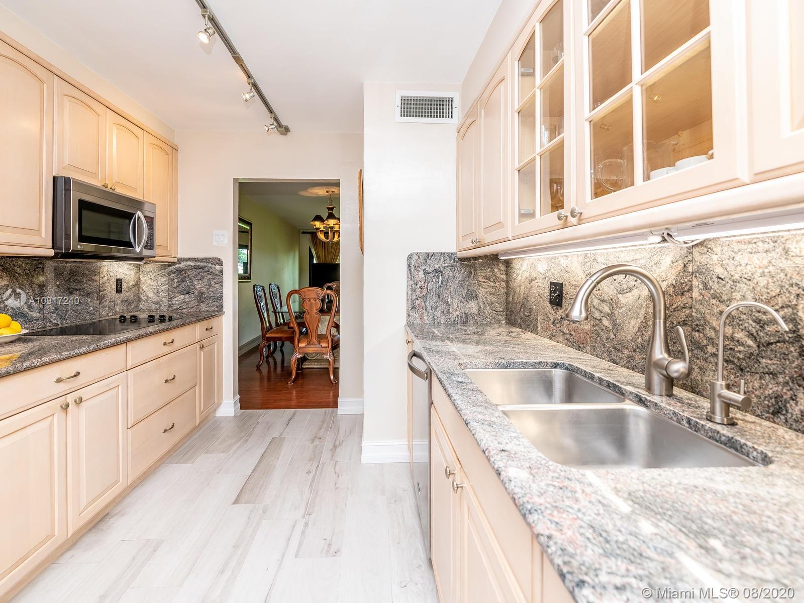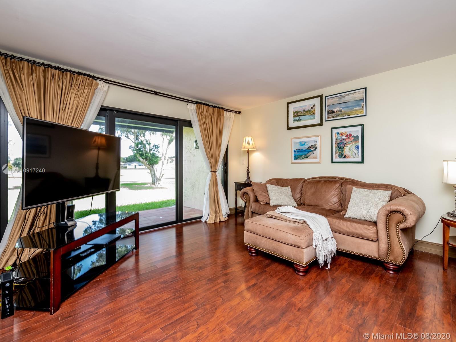 Stunning Golfcourse view! Walk into your new home thru the new decorative aluminum entry gate...Into beautiful travertine courtyard & lighted landscaped area plus a built in Fresco grill!Hurricane impact windows and doors including accordians!!The roof is poured concrete,there is a 2 car garage! Chamberlain garage remotes will open from your cell phone & turn on security lights!! Interior floors are engineered wood & kitchen is the tile wood look...Kitchen updated with wood cabinets,granite counters&backsplash, stainless appliances and bonus matching bakers rack! Both bathrooms highly upgraded featuring travertine,marble,and Graff and Groehe fixtures! Zoned A/C's with Germicidal UV lights!Custom window treatments,smooth ceilings,(no popcorn!)Solid wood doors thru out and new bifold doors.