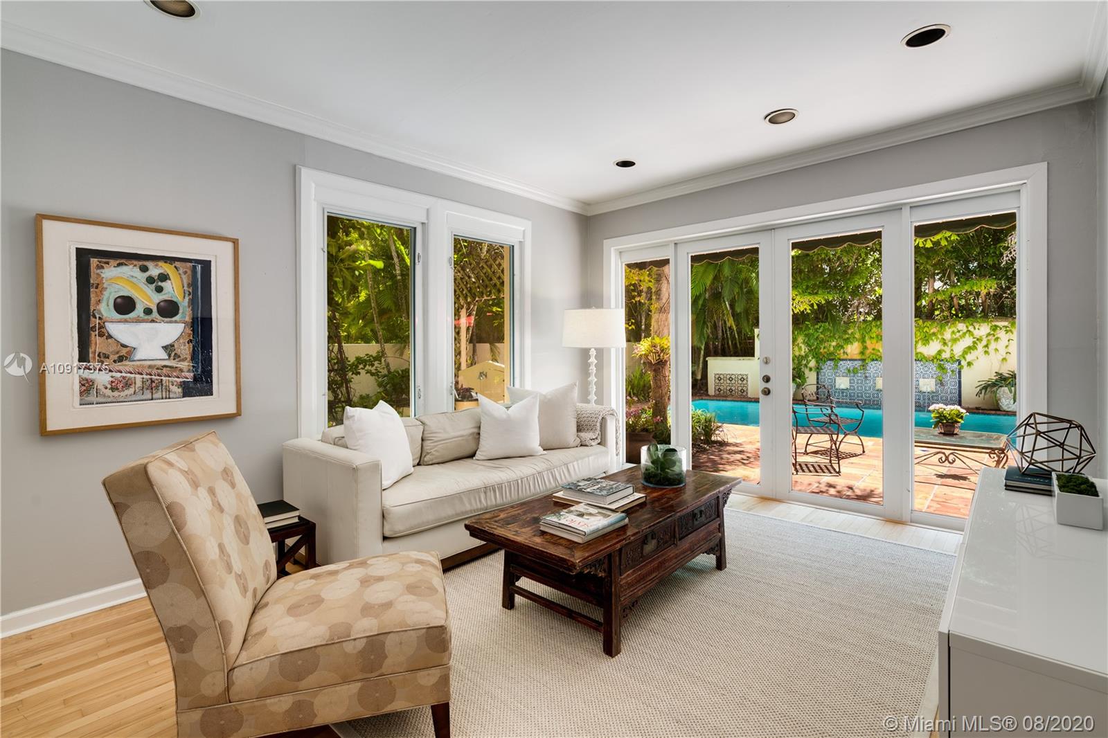 Classic beauty reverberates from every corner of this 1926 Mediterranean home in the coveted section of South Coconut Grove. Enter through the gates to the Chicago brick driveway and luxuriate in the lush landscaping, lovingly planted by a master gardener. The charming and authentic living room welcomes with arched windows, fireplace, and original hardwood floors. The versatile 4-bedroom layout also includes a den and a bonus room which works perfectly as a playroom or at-home-learning space. The generous second floor main bedroom includes a fireplace and deck overlooking the pool which is a veritable Garden of Eden, adorned with a mosaic-tile fountain. Updates include new plumbing. This stunning property is part of the Utopia HOA. A Very Special Home.