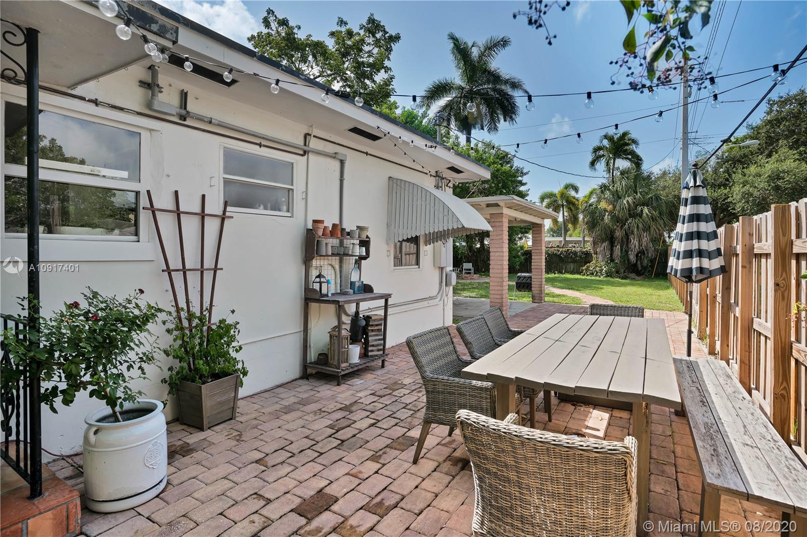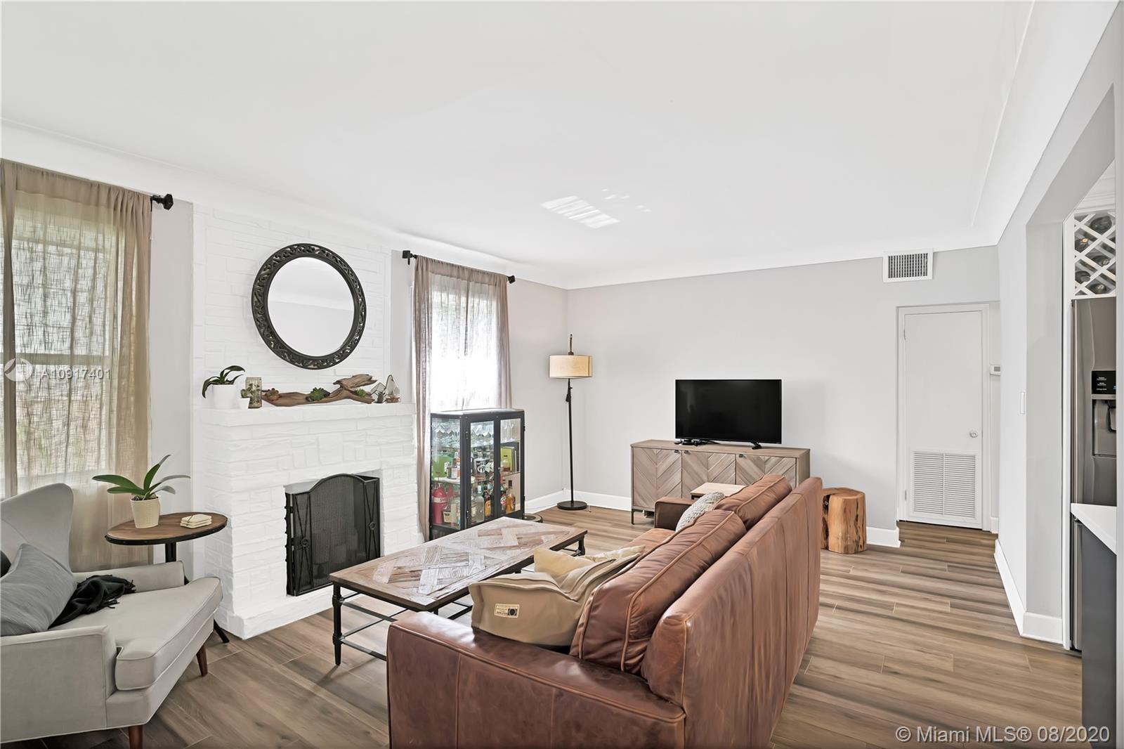 The total interior renovation of this old Florida home was done with style and taste! The open floor plan shows off new ceramic "wood" floors, crown molding, a decorative fireplace, and a spectacular chef's dream kitchen. Anchored by an oversized slate blue island with gleaming white quartz countertop and brass hardware, the kitchen features a 5-burner gas oven, French Door refrigerator/freezer, wine cooler fridge, open shelving, soft close drawers, glass front cabinets, and recessed lighting. The master bedroom features a uniquely designed huge walk-in closet. A/C system from 2016. Tank-less gas water heater. The large newly fenced corner lot is enhanced by a private interlock brick patio by the kitchen door as well as a charming circular patio with fire pit. Gated access to carport.