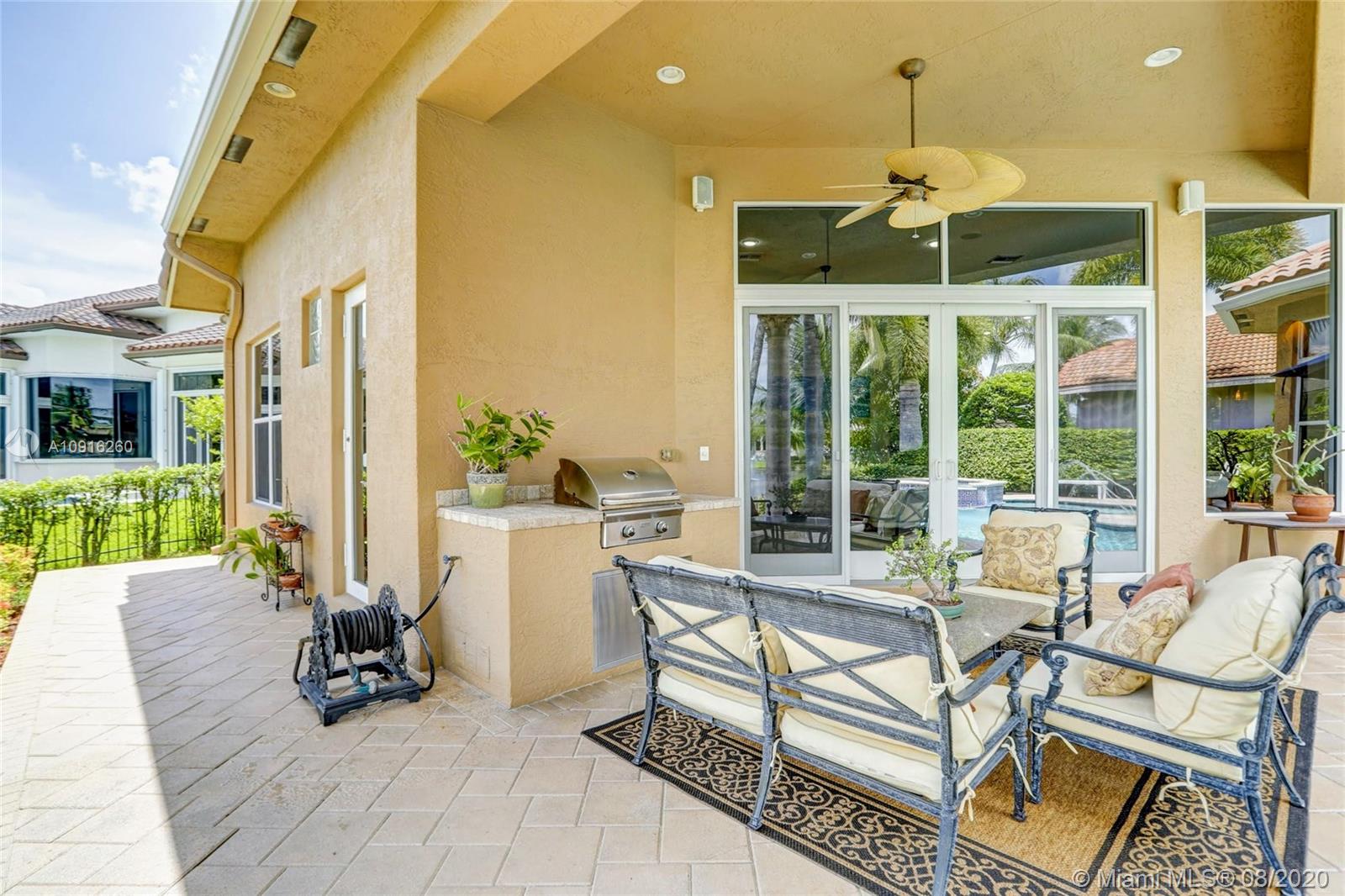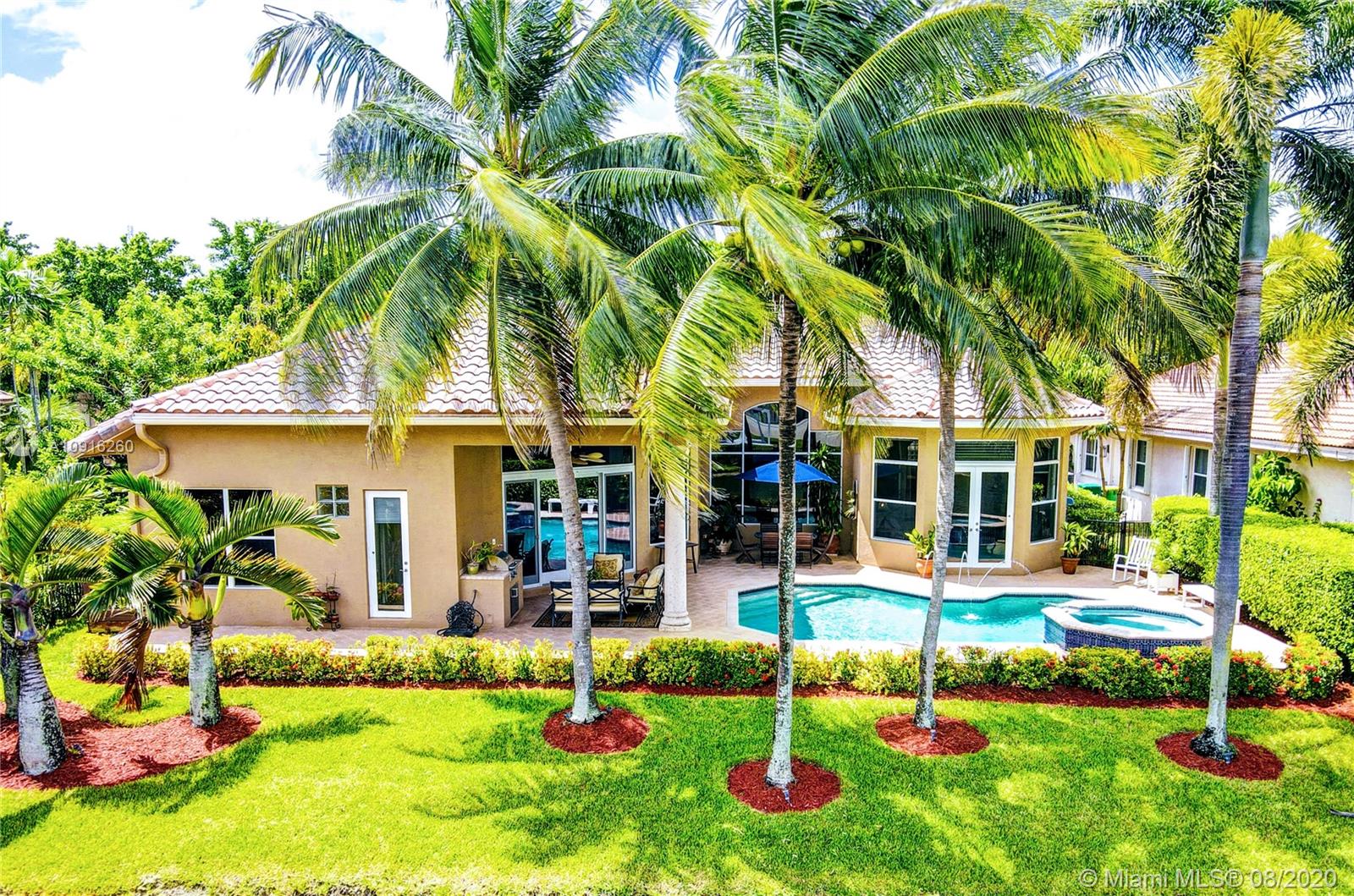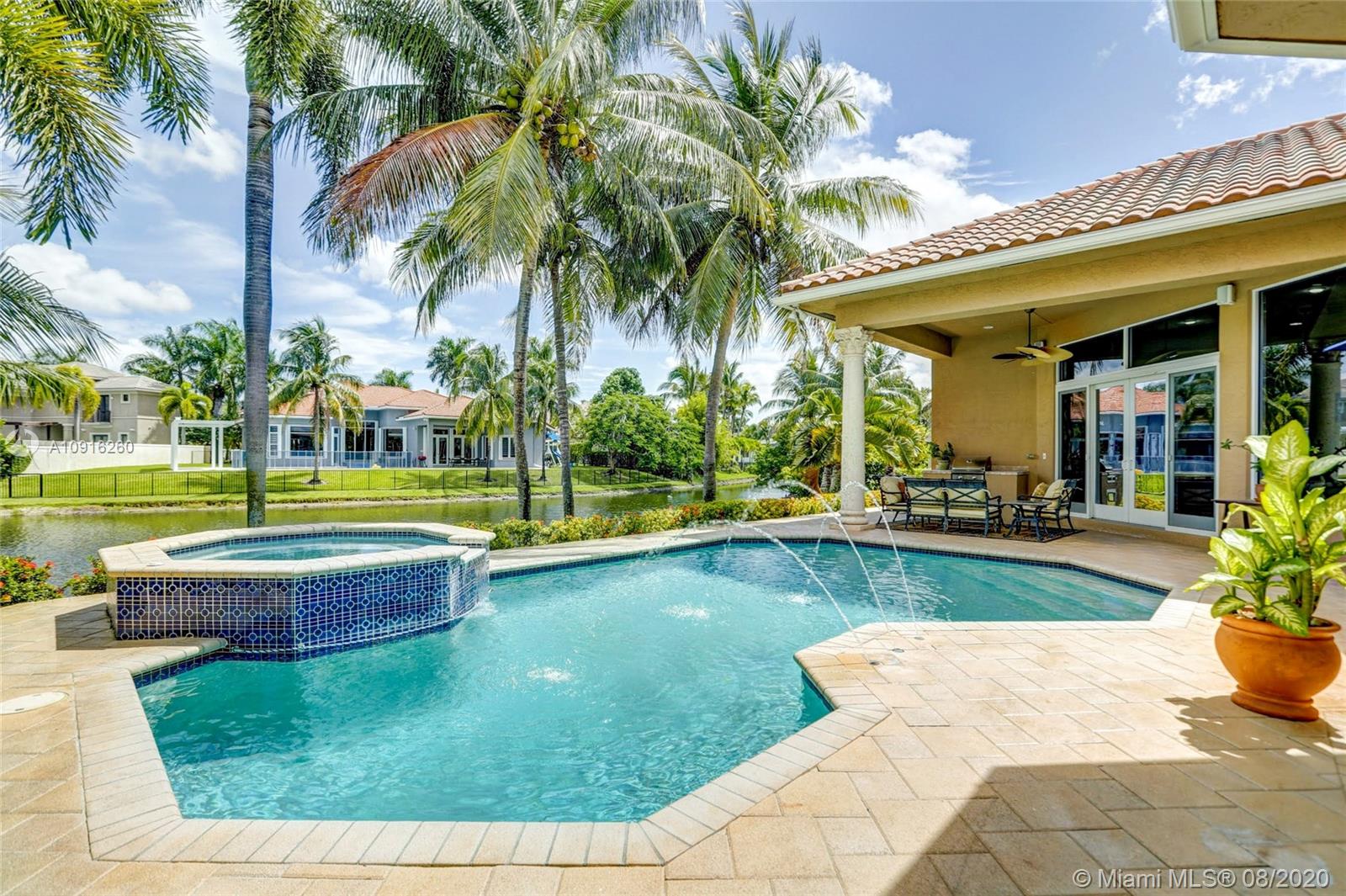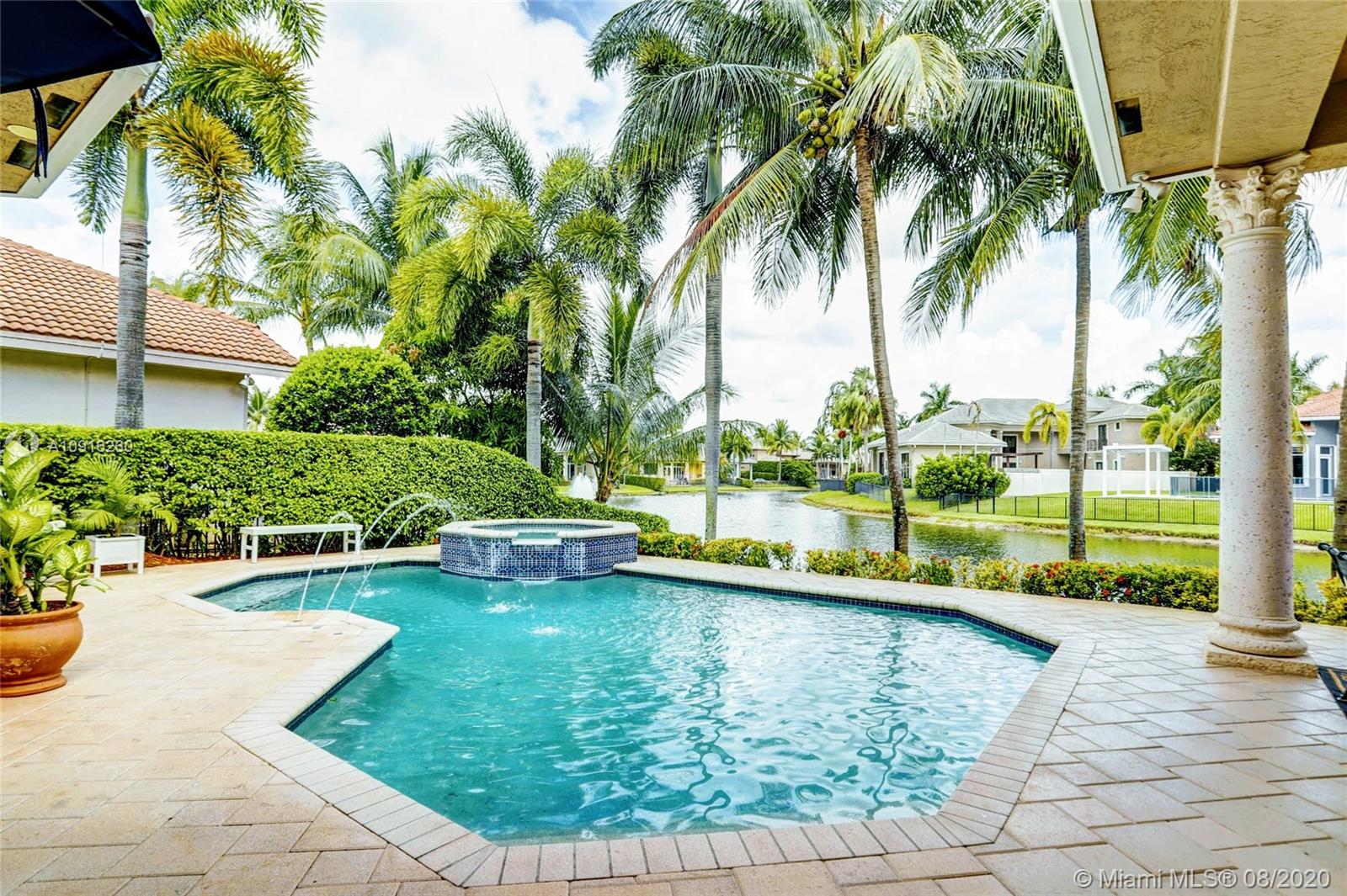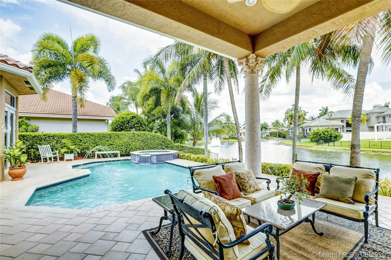 Immaculately maintained one-story home w/4 bed /3 bath+office, circular driveway, split floor plan, large Master's suite w/ sitting area, two walk-in closets, 15 ft ceiling, crown molding.*Amazing open lake view w/fountain, built-in barbecue perfect for entertaining, heated pool and spa and beautifully landscaped. 24” Travertine flooring in main areas & baths, hardwood floors in Master* Spacious open kitchen w/high-end wood cabinetry, built-in refrigerator, stainless steel appliances, granite counter tops, center island, central vacuum, custom built closets. *2 a/c units replaced in 2018, recently painted exterior/interior, recently refinished floors. Exclusive Clubhouse & Spa, a resort style pool, playground, fitness center, basket/volleyball, several tennis courts, 24/7 security.