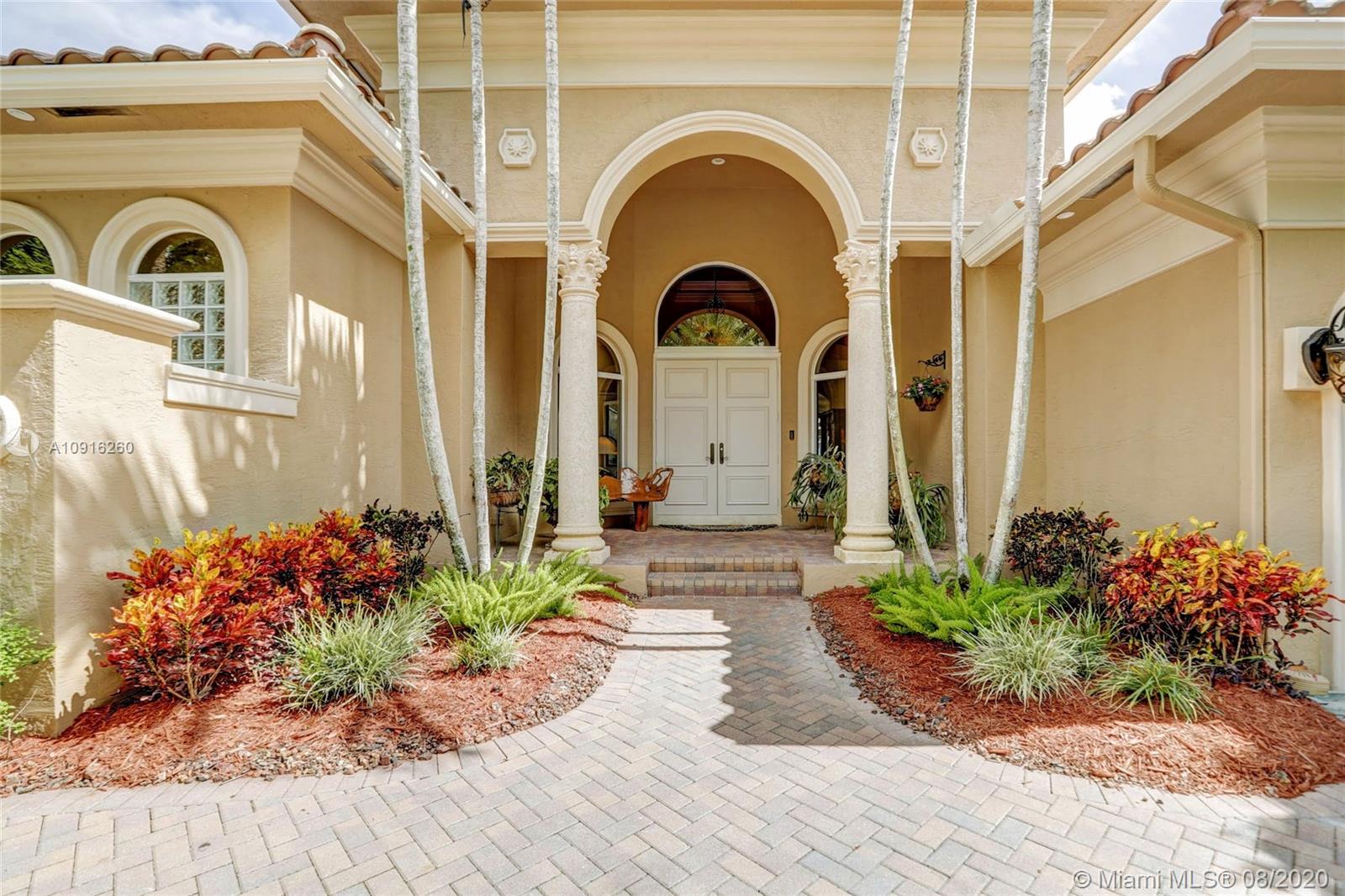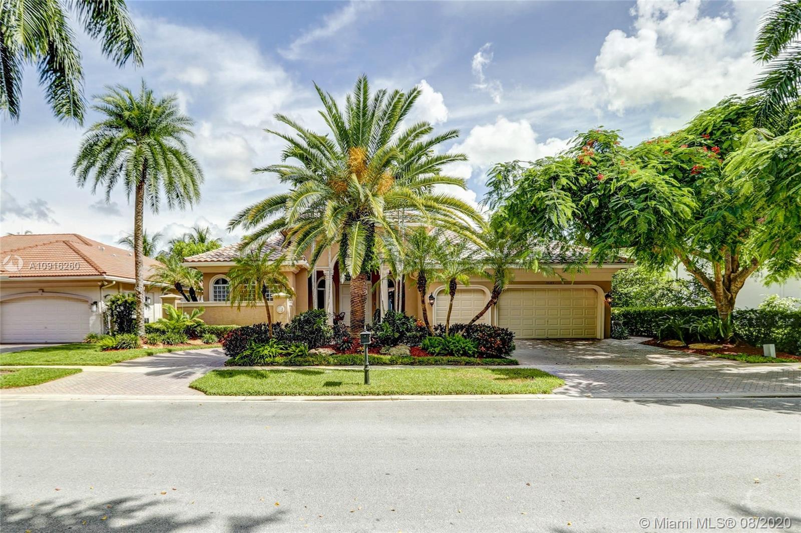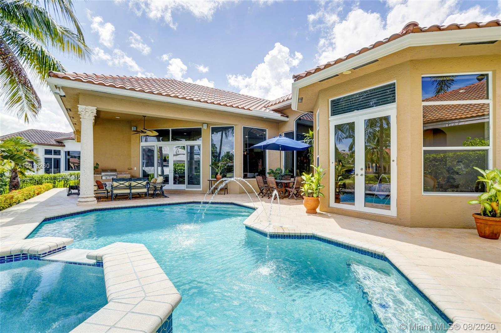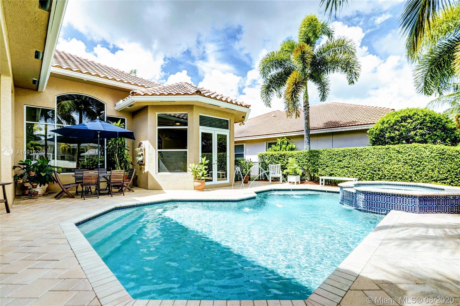 Immaculately maintained one-story home w/4 bed /3 bath+office, circular driveway, split floor plan, large Master's suite w/ sitting area, two walk-in closets, 15 ft ceiling, crown molding.*Amazing open lake view w/fountain, built-in barbecue perfect for entertaining, heated pool and spa and beautifully landscaped. 24” Travertine flooring in main areas & baths, hardwood floors in Master* Spacious open kitchen w/high-end wood cabinetry, built-in refrigerator, stainless steel appliances, granite counter tops, center island, central vacuum, custom built closets. *2 a/c units replaced in 2018, recently painted exterior/interior, recently refinished floors. Exclusive Clubhouse & Spa, a resort style pool, playground, fitness center, basket/volleyball, several tennis courts, 24/7 security.