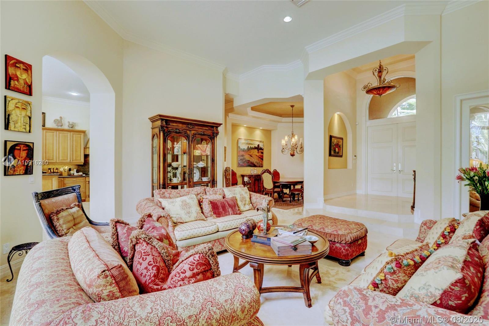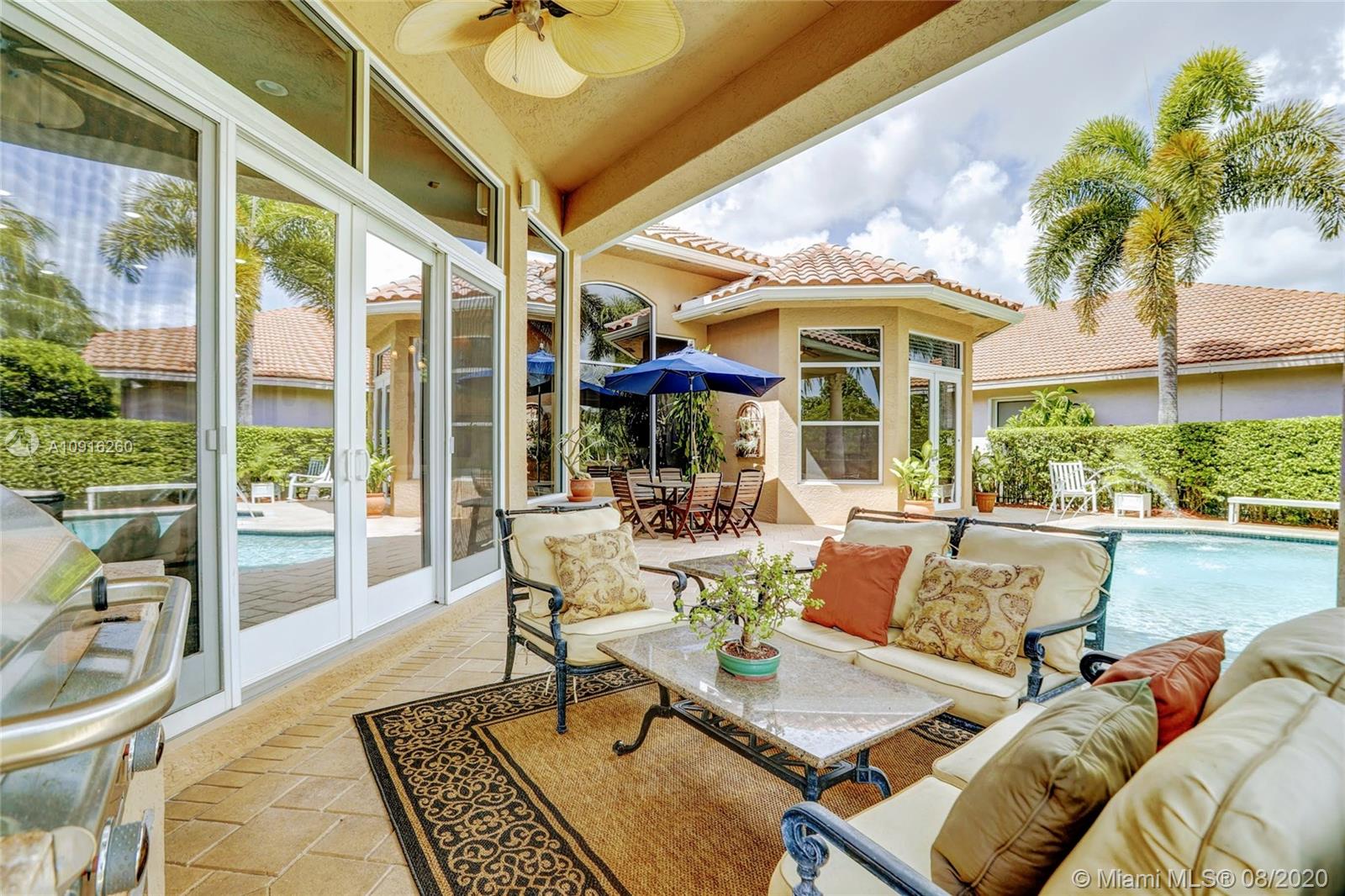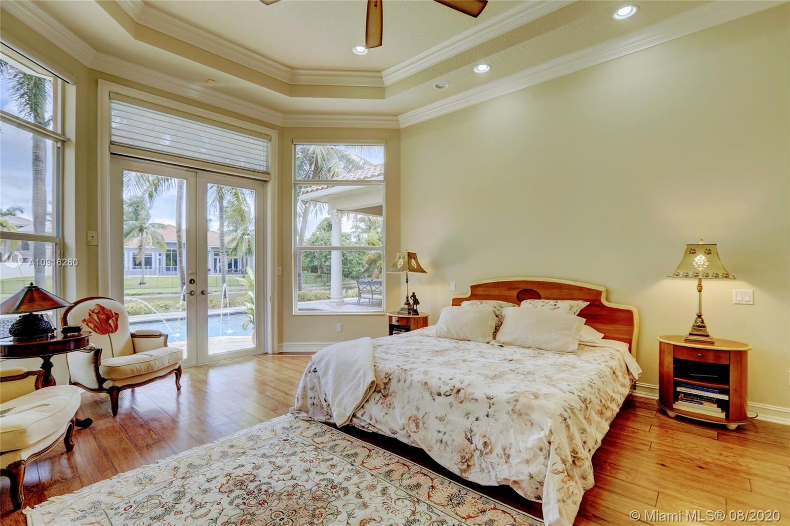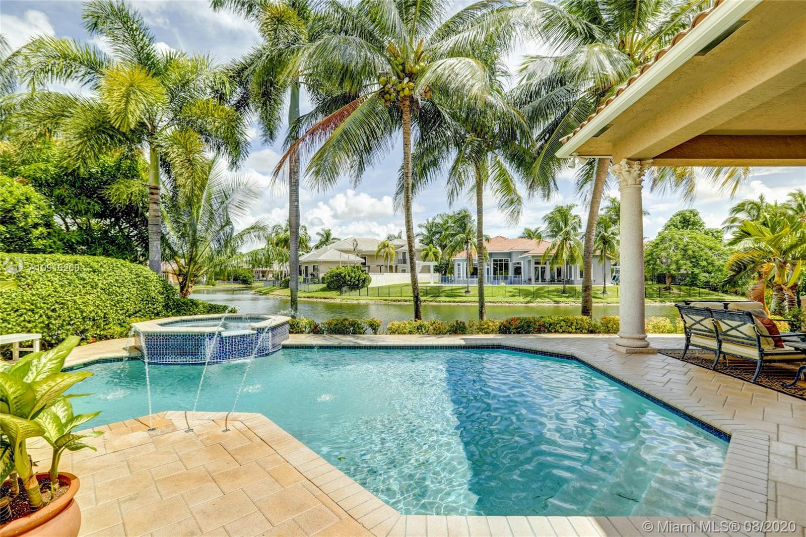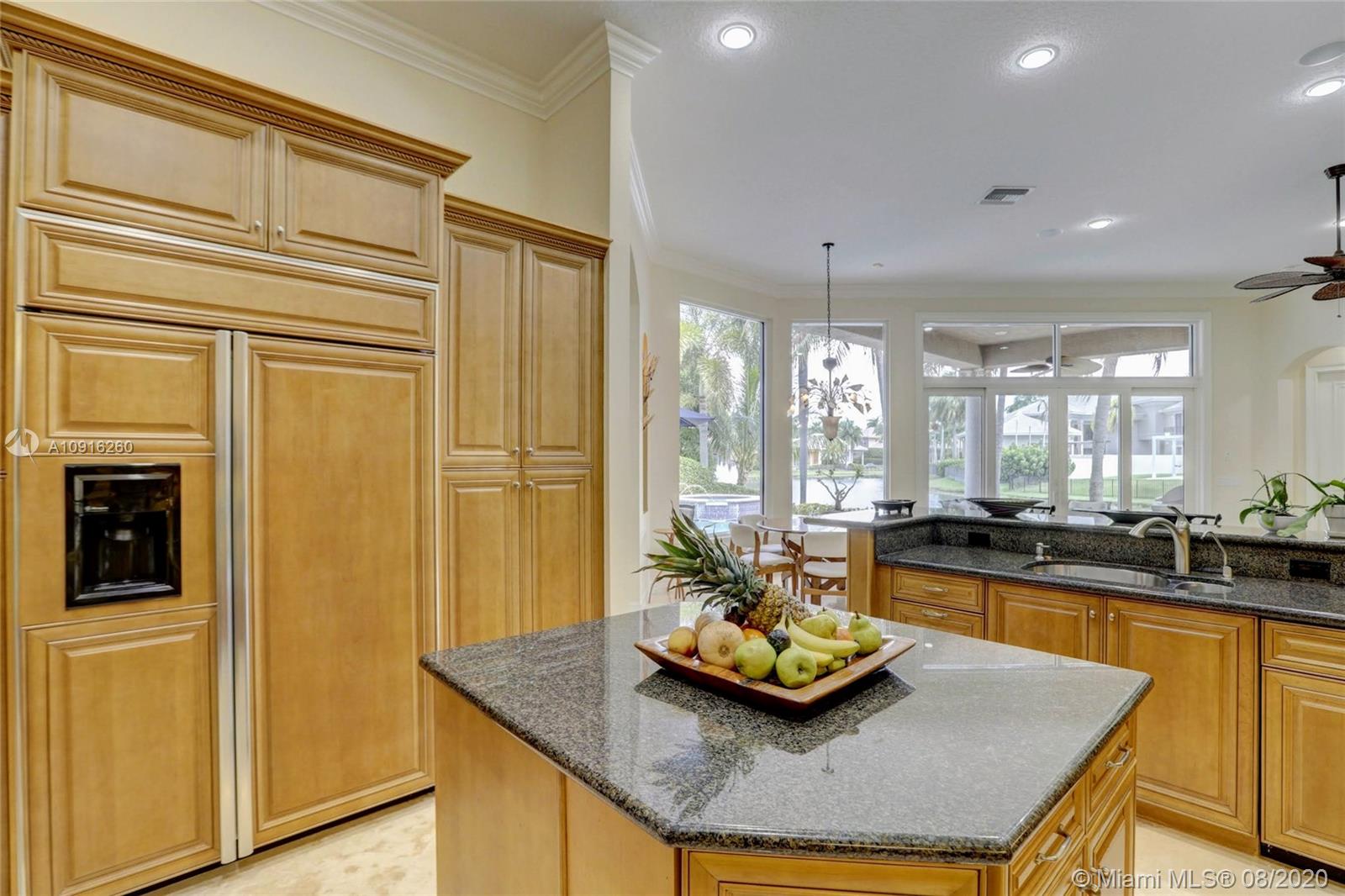 Immaculately maintained one-story home w/4 bed /3 bath+office, circular driveway, split floor plan, large Master's suite w/ sitting area, two walk-in closets, 15 ft ceiling, crown molding.*Amazing open lake view w/fountain, built-in barbecue perfect for entertaining, heated pool and spa and beautifully landscaped. 24” Travertine flooring in main areas & baths, hardwood floors in Master* Spacious open kitchen w/high-end wood cabinetry, built-in refrigerator, stainless steel appliances, granite counter tops, center island, central vacuum, custom built closets. *2 a/c units replaced in 2018, recently painted exterior/interior, recently refinished floors. Exclusive Clubhouse & Spa, a resort style pool, playground, fitness center, basket/volleyball, several tennis courts, 24/7 security.