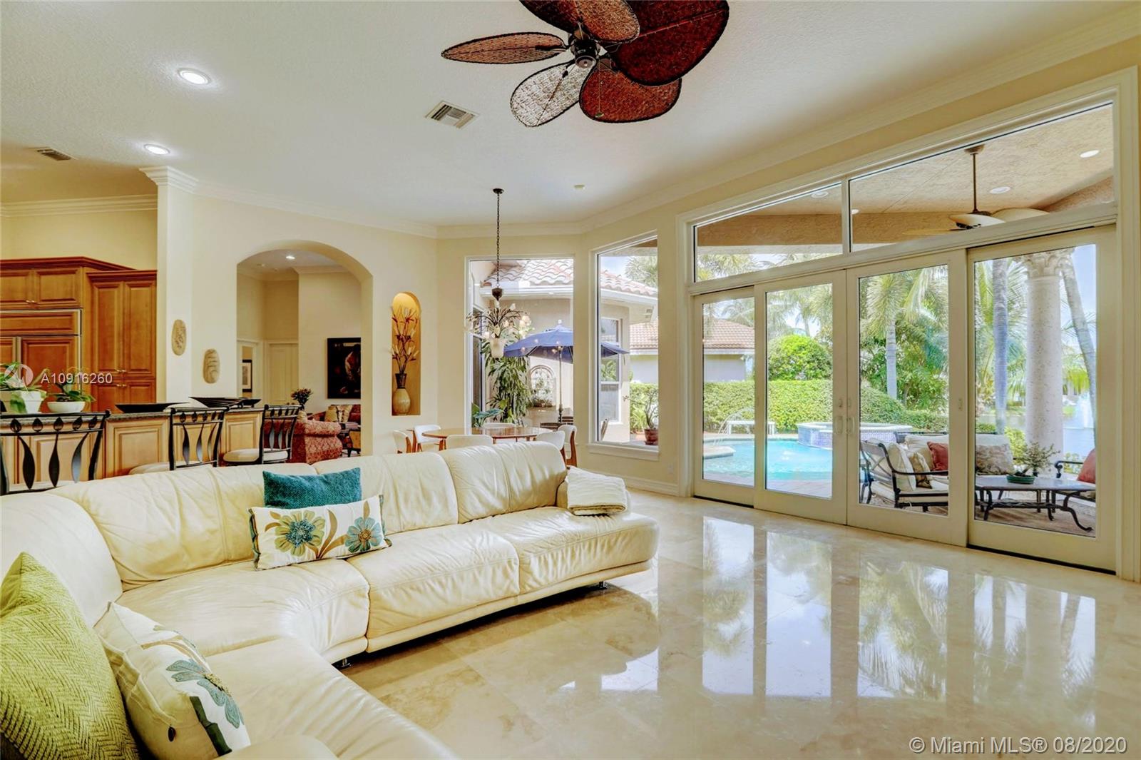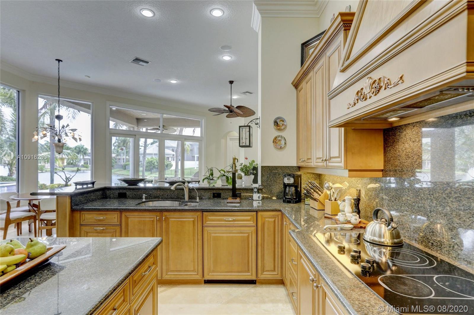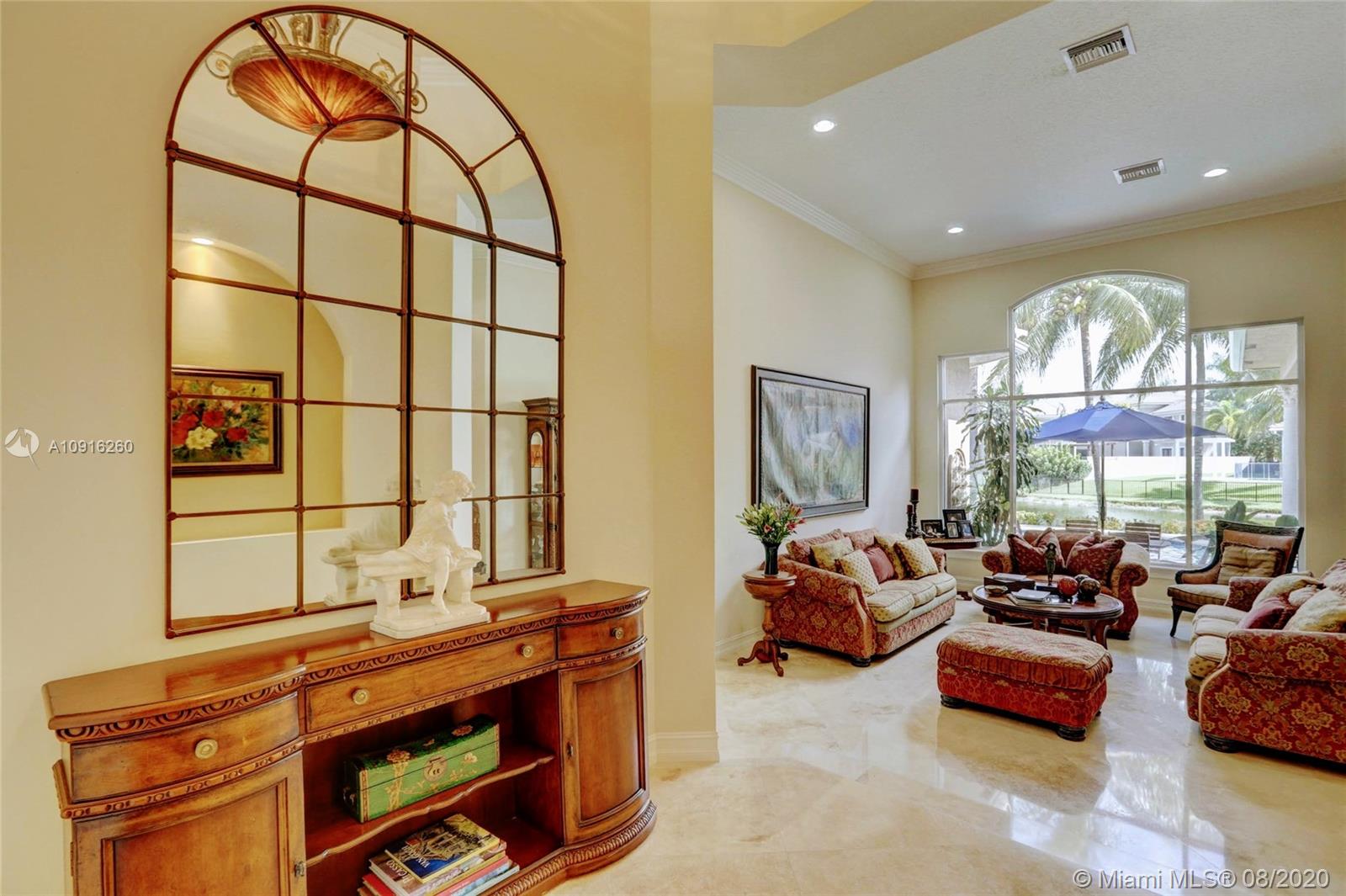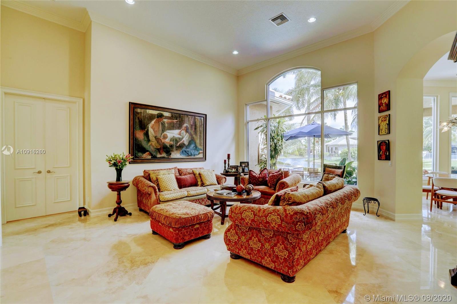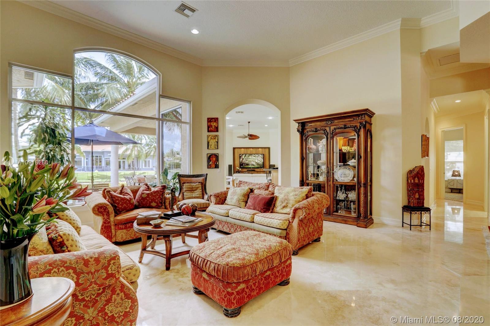 Immaculately maintained one-story home w/4 bed /3 bath+office, circular driveway, split floor plan, large Master's suite w/ sitting area, two walk-in closets, 15 ft ceiling, crown molding.*Amazing open lake view w/fountain, built-in barbecue perfect for entertaining, heated pool and spa and beautifully landscaped. 24” Travertine flooring in main areas & baths, hardwood floors in Master* Spacious open kitchen w/high-end wood cabinetry, built-in refrigerator, stainless steel appliances, granite counter tops, center island, central vacuum, custom built closets. *2 a/c units replaced in 2018, recently painted exterior/interior, recently refinished floors. Exclusive Clubhouse & Spa, a resort style pool, playground, fitness center, basket/volleyball, several tennis courts, 24/7 security.