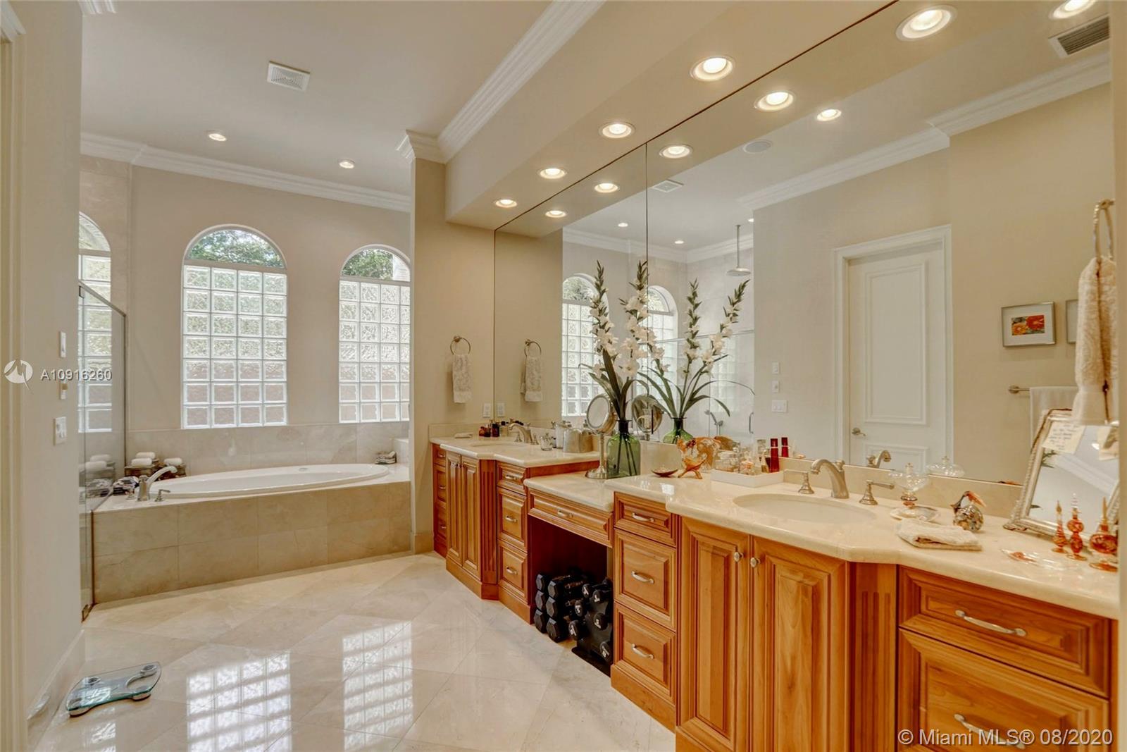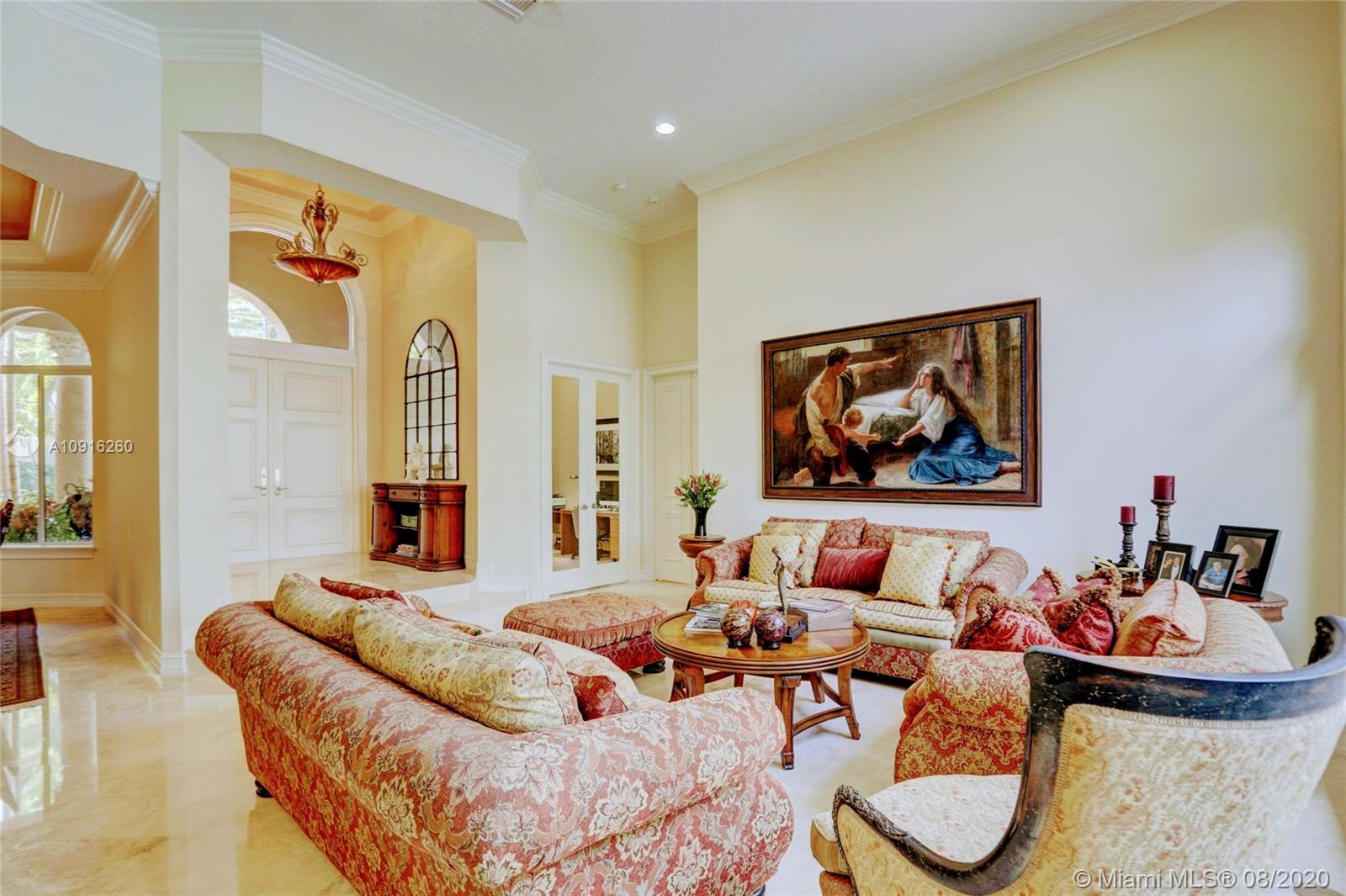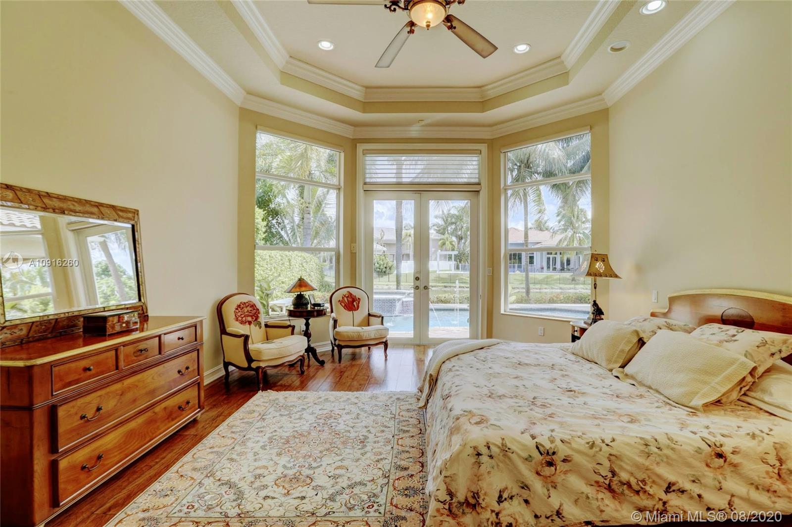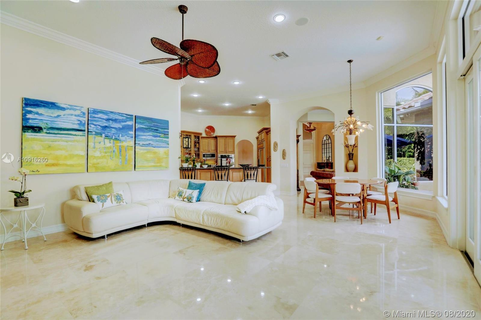 Immaculately maintained one-story home w/4 bed /3 bath+office, circular driveway, split floor plan, large Master's suite w/ sitting area, two walk-in closets, 15 ft ceiling, crown molding.*Amazing open lake view w/fountain, built-in barbecue perfect for entertaining, heated pool and spa and beautifully landscaped. 24” Travertine flooring in main areas & baths, hardwood floors in Master* Spacious open kitchen w/high-end wood cabinetry, built-in refrigerator, stainless steel appliances, granite counter tops, center island, central vacuum, custom built closets. *2 a/c units replaced in 2018, recently painted exterior/interior, recently refinished floors. Exclusive Clubhouse & Spa, a resort style pool, playground, fitness center, basket/volleyball, several tennis courts, 24/7 security.