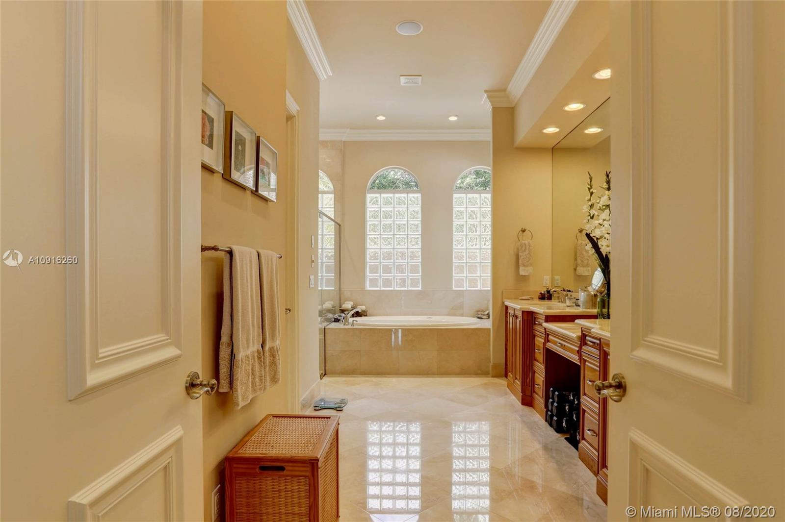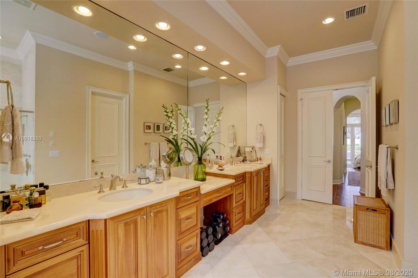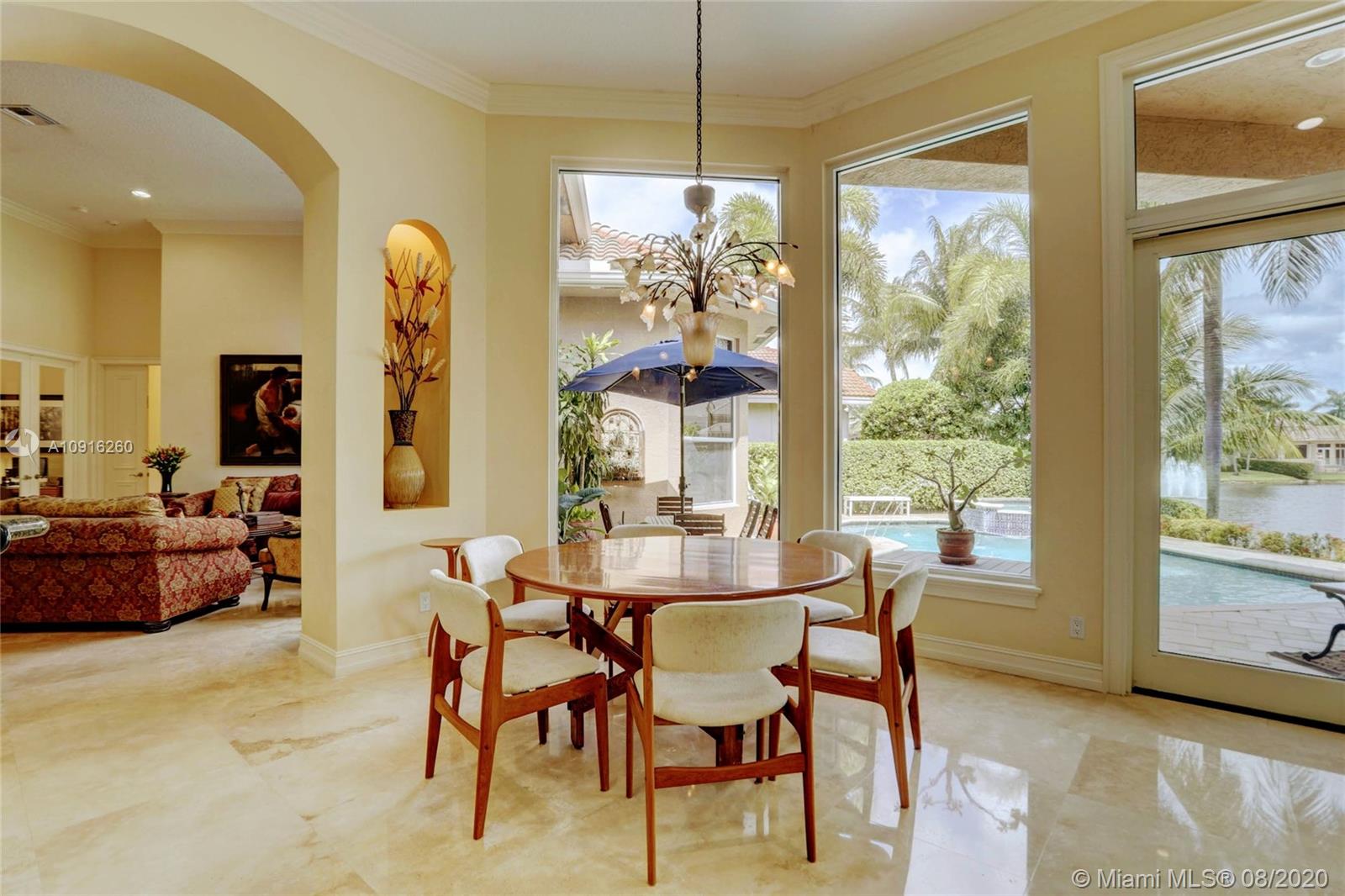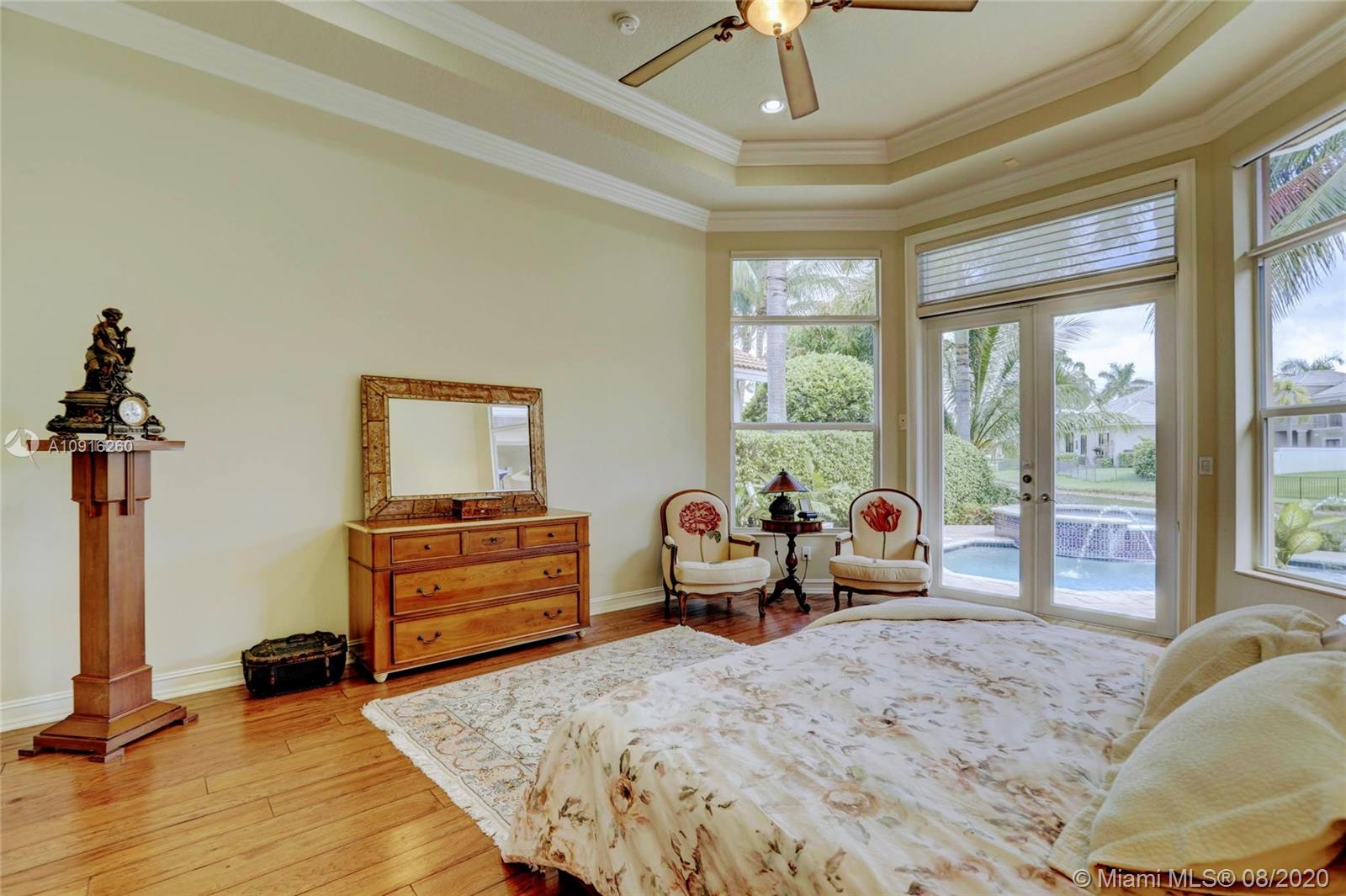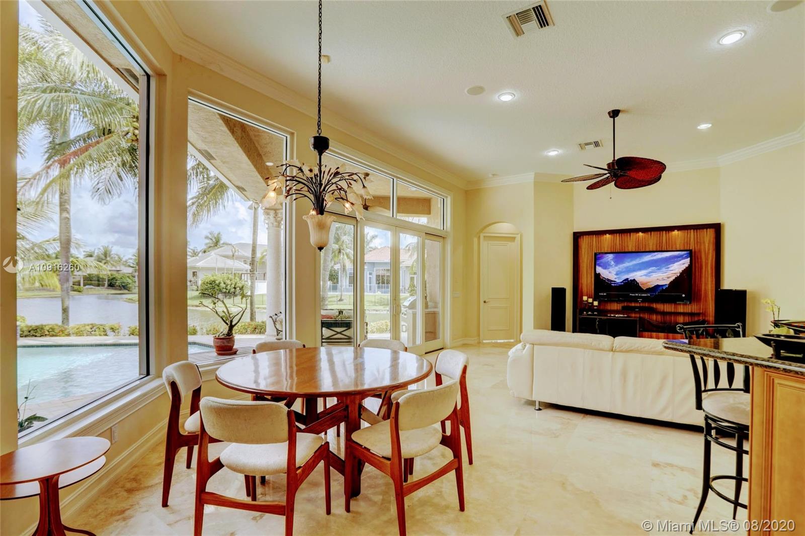 Immaculately maintained one-story home w/4 bed /3 bath+office, circular driveway, split floor plan, large Master's suite w/ sitting area, two walk-in closets, 15 ft ceiling, crown molding.*Amazing open lake view w/fountain, built-in barbecue perfect for entertaining, heated pool and spa and beautifully landscaped. 24” Travertine flooring in main areas & baths, hardwood floors in Master* Spacious open kitchen w/high-end wood cabinetry, built-in refrigerator, stainless steel appliances, granite counter tops, center island, central vacuum, custom built closets. *2 a/c units replaced in 2018, recently painted exterior/interior, recently refinished floors. Exclusive Clubhouse & Spa, a resort style pool, playground, fitness center, basket/volleyball, several tennis courts, 24/7 security.
