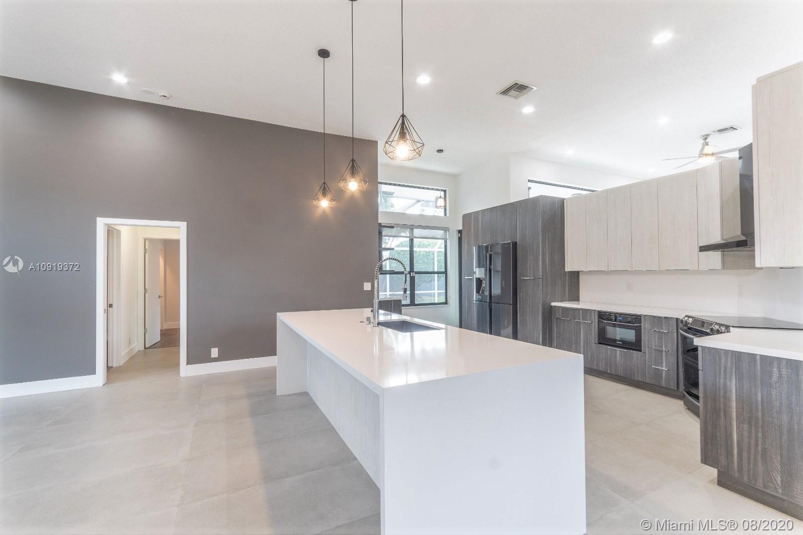 This home is nestled on a cul-de-sac in the private and sought after Carriage Pointe Estates Community with a 24 hour security guard house.Recent modern and stylish renovations throughout the entire home.Impact resistant windows and doors,new Garage door,large screened in patio,outdoor pool with a baby guard fence.This newly remodeled kitchen comes complete with Black Stainless Steel appliances,oversize 9.5' island featuring pure white quartz countertops with a waterfall edge,two-tone cabinet finish, and a dry bar.Upgraded Bathrooms with premium tile and frameless glass showers.48x24 rectified porcelain tiles with 0 grout lines throughout common areas and vinyl plank flooring in all 4 bedrooms.Large,spacious master bedroom includes custom walk-closet.New AC,New water heater.