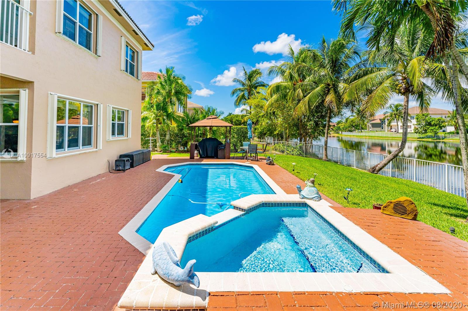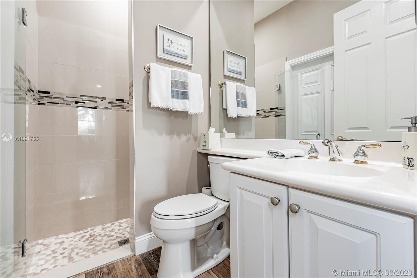 Impeccable turnkey home in the sought after community of Sunset Lakes. This 4 bedroom, 4 bath was beautifully remodeled with Egyptian wood floors throughout. Expansive kitchen with new appliances leads into a large family room with water views from all the windows. Bathrooms have all been tastefully remodeled. Property sits on the wide part of the lake and the views are spectacular. Watch the sunset from the backyard heated pool with attached Jacuzzi or enjoy it from the privacy of the balcony of the principal bedroom. Oversize, 3 car garage has been upgraded with epoxy flooring. Nothing has been spared, this is a must see!