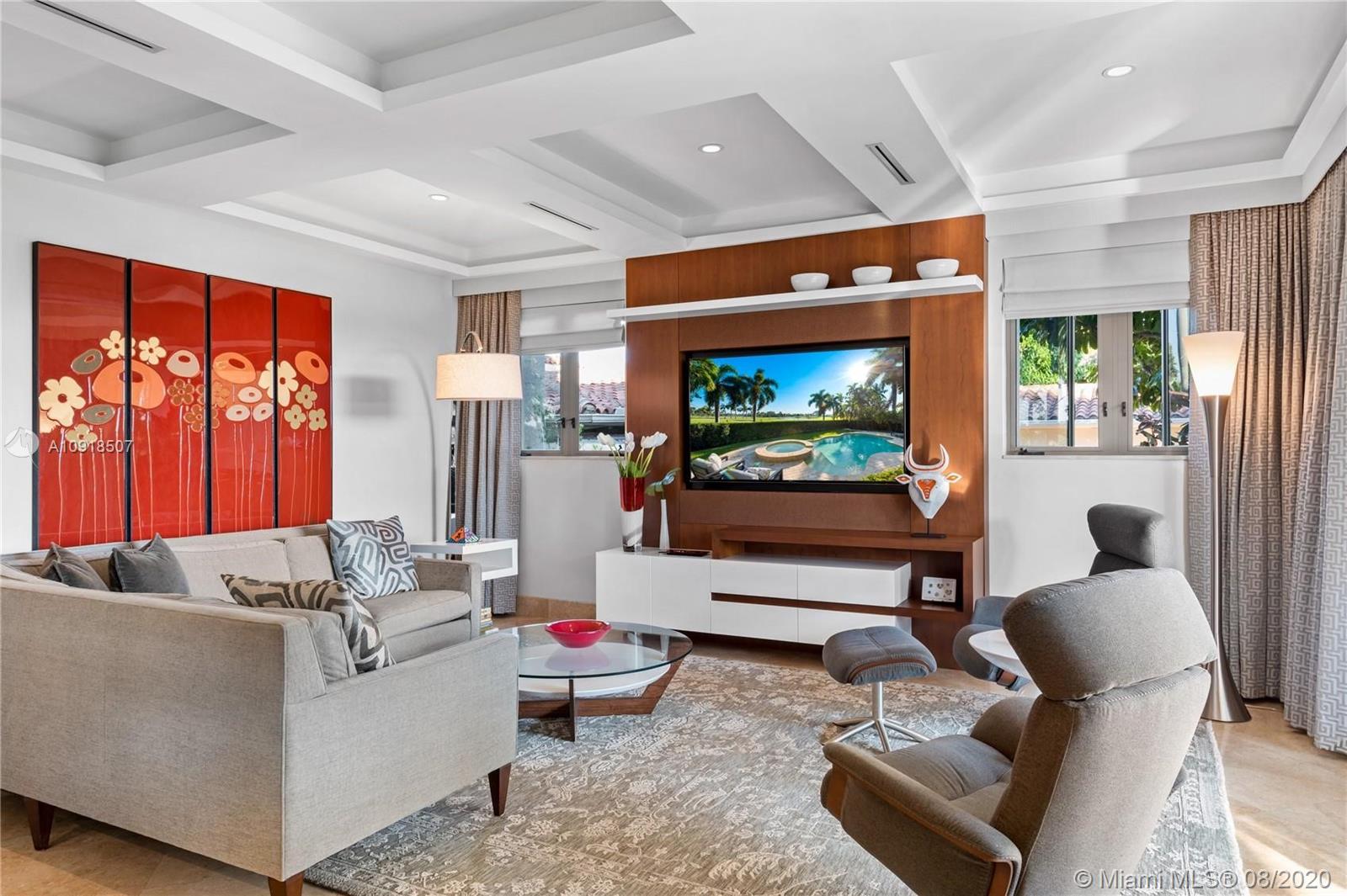 Sought-after exceptional panoramic South facing golf course, water & sunset views are the centerpiece of this sprawling 5 bedroom, 5,461 total Sq. Ft. one-of-a-kind residence. Meticulously built, this newer construction home undeniably stands out from the rest! All living areas feature high-end finishes & open up to the tropical saltwater pool w/ jacuzzi on Miami Beach's most esteemed private golf course, La Gorce Country Club. 4bds+den up & 1bd down, make it an ideal family layout. The eat-in gourmet gas kitchen which offers a custom Scavolini kitchen, dual sinks & complete high-end S.S. appliance suite seamlessly flows into the family room & outdoor spaces. Feel secure with full impact windows / doors, 35KW generator, electric gates, smart home system, 2 car garage & security system..